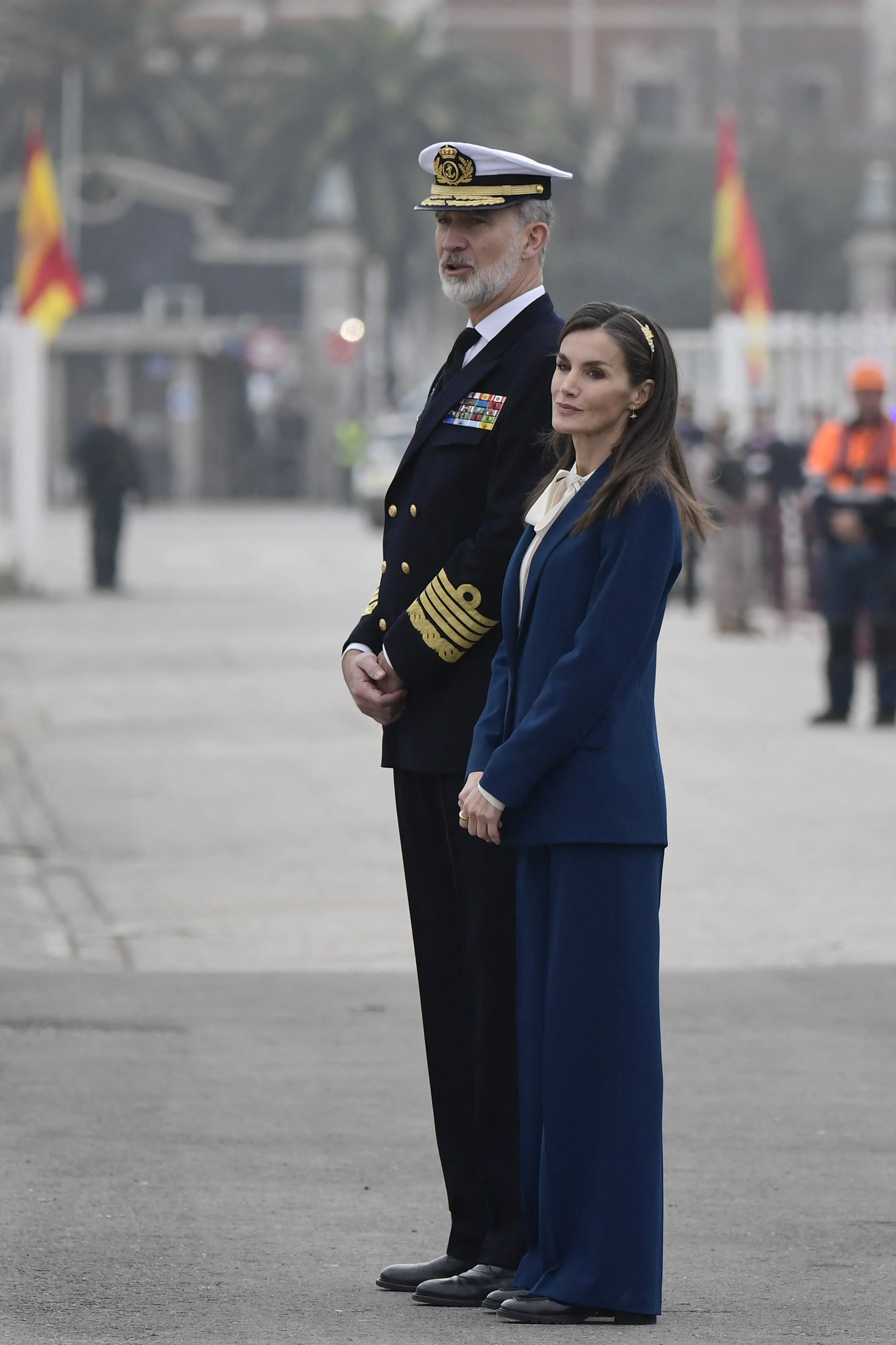 Een nieuwe trend is het dus niet, maar het is er wel een die door allerlei koninginnen en prinsessen wordt omarmd. Waaronder koningin Letizia van Spanje. Zij heeft power suits is alle kleuren van de regenboog. Van vlammend rood tot aan donkerblauw. Tijdens het emotionele afscheid van Leonor, die geruime tijd met een marineschip op pad is, droeg koningin Letizia "heel toepasselijk", zo stelt Bodo, een marineblauw pak. "Een exemplaar van Hugo Boss, dat hebben we vaker gezien bij haar. Maar ze combineerde hem hier heel fris met een blouse met striksluiting."