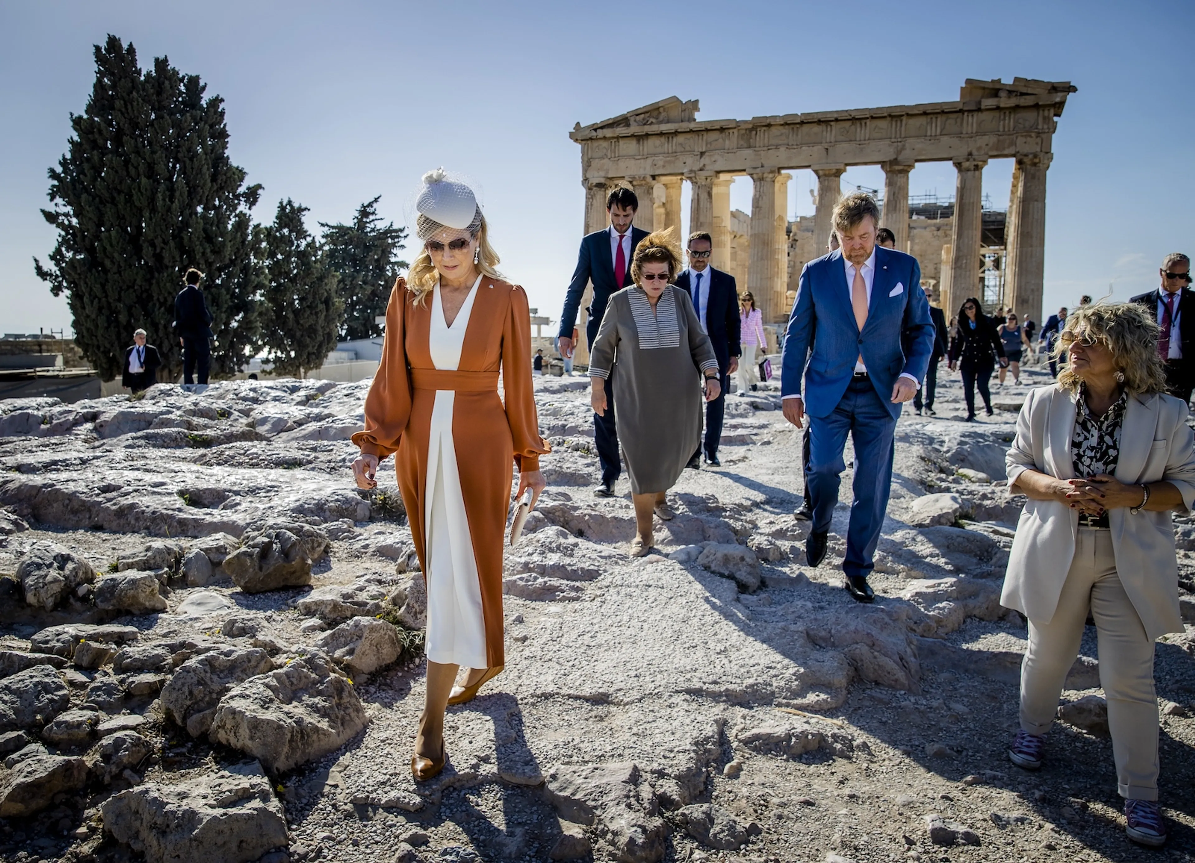 Koning Willem-Alexander en koningin Máxima hebben maandag in Athene een bezoek gebracht aan de Akropolis. Het paar maakte samen met archeologe Elena Kontouri een wandeling langs de wereldberoemde ruïnes.