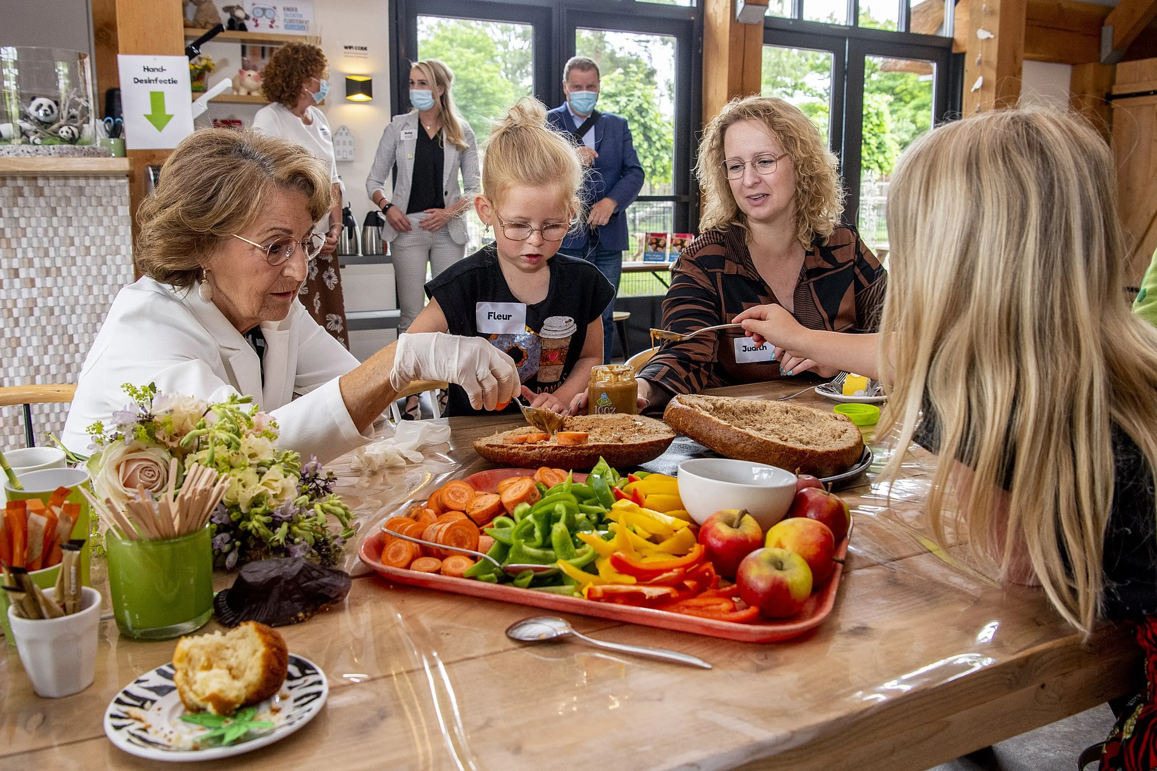 Prinses Margriet was donderdagochtend de 'mystery guest' op het verjaardagsfeestje van het zogenoemde Onky Donky-huis in Ouwehands Dierenpark in Rhenen. "Dit is heel bijzonder", zei de prinses over Onky Donky, waar gezinnen met jonge kinderen met een beperking terecht kunnen voor een ontspannen uitstapje. Ze ging dan ook gelijk creatief aan de slag: samen met de kinderen maakte ze pindakaas-, groente- en appelsnacks voor de dieren.