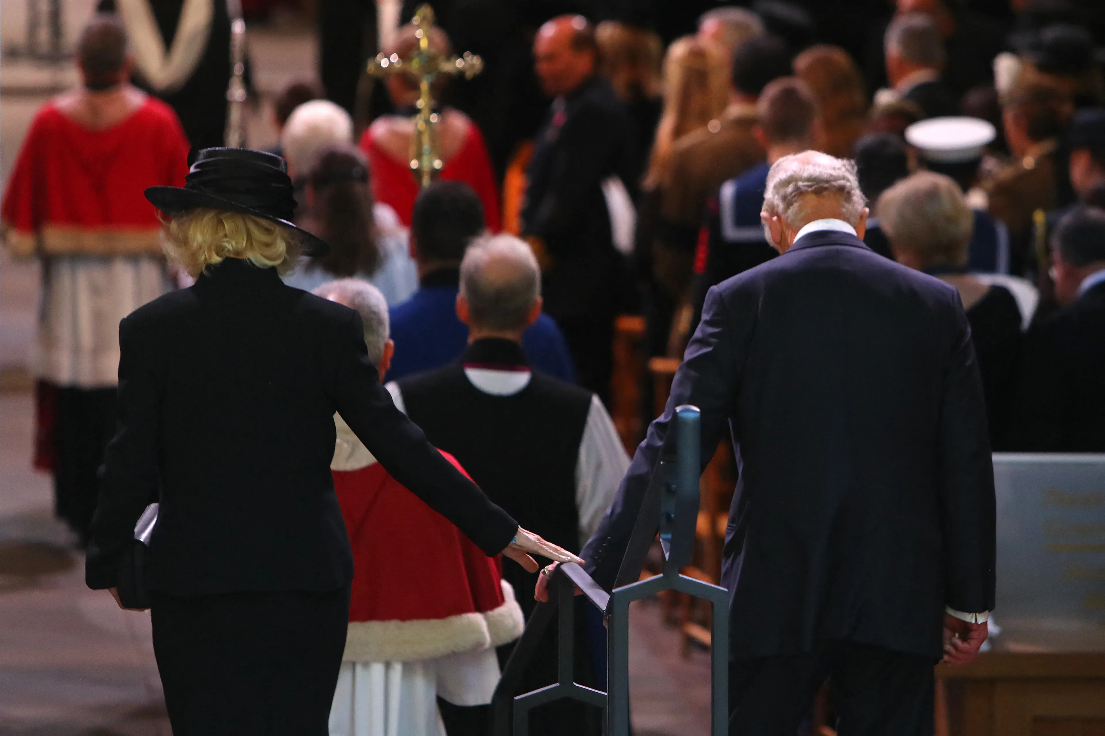 De kist met het lichaam van koningin Elizabeth is aangekomen in Westminster Hall, de plek waar het publiek afscheid kan nemen van de overleden vorstin. Na de aankomst houdt de aartsbisschop van Canterbury, Justin Welby, een korte dienst.