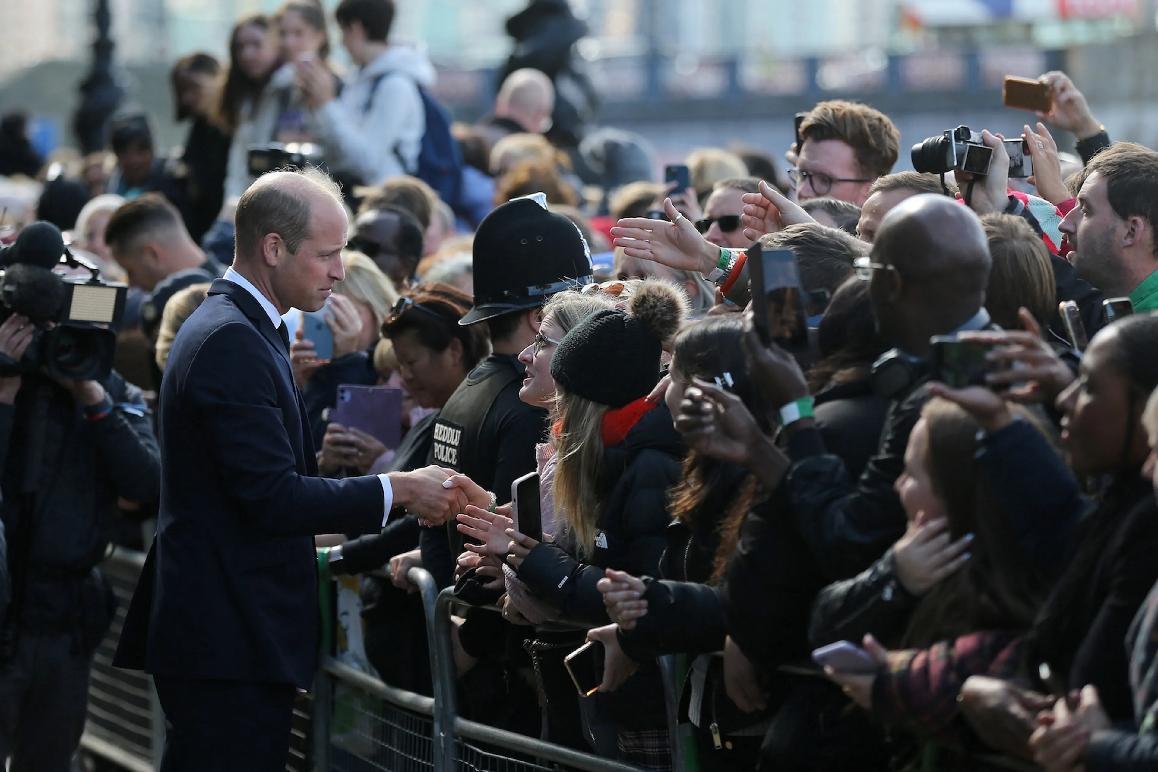 De kleinzoon van Elizabeth vindt het "ongelooflijk" dat er zoveel mensen voor de overleden vorstin in de rij staan. "Het is fantastisch." De koning en de prins schudden ook handen met het publiek. William grapte nog dat iemand "een warme" hand had, er werd gelachen. "Bedankt dat jullie hier de tijd voor nemen", zei een man uit de rij. "We houden van je William", riep iemand anders.