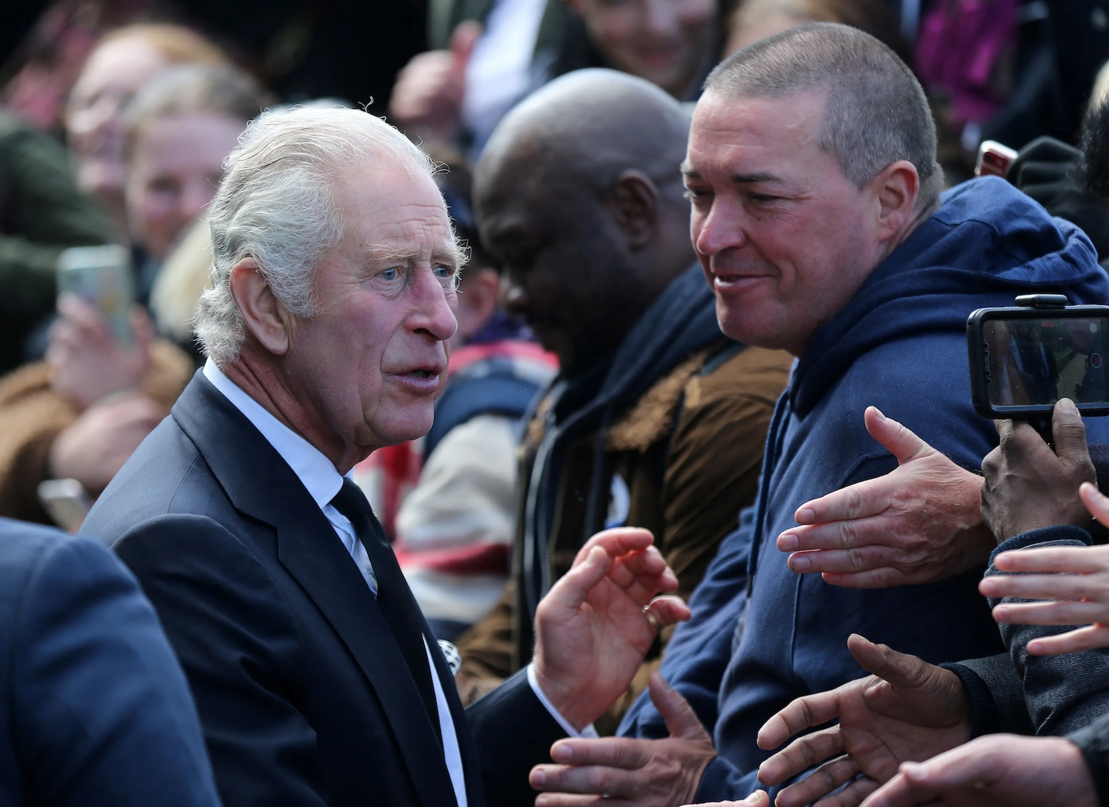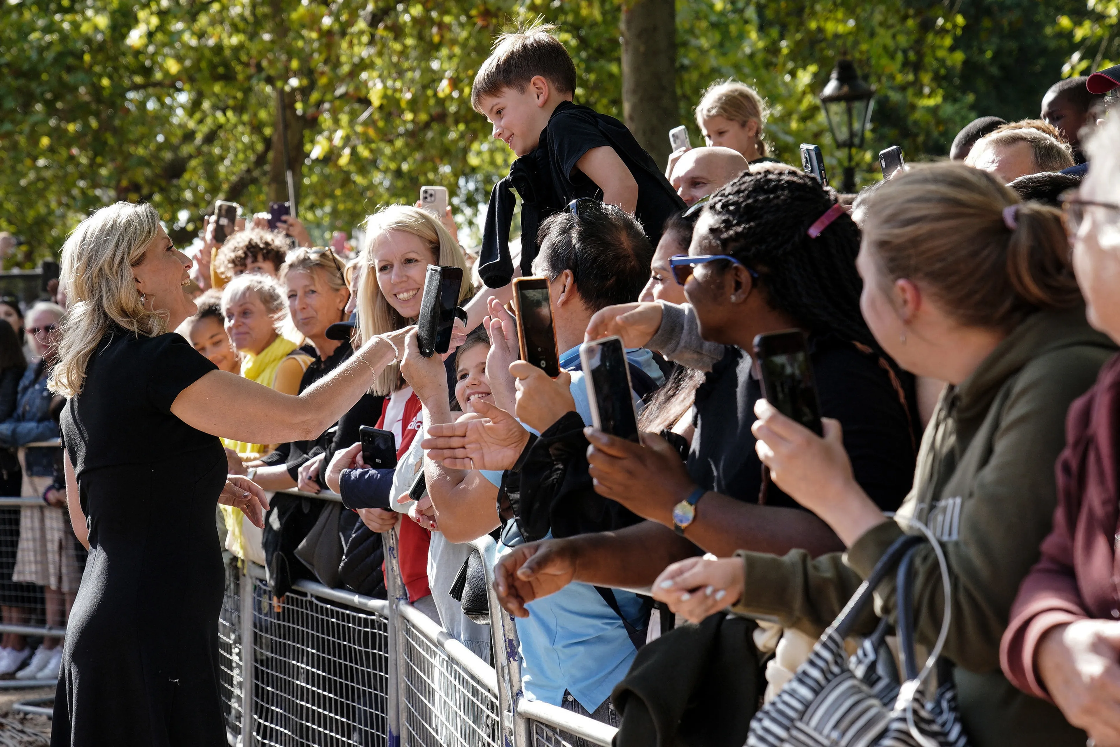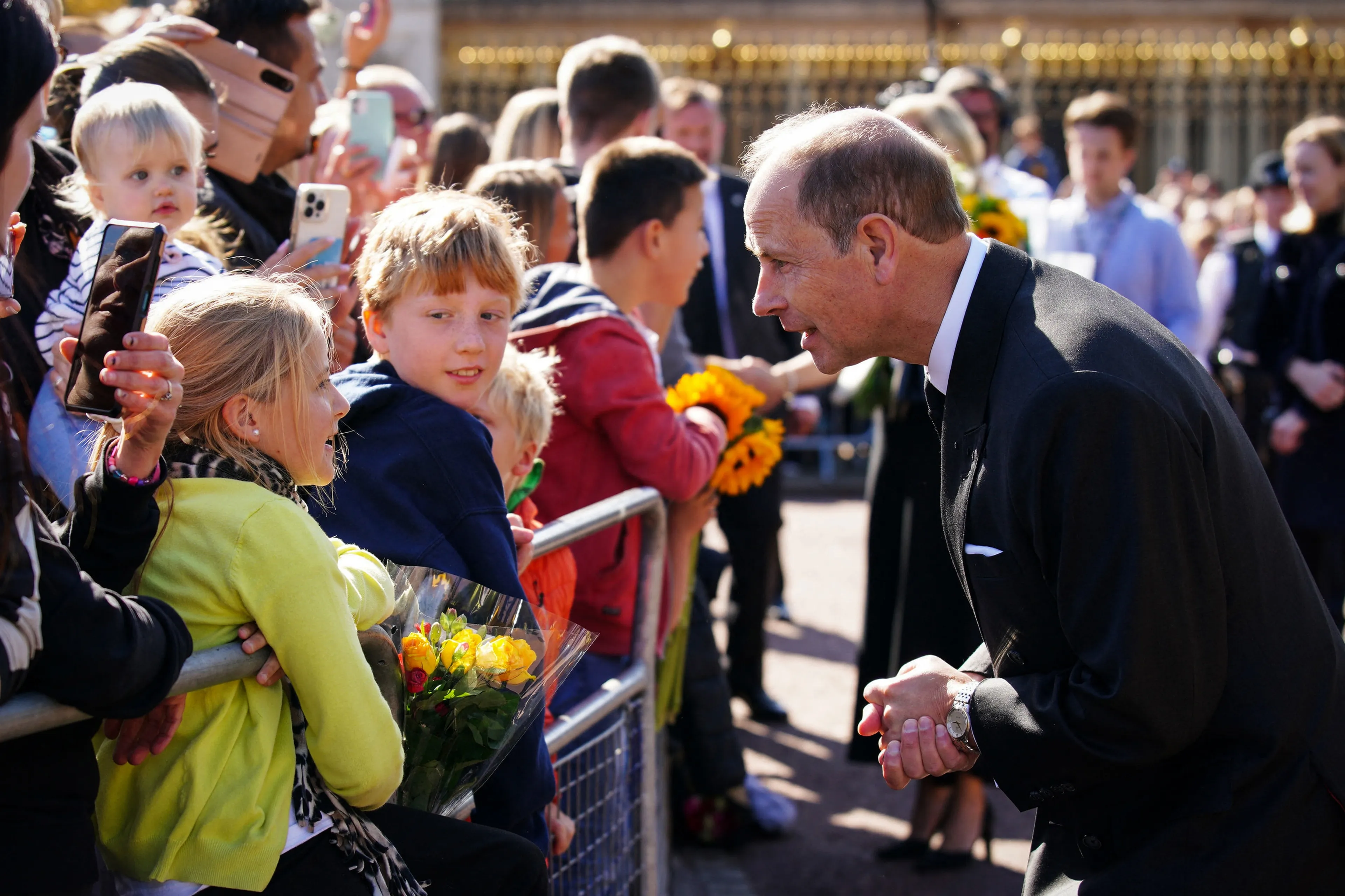 Mensen zwaaiden vanuit de rij zodra ze de graaf en gravin in het oog kregen. Sophie wist eerst niet hoe ze bij de menigte moesten komen door het hekwerk, maar ze probeerde zo dichtbij mogelijk te komen. Ook Edward, de jongste zoon van de op 96-jarige leeftijd overleden vorstin Elizabeth, sprak met een paar mensen.
