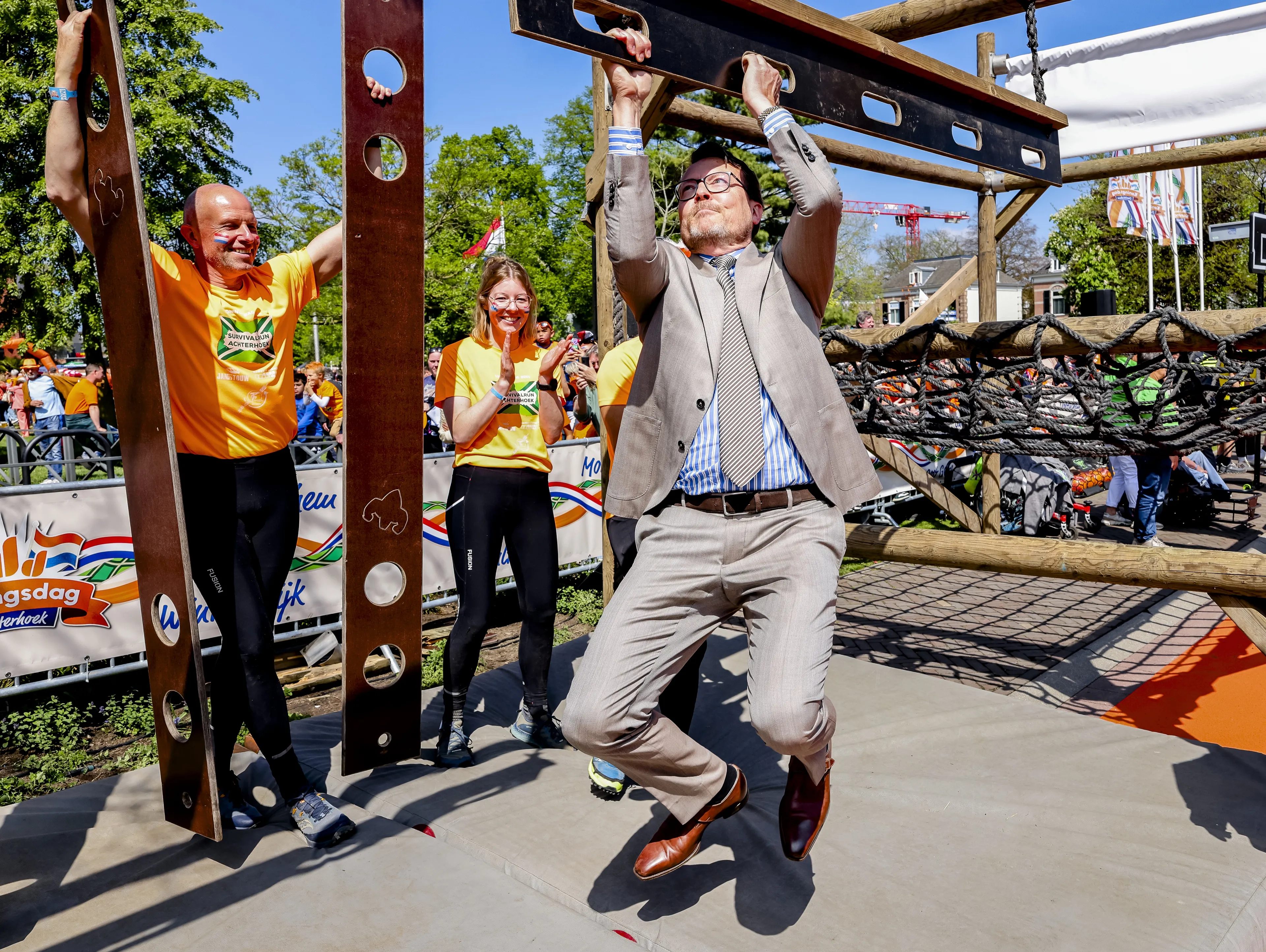 Koningsdag is natuurlijk niet compleet als er niet gesport wordt. Ook Doetinchem laat zich van haar sportiefste kant zien. Koning Willem-Alexander helpt de peuters met het rollen van een grote bal, die naar andere deelnemers van allerlei leeftijden door de Sportlaan wordt doorgegeven. Ook de Oranjes laten zien hoe sportief ze zijn. Prinses Marilène doet een poging tot rolstoelvoetbal. Prins Maurits laat zijn spierkracht zien en hangt in de touwen van een soort fitnessrek. De sportieve prins Pieter-Christiaan stapt op een fiets. Ook het koningspaar kan niet achterblijven en speelt een potje tafeltennis tegen elkaar.
