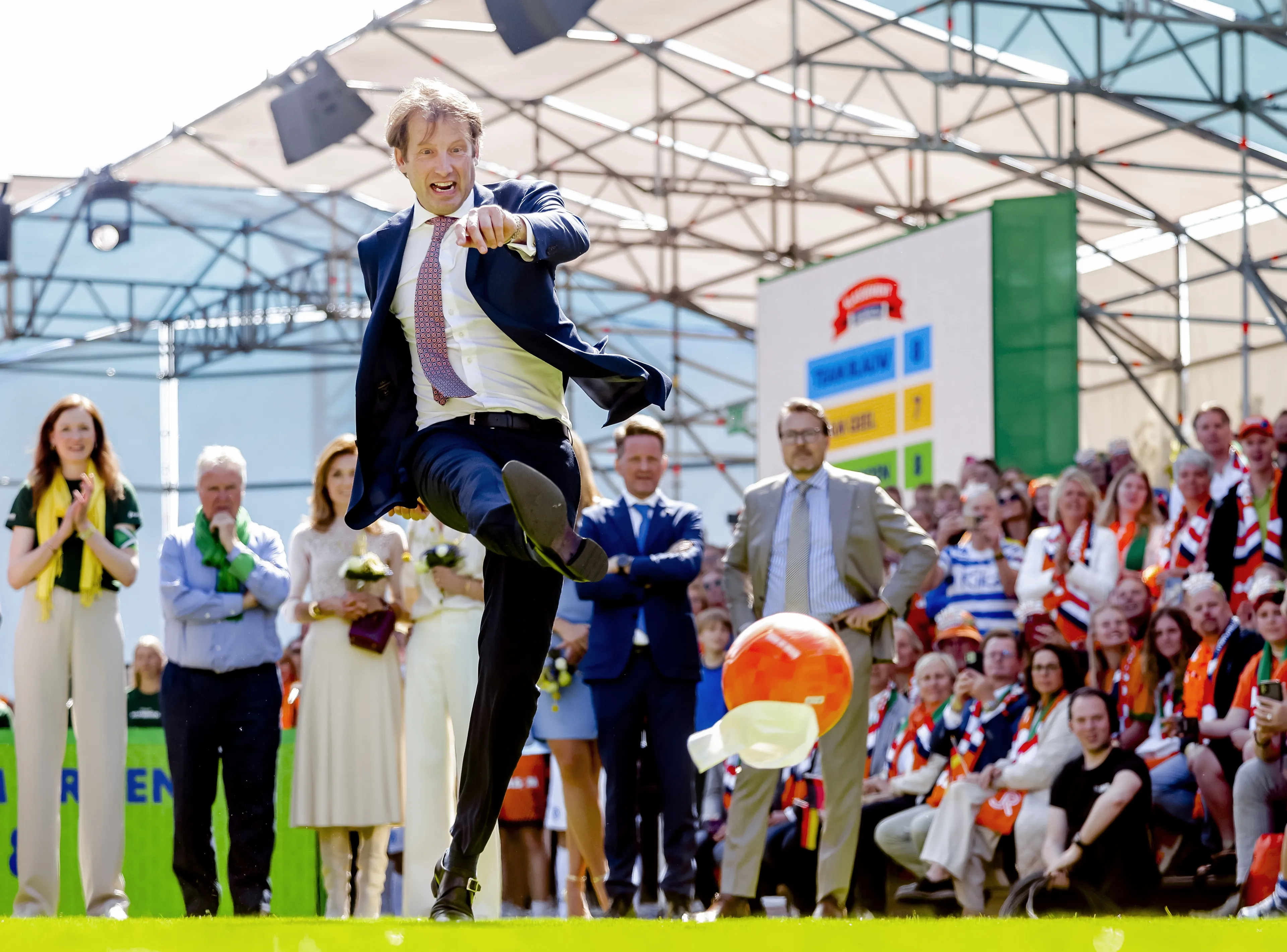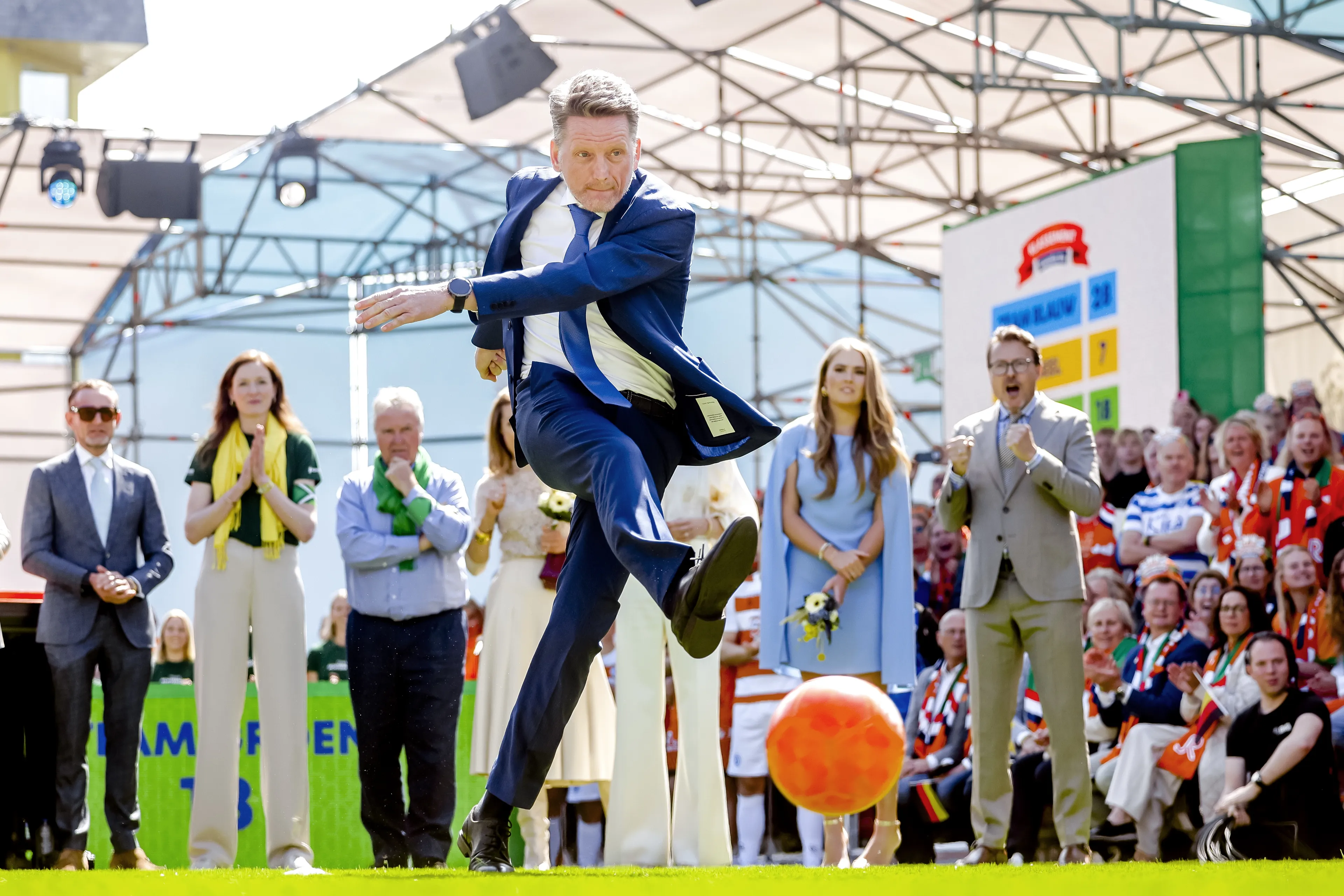 Koning Willem-Alexander geeft aan dat hij "een goede Nederlandse penalty" kan maken. Maar dat "gaat helaas niet altijd goed", zo vertelt hij tijdens de ontknoping van de 'kwis'. Helaas mist hij deze nét. Prins Floris weet wél te scoren. Prins Constantijn waagt ook een poging én hij zit!Prins Maurits grapt dat hij "altijd als laatste met gym werd gevraagd". Toch scoort hij een doelpunt. Team Blauw gaat er met de winst vandoor.