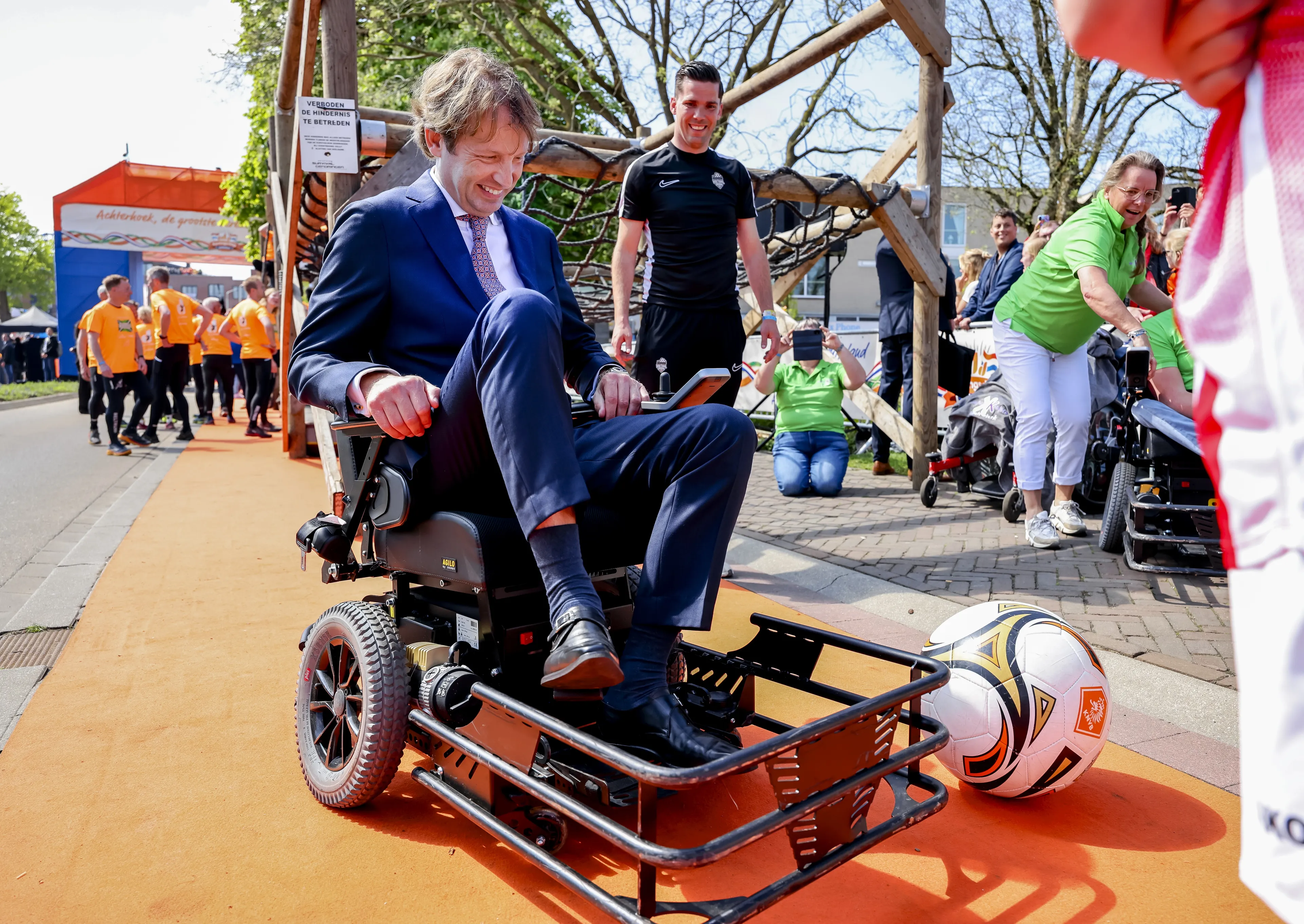 Het stadion van voetbalclub De Graafschap is te ver weg van de route, maar dat mag de pret niet drukken. Het voetbalstadion De Vijverberg is namelijk in het klein nagebouwd op het Raadhuisplein. Met het opkomstlied van De Graafschap wordt de koninklijke familie ontvangen.