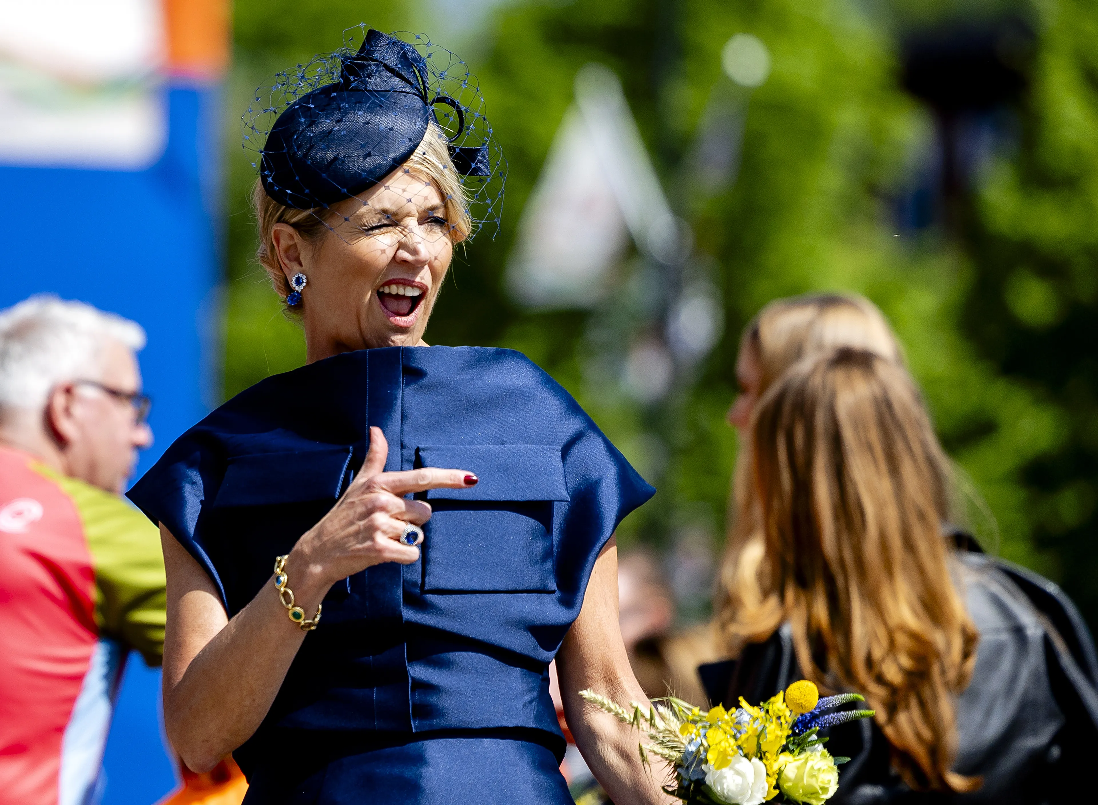 Prins Floris en zijn vrouw prinses Aimée zijn onderweg naar Doetinchem. Ze delen een foto waar we al een glimp krijgen van de outfit van de prinses. Te zien is dat zij een crèmekleurig ensemble draagt met een opengewerkt detail.