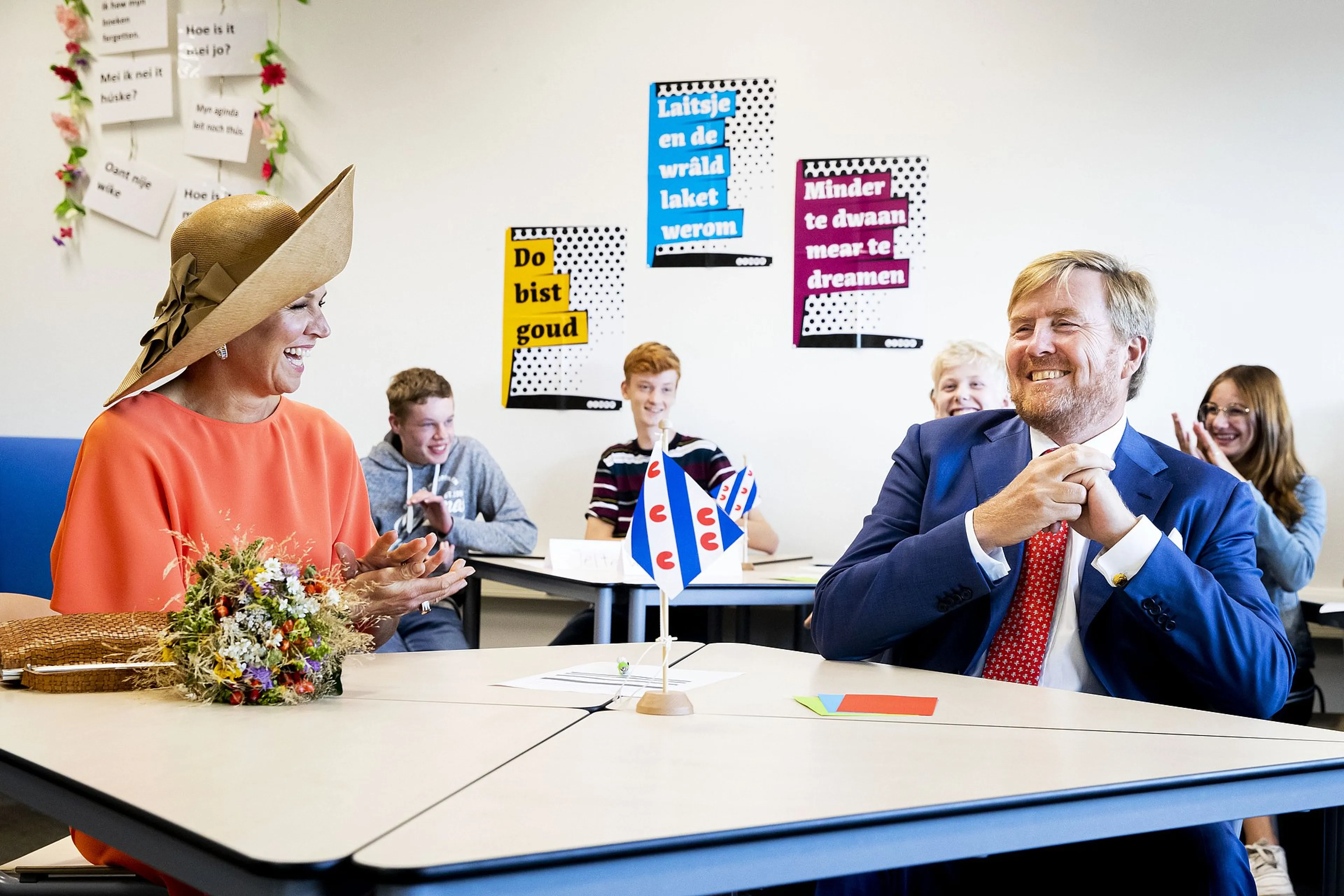 Het "Frysk" mag zich op de scholengemeenschap als keuzevak verheugen in een stijgende belangstelling. Het koningspaar nam kort deel aan de les, waarin de taalfamilie van het Fries als uitgangspunt diende. De verwantschap met het Engels maakte het makkelijker om de juiste antwoorden te geven op vragen over de betekenis van een woord als 'dei' - in het Engels 'day' en het Nederlands 'dag'.