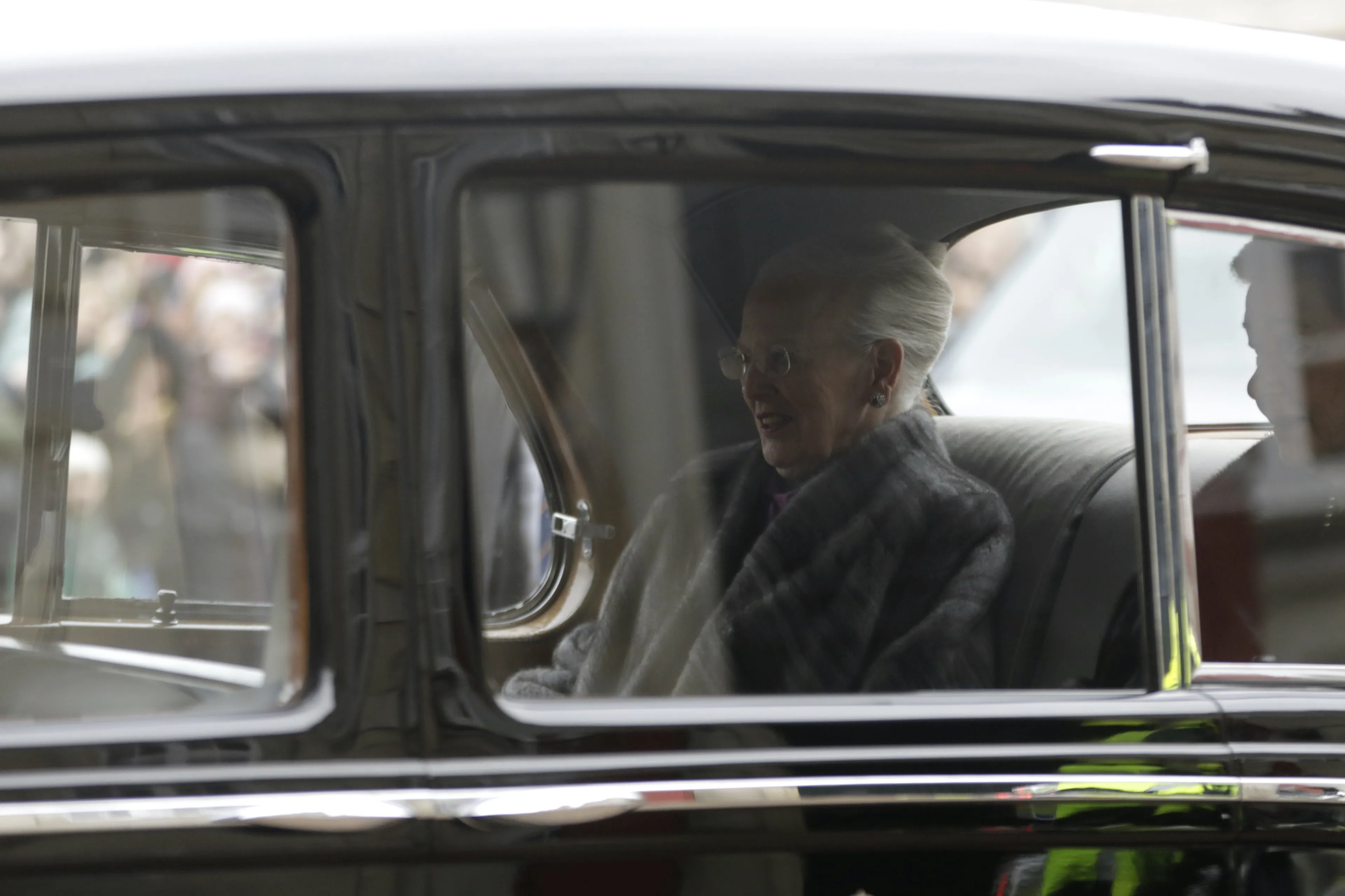 13:40 Koningin Margrethe is onderweg van paleis Amalienborg naar paleis Christiansborg