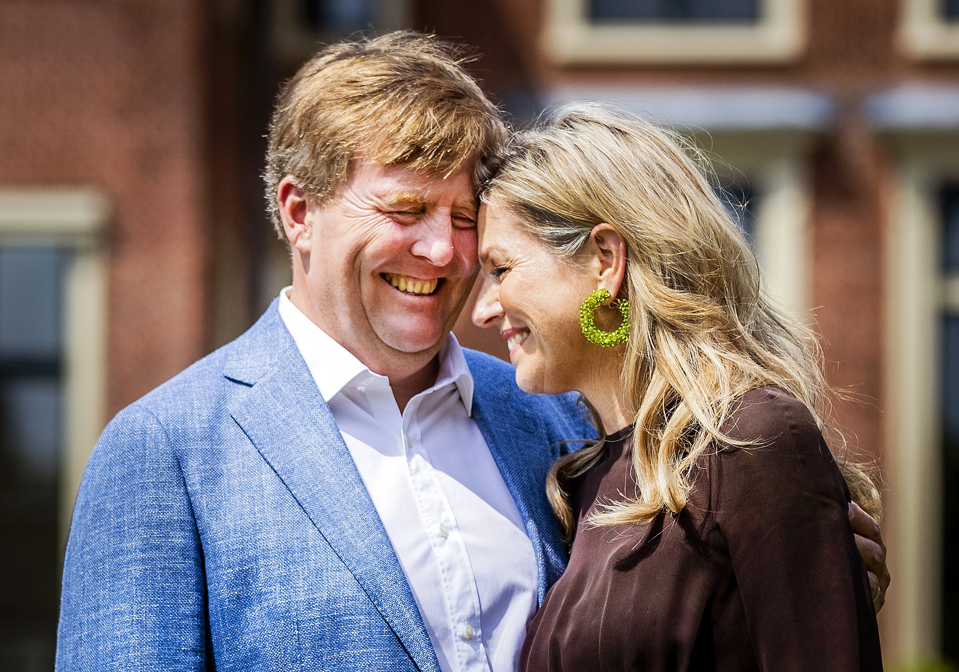 Koning Willem-Alexander en koningin Maxima in 2019 tijdens de jaarlijkse koninklijke fotosessie in de tuin van Paleis Huis ten Bosch.