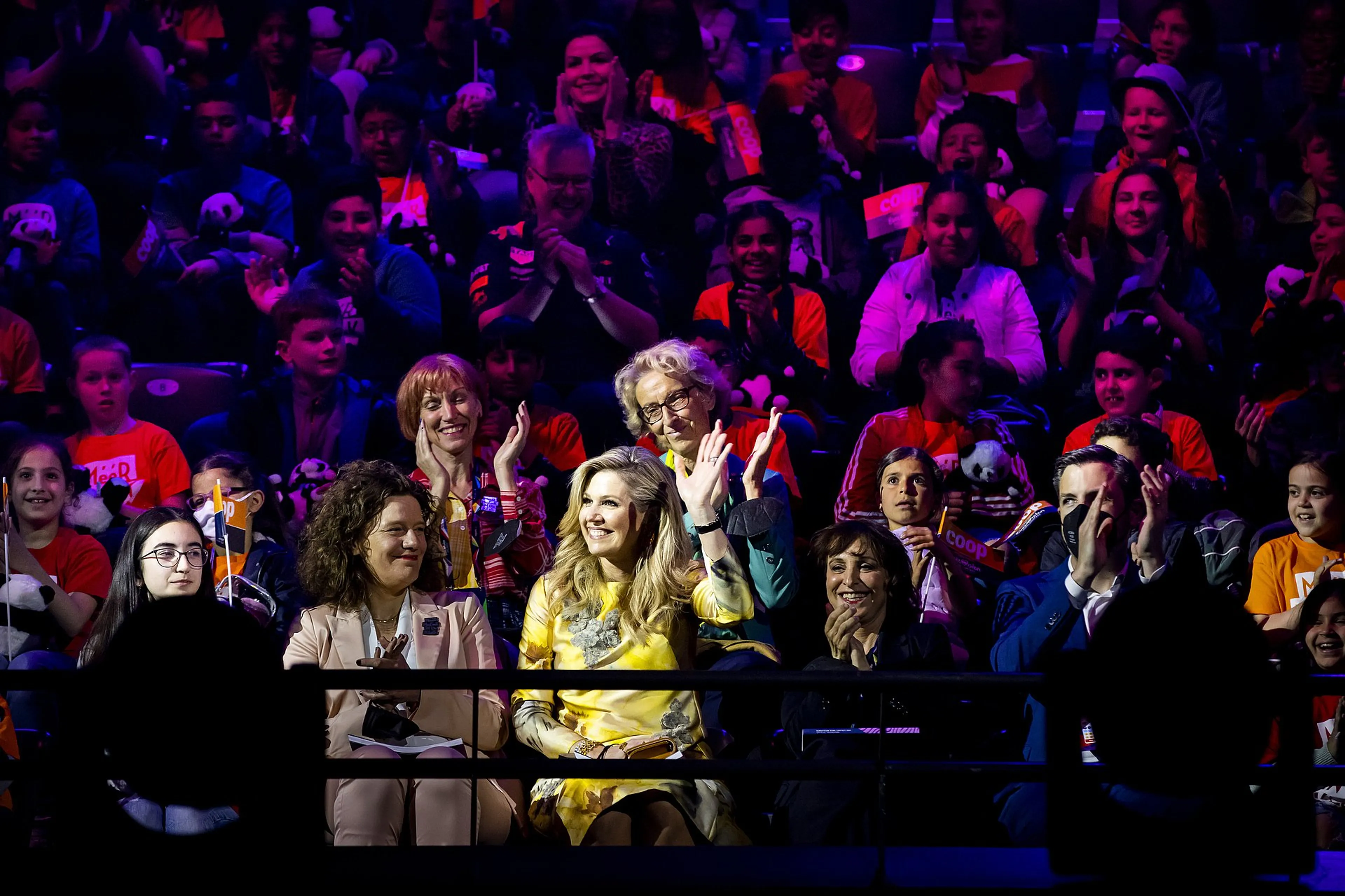 Maar het hoogtepunt van het bezoek aan Ahoy was wellicht het bijwonen van de laatste repetities. De komst van Máxima bleef niet lang onopgemerkt bij het aanwezige publiek en al snel gingen de telefoontjes omhoog om een blik op te vangen van de koningin. Toen Buddy Vedder op het podium verscheen om meer over Méér Muziek in de Klas te vertellen, heette hij Máxima officieel welkom en werd de koningin getrakteerd op een oorverdovend applaus. Ze zat op de tribune naast uitvoerend producent Sietse Bakker.