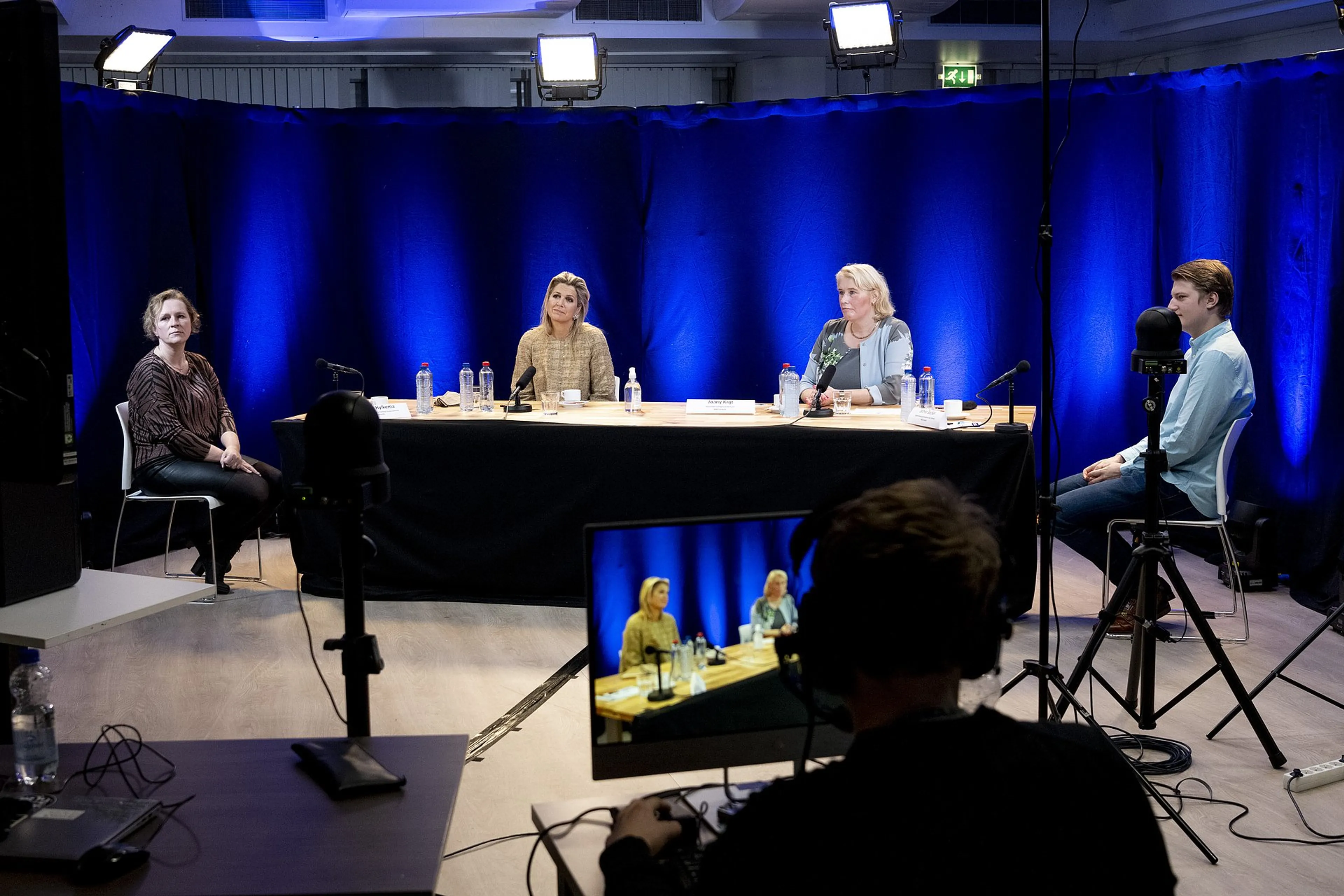 Aansluitend bracht de koningin een bezoek aan een 'stagesimulator' voor studenten van de opleiding Podium- en studiotechniek. In deze mobiele studio kunnen studenten toch ervaring opdoen, ook al kunnen ze niet echt ergens aan het werk. In de studio werd via een videoverbinding een rondetafelgesprek gehouden met onder meer een leerbedrijf en ook docenten en studenten van andere mbo-scholen. Hierin kwamen de uitdagingen en ervaringen van het mbo tijdens de coronaperiode en het tekort aan stageplaatsen in bepaalde sectoren ter sprake.