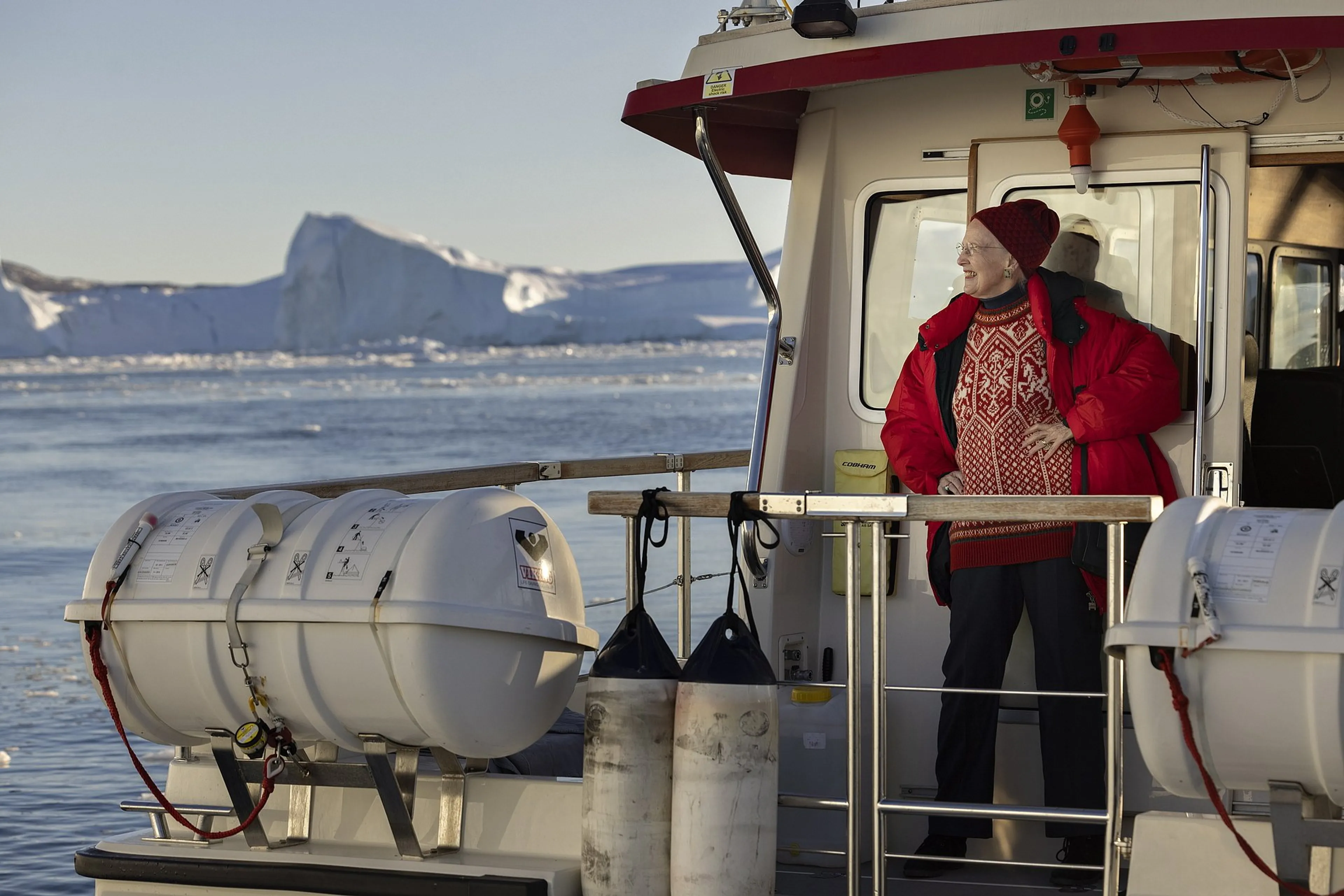 Het gezelschap trok daarna de zee op voor een rondtocht door het IJsfjord van Ilulissat, dat sinds 2004 Werelderfgoed is. Margrethe, die voor de gelegenheid een dikke trui aan had en een muts had opgedaan, zag naast de indrukwekkende ijsbergen ook twee walvissen die synchroon in het water zwommen.