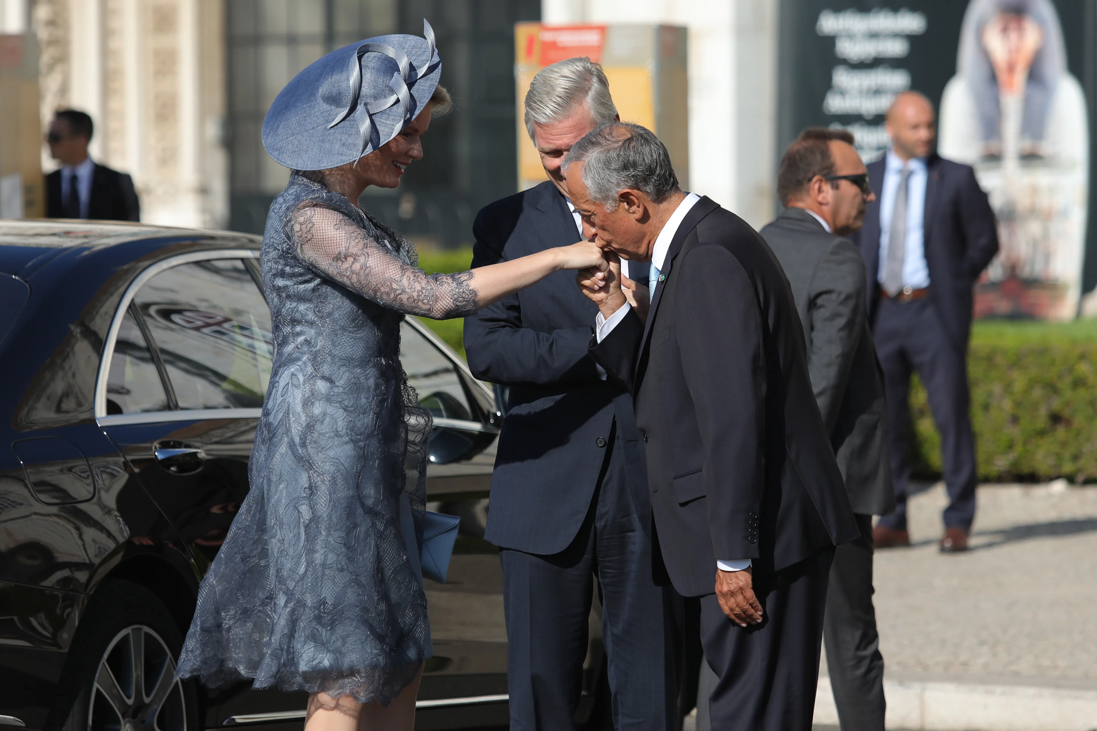 Filip en Mathilde werden aan het begin van de middag officieel welkom geheten tijdens een ceremonie bij het Praça do Império. De Portugese president Marcelo Rebelo de Sousa verwelkomde het koningspaar. Na een ontvangst in de residentie Palaçio de Belem ging het gezelschap naar het Mosteiro dos Jerónimos, waar koning Filip Portugals grootste dichter Luís de Camões (1524-1580) eerde bij diens graftombe.