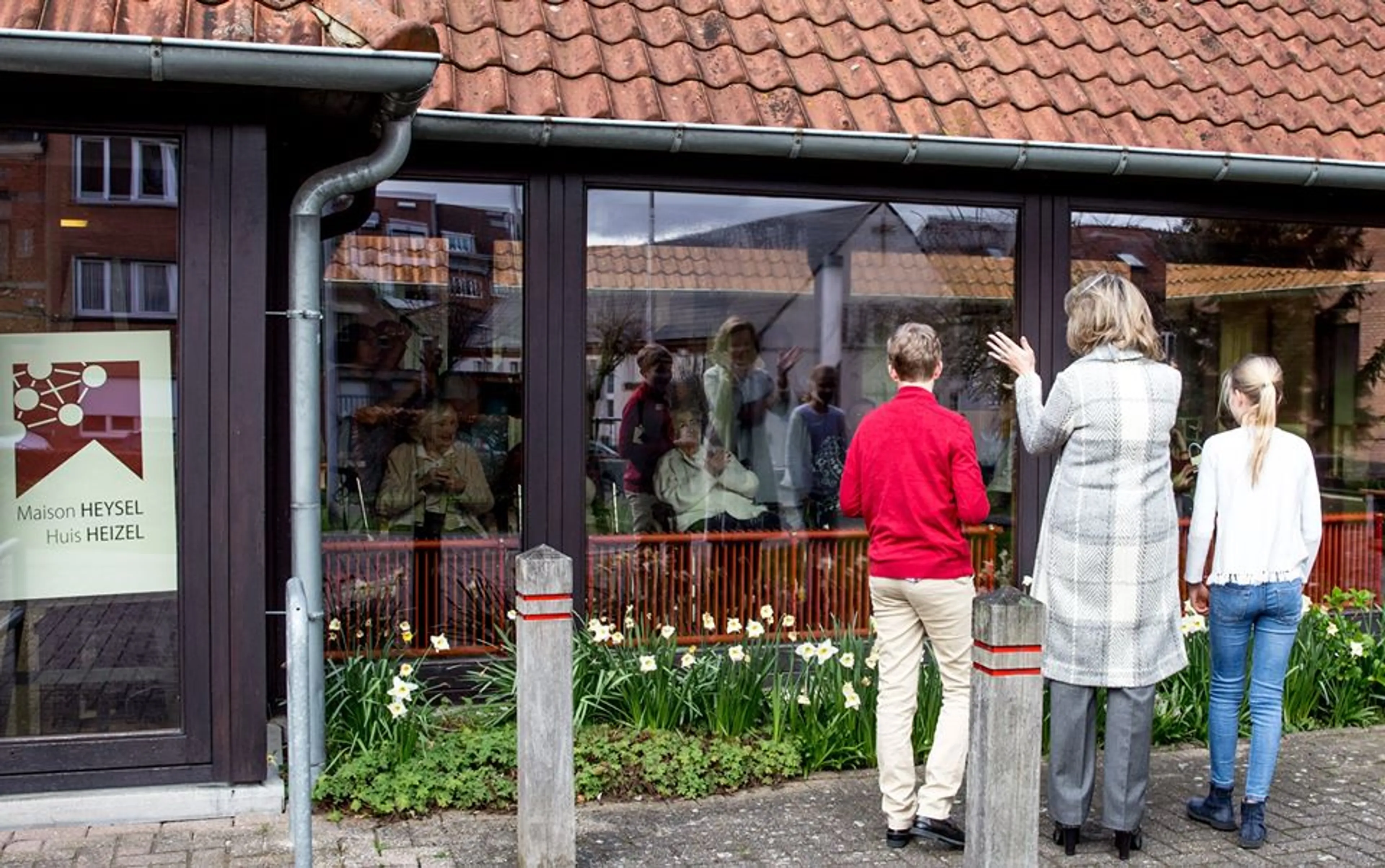 Mathilde had haar jongste kinderen, Emmanuel (14) en Eléonore (11), meegenomen en samen bezorgden ze bloemen en zelfgemaakte cupcakes. Het drietal ging echter niet naar binnen. Wel liepen ze zwaaiend langs de ramen en wierpen ze enkele handkusjes naar de bewoners.
