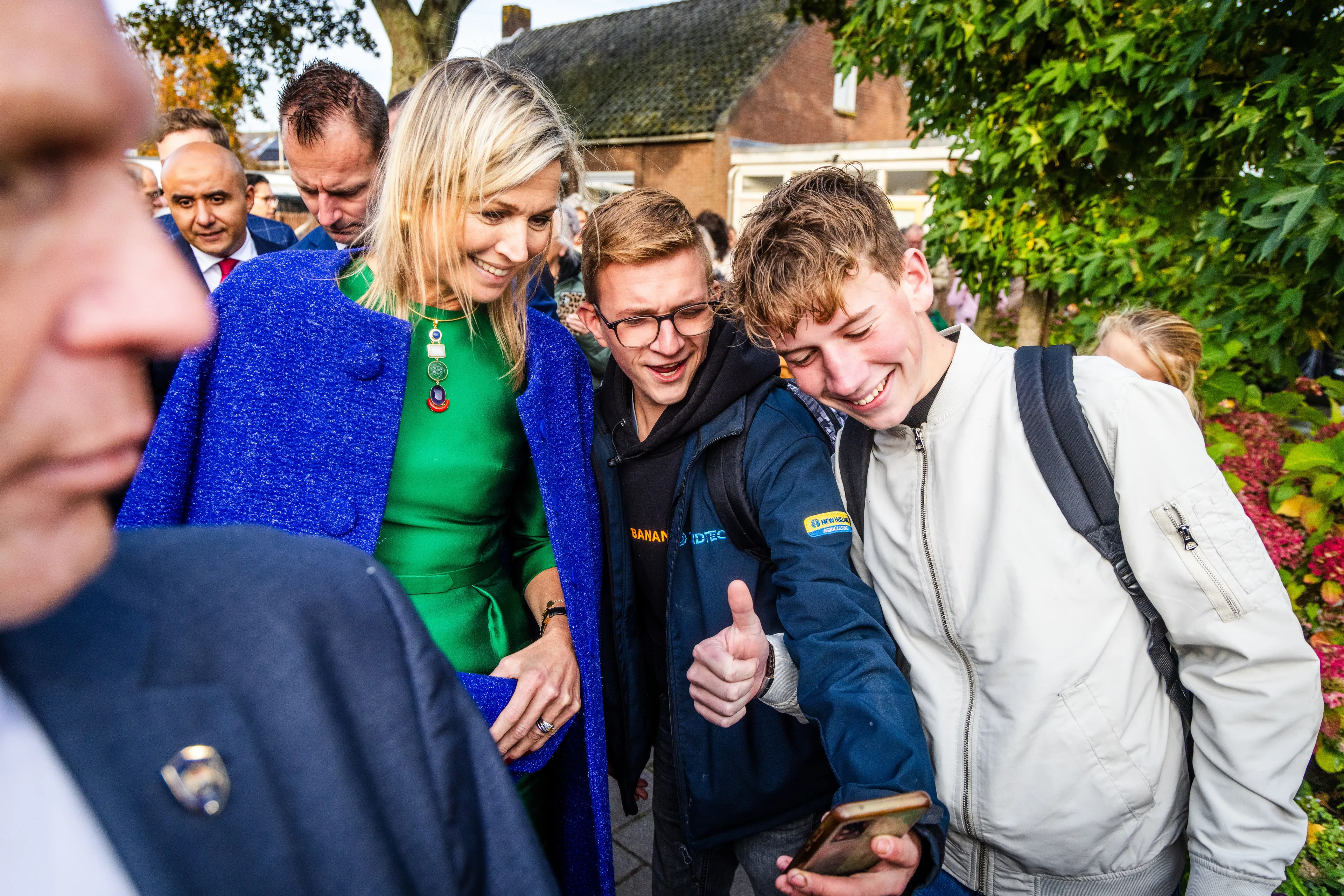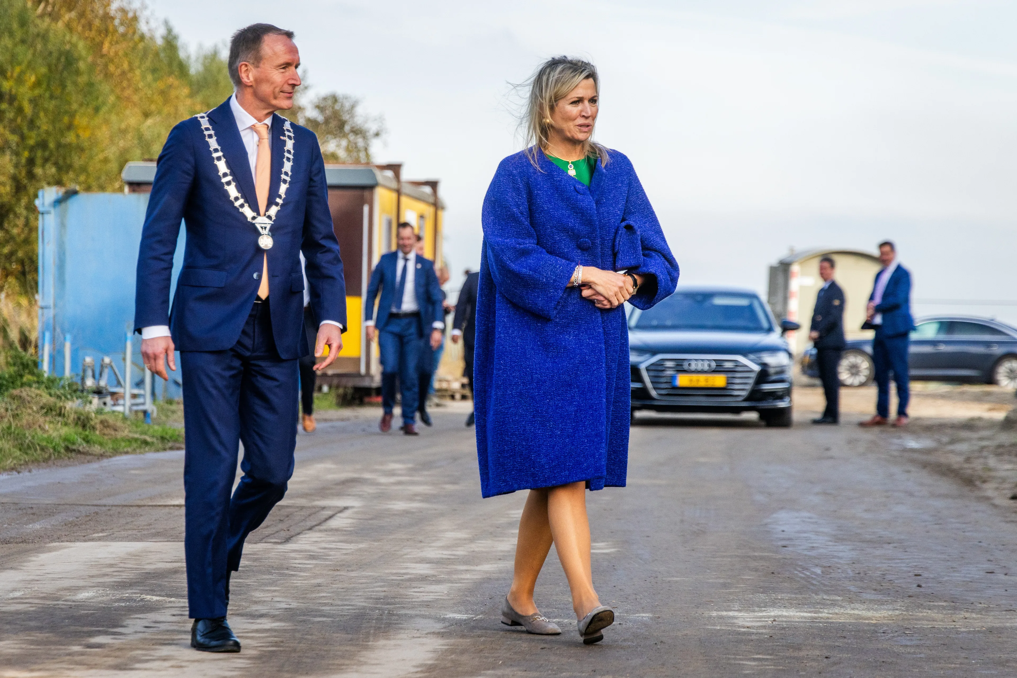 Tijdens een bezoek aan Waalwijk en Klaaswaal in 2024, droeg koningin Máxima twe opvallende kleuren bij elkaar. Namelijk koningsblauw en appeltjesgroen. De japon is van Natan, net als de kasjmieren mantel. De kleuren kwamen ook terug in haar ketting en andere accessoires, waardoor de look echt één geheel werd.