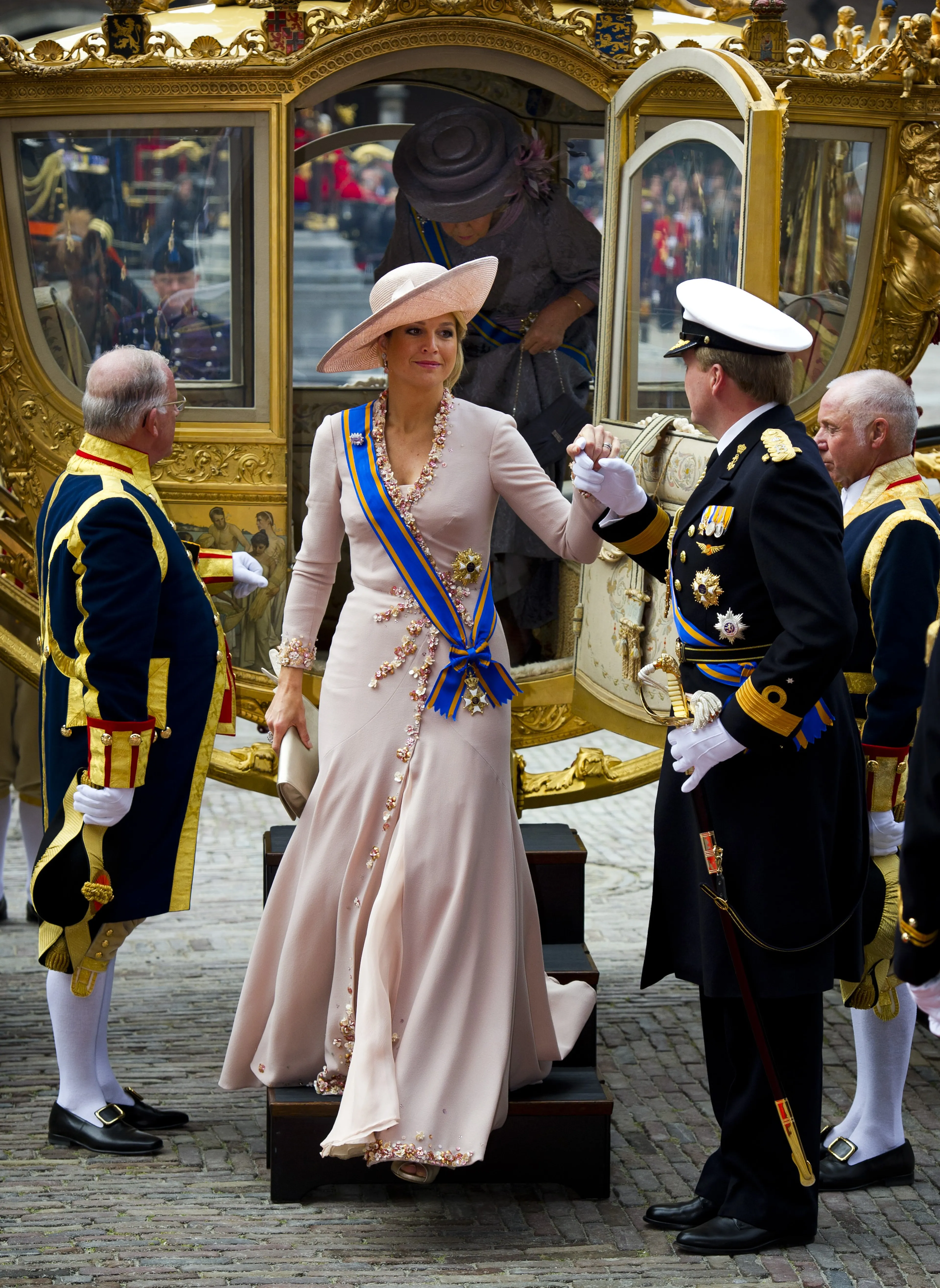 Het is de derde dinsdag in september 2010 als toenmalig prinses Máxima deze poederroze galajurk van Jan Taminiau voor het eerst draagt. Het is Prinsjesdag dus de prinses draagt de japon met een grote hoed in dezelfde kleur. In 2011 zien we de jurk opnieuw, wanneer koningin Beatrix, prins Willem-Alexander en prinses Máxima een staatsbezoek brengen aan Qatar. Voor de contraprestatie heeft Máxima deze japon ingepakt.