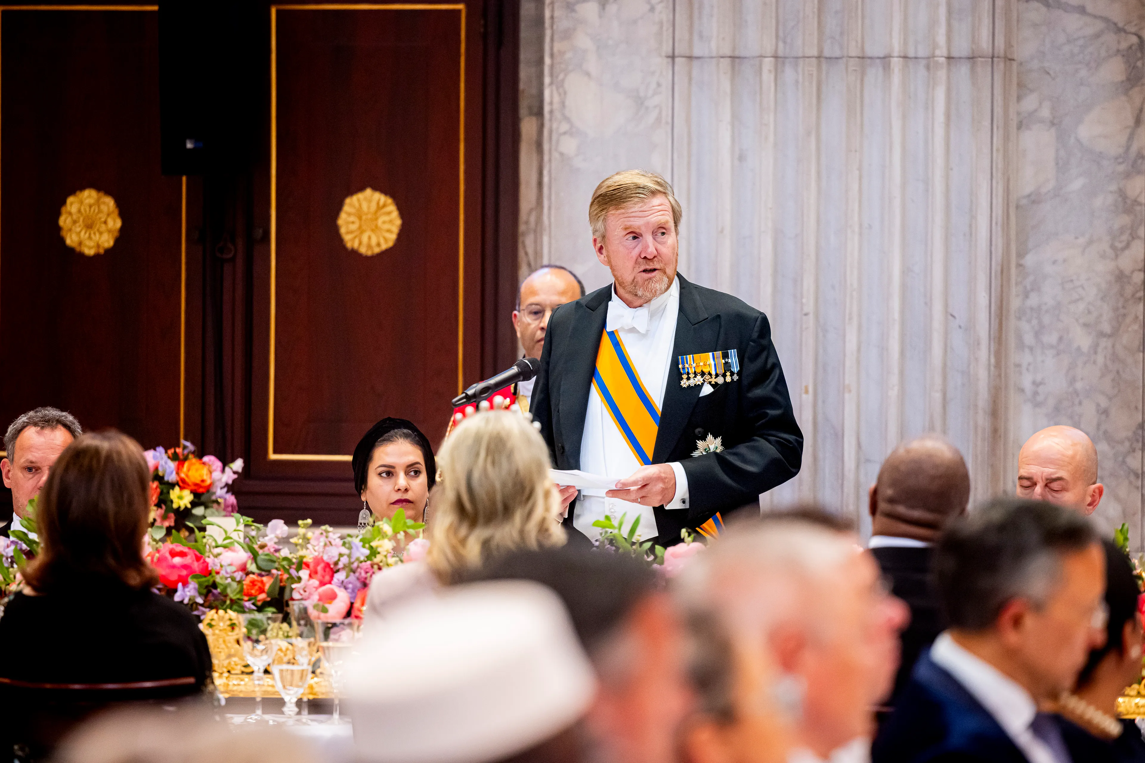 Koning Willem-Alexander benadrukte maandag tijdens zijn toespraak bij het galadiner voor het corps diplomatique in het Koninklijk Paleis Amsterdam dat de rol van diplomaten belangrijker is geworden door de toegenomen wereldwijde spanningen. "De wereld die wij samen delen verandert snel. Gezamenlijke regels en afspraken staan onder druk. Gezonde concurrentie neemt steeds vaker de vorm aan van scherpe rivaliteit. En helaas ontwrichten spanningen en conflicten de levens van miljoenen mensen", zei Willem-Alexander in zijn toespraak.