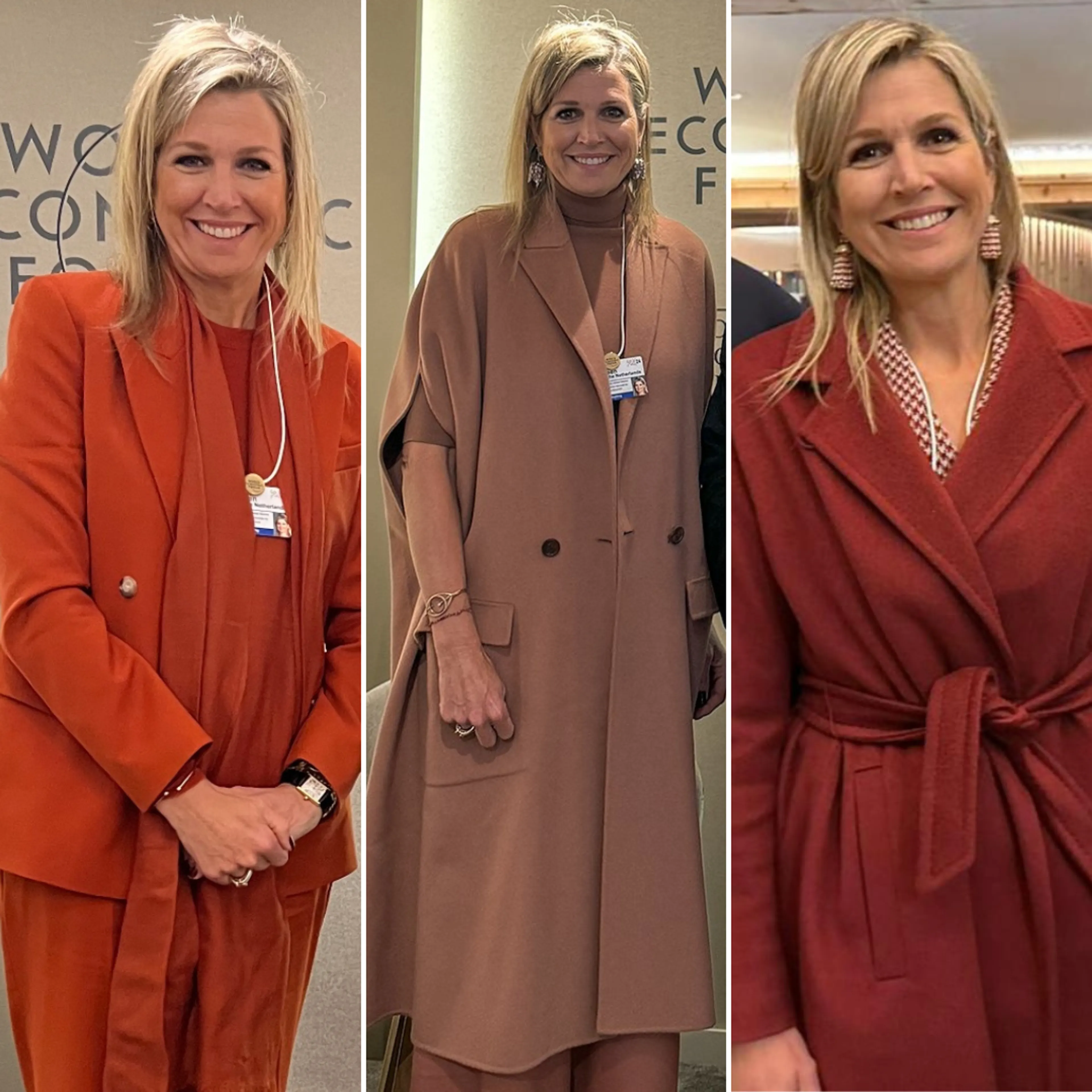 Vaak kiest de koningin voor een praktische en zakelijke outfit, zodat de focus niet op haar outfit maar op het werk ligt. Zo zien we haar regelmatig in een broekpak met een nette blouse. Ook in Davos koos Máxima voor functionele outfits, maar niet alle outfits hebben we eerder voorbij zien komen.