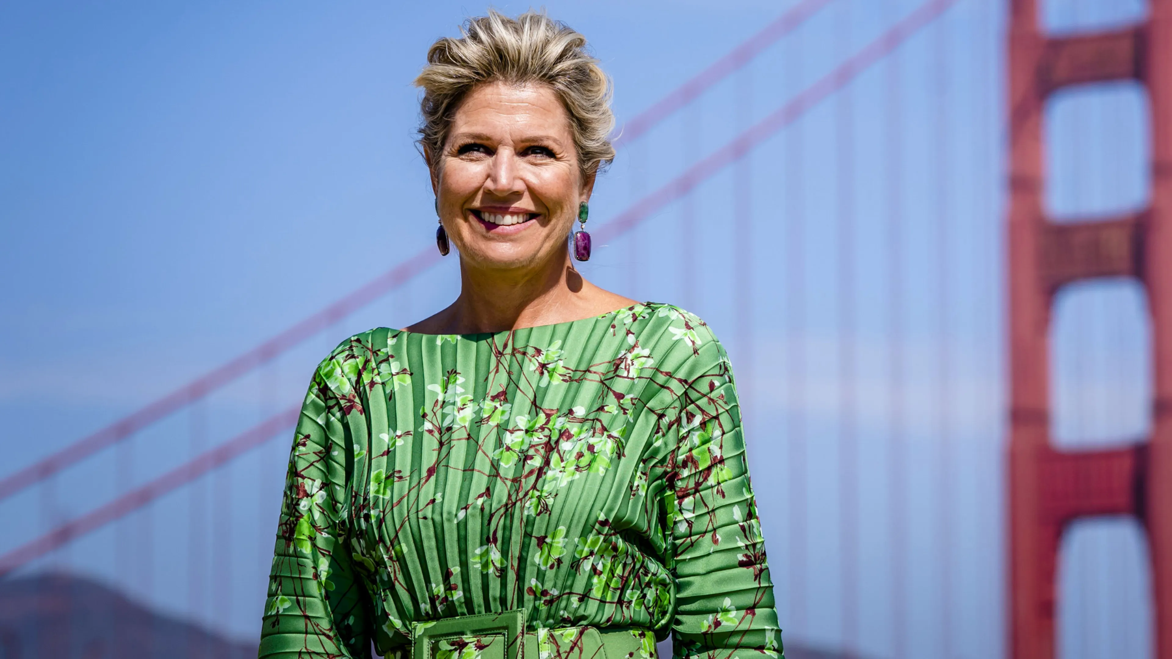 Volgens modekenner Josine Droogendijk was de kleur van Máxima’s jurk niet zomaar gekozen. “Smaragdgroen staat symbool voor harmonie, groei en vernieuwing”, schrijft zij op haar website. Het ging om een nieuw exemplaar, vermoedelijk van modehuis Natan. Máxima combineerde de jurk met een bijpassend hoedje van Philip Treacy, dat al eerder te zien was tijdens het inkomende staatsbezoek van Finland eind 2025. Omdat het weer nog niet helemaal strandproof was, droeg de koningin daarnaast een warme wollen mantel, vermoedelijk een ouder ontwerp van Max Mara. Die mantel dook in 2023 ook al eens op: toen leende haar jongste dochter Ariane het exemplaar voor de winterse fotosessie van dat jaar.