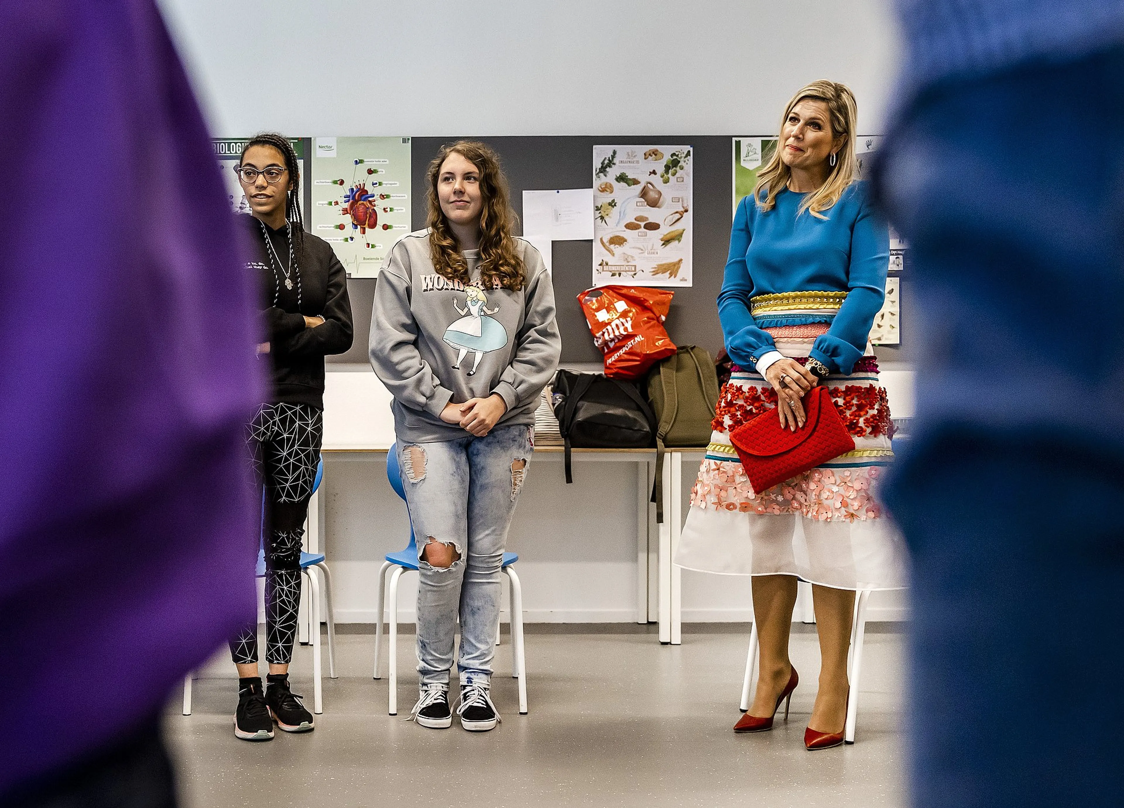 Máxima en Blokhuis kwamen langs vanwege de diverse projecten die MIND organiseert op de school in Den Haag. Die organisatie zet zich in voor het mentaal welzijn en heeft voor jongeren speciale projecten gelanceerd. Zo geven er op het Maris College Kijkduin ervaringsdeskundigen lessen waarin zij ervaringen delen en jongeren met psychische klachten kunnen adviseren en ondersteunen. Máxima en Blokhuis bezochten een les van een ervaringsdeskundige.