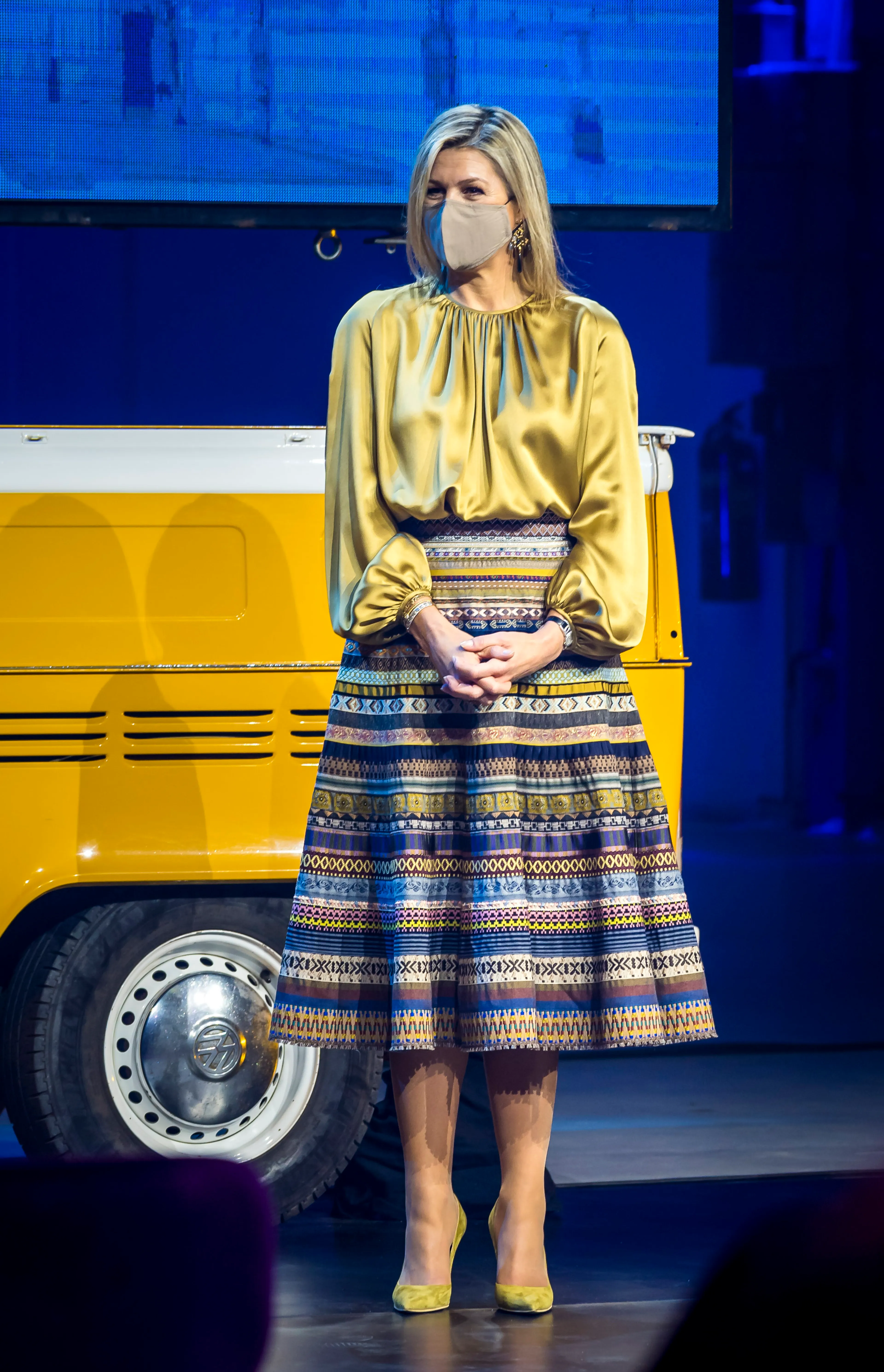 Geel is de ultieme paaskleur. Máxima heeft tal van gele outfits in de kast hangen. Het afgelopen jaar kwam zij dan ook regelmatig in deze vrolijke kleur tevoorschijn. Maar geel is ook de kleur van hoop. Iets wat we allemaal nodig hebben in deze tijd.