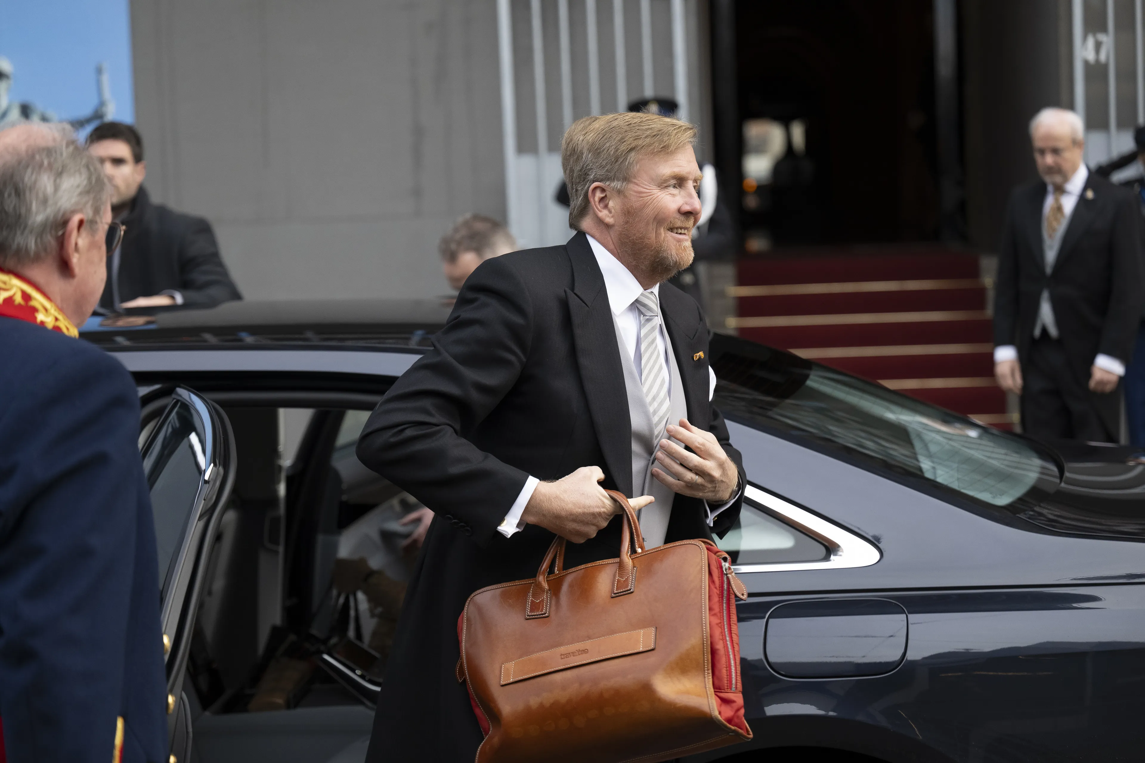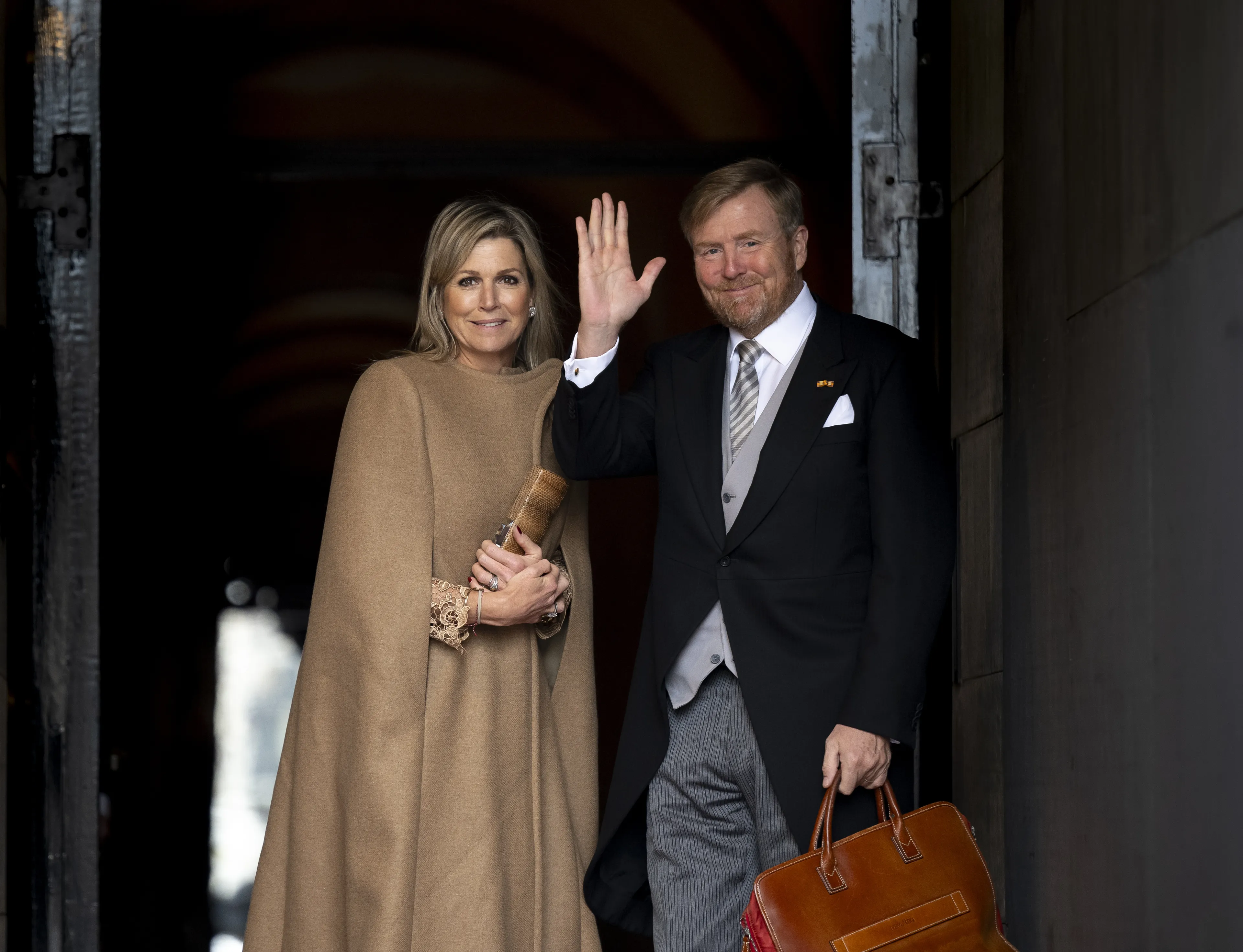 Even na 10.00 uur arriveert het koningspaar bij het Koninklijk Paleis in Amsterdam, dat momenteel gerestaureerd wordt en in de steigers staat. Koning Willem-Alexander draagt, passend bij de gelegenheid, een jacquet. Koningin Máxima verschijnt in een beige ontwerp van Claes Iversen. De kanten jurk met bijpassende mantel werd eerder gedragen in 2018 en 2019.