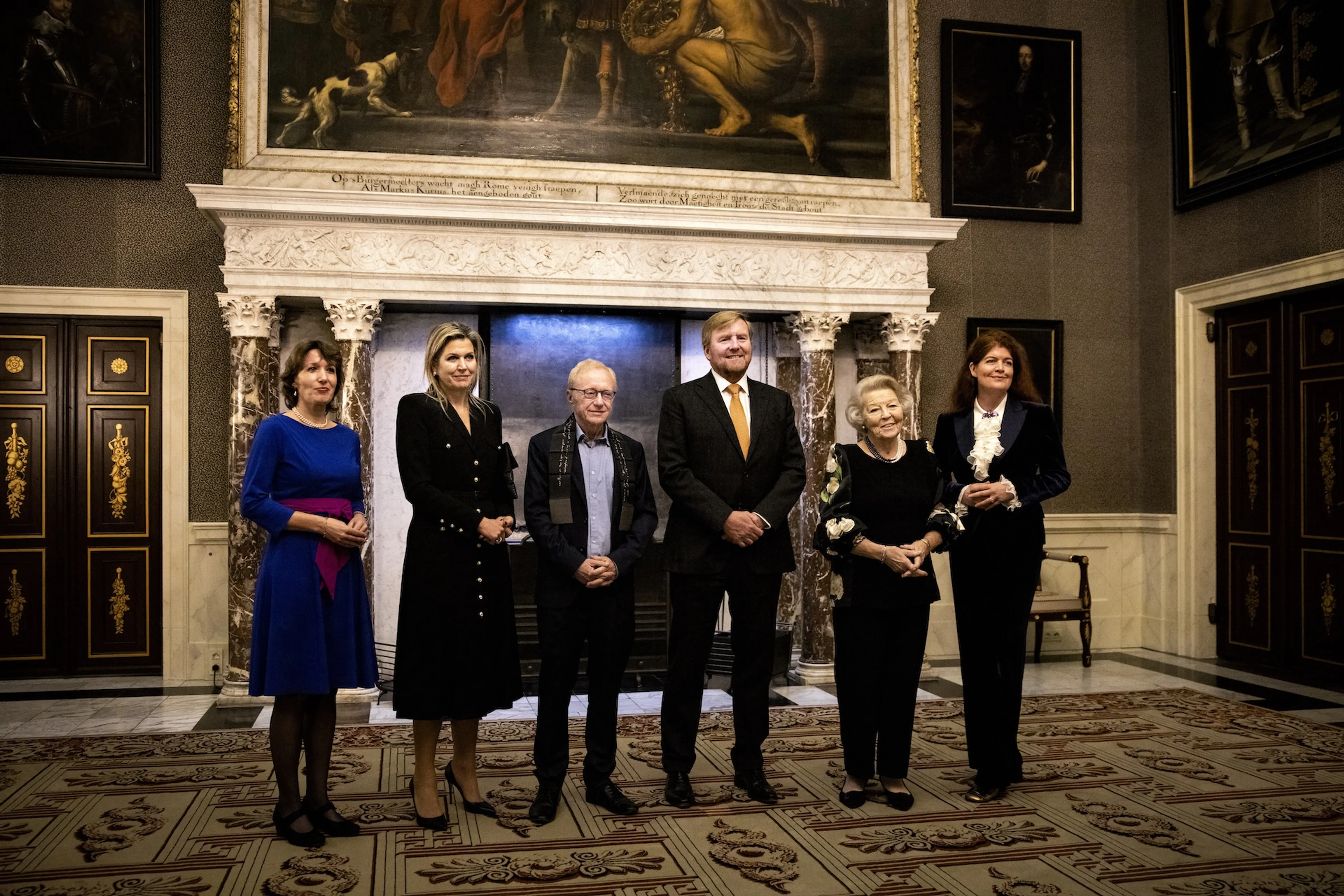 's Middags was koningin Máxima samen met haar schoonmoeder en echtgenoot in het Koninklijk Paleis op de Dam. Daar reikte koning Willem-Alexander de Erasmusprijs uit aan de Israëlische schrijver David Grossman.