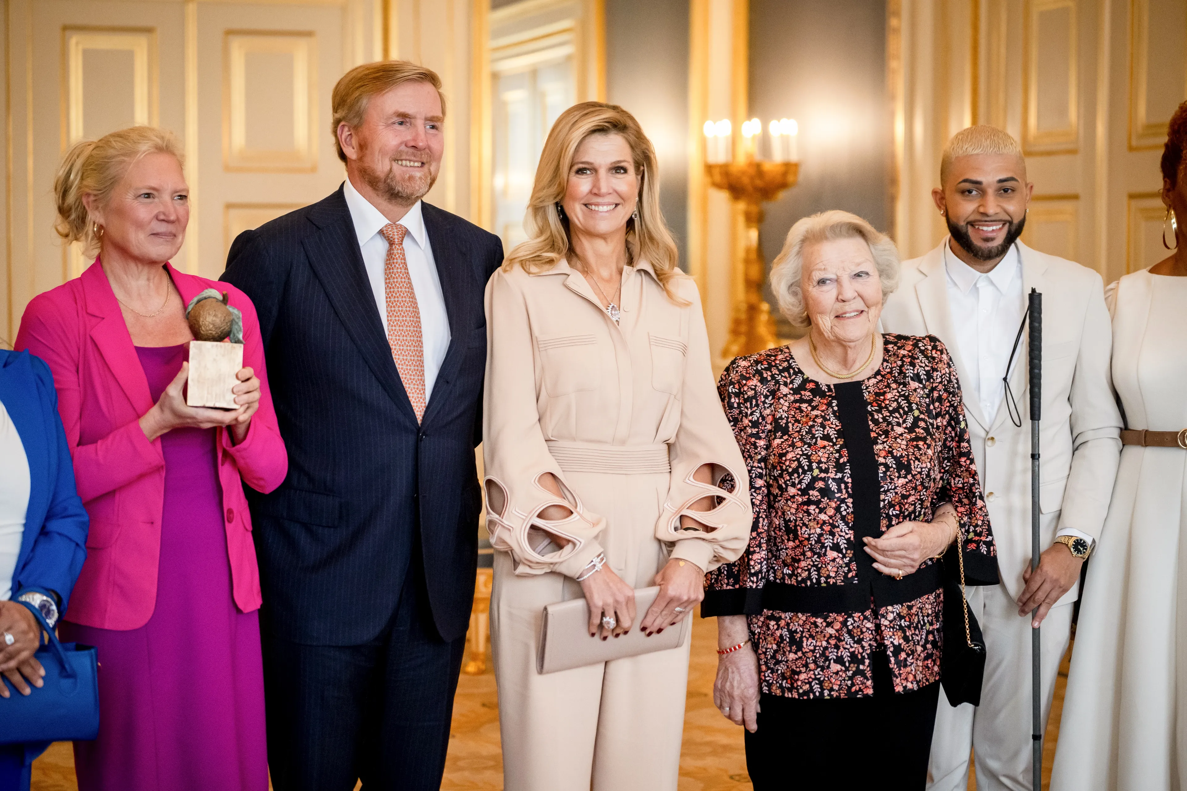 De Appeltjes van Oranje werden op 9 oktober weer uitgereikt door koningin Máxima in aanwezigheid van koning Willem-Alexander en prinses Beatrix. Voor deze feestelijke gelegenheid droeg de koningin een jumpsuit die al een tijdje in haar kast hing, een ontwerp van Elie Saab. Mét opvallende gaten in de mouwen.