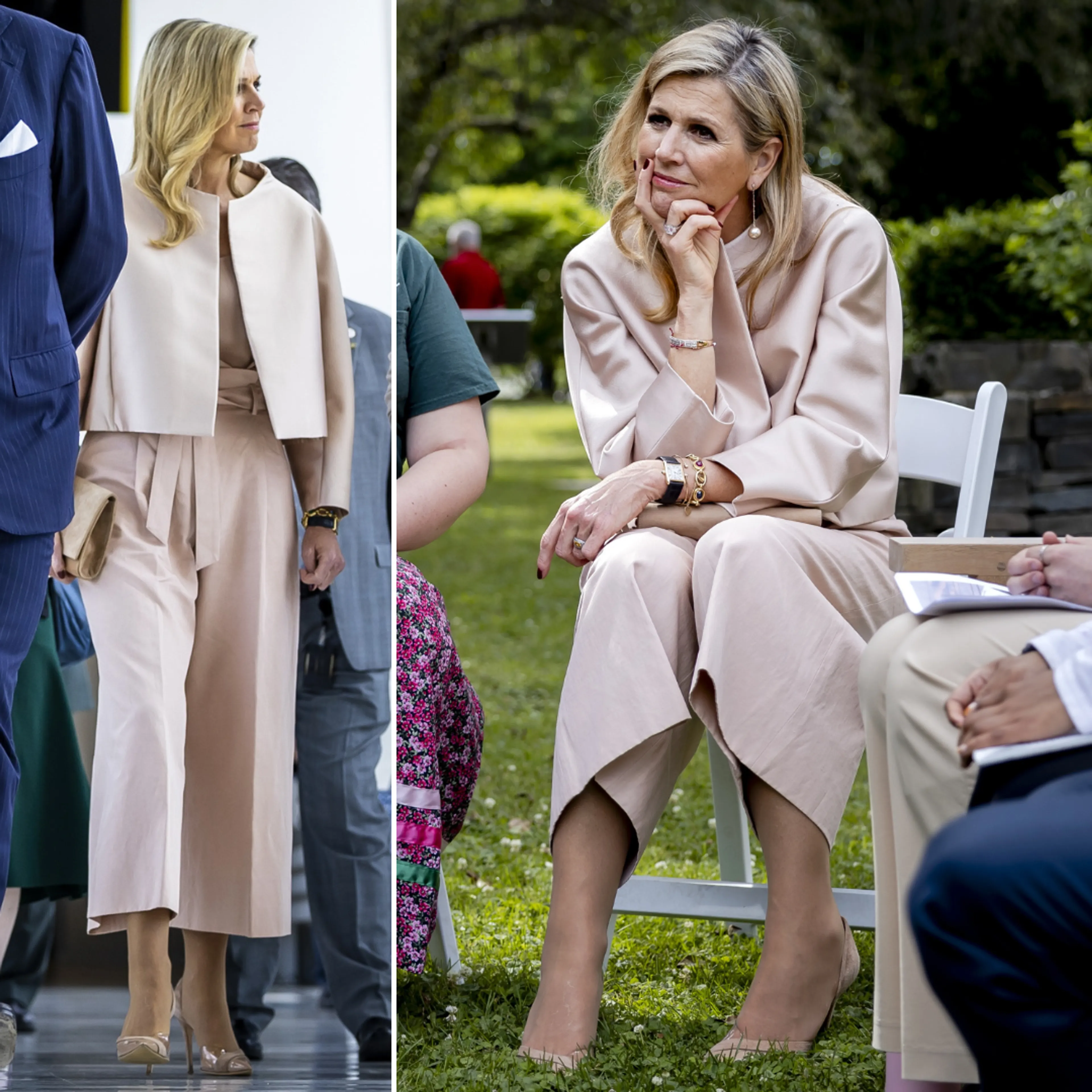 Zondagavond arriveert het koningspaar in de Verenigde Staten. Wanneer Willem-Alexander en Máxima de vliegtuigtrap aflopen, zien we dat de koningin een roze broekpak van Claes Iversen draag. Ze heeft de outfit eerder gedragen in 2023, tijdens het streekbezoek aan de Waddeneilanden en een VN-bezoek in Brazilië.