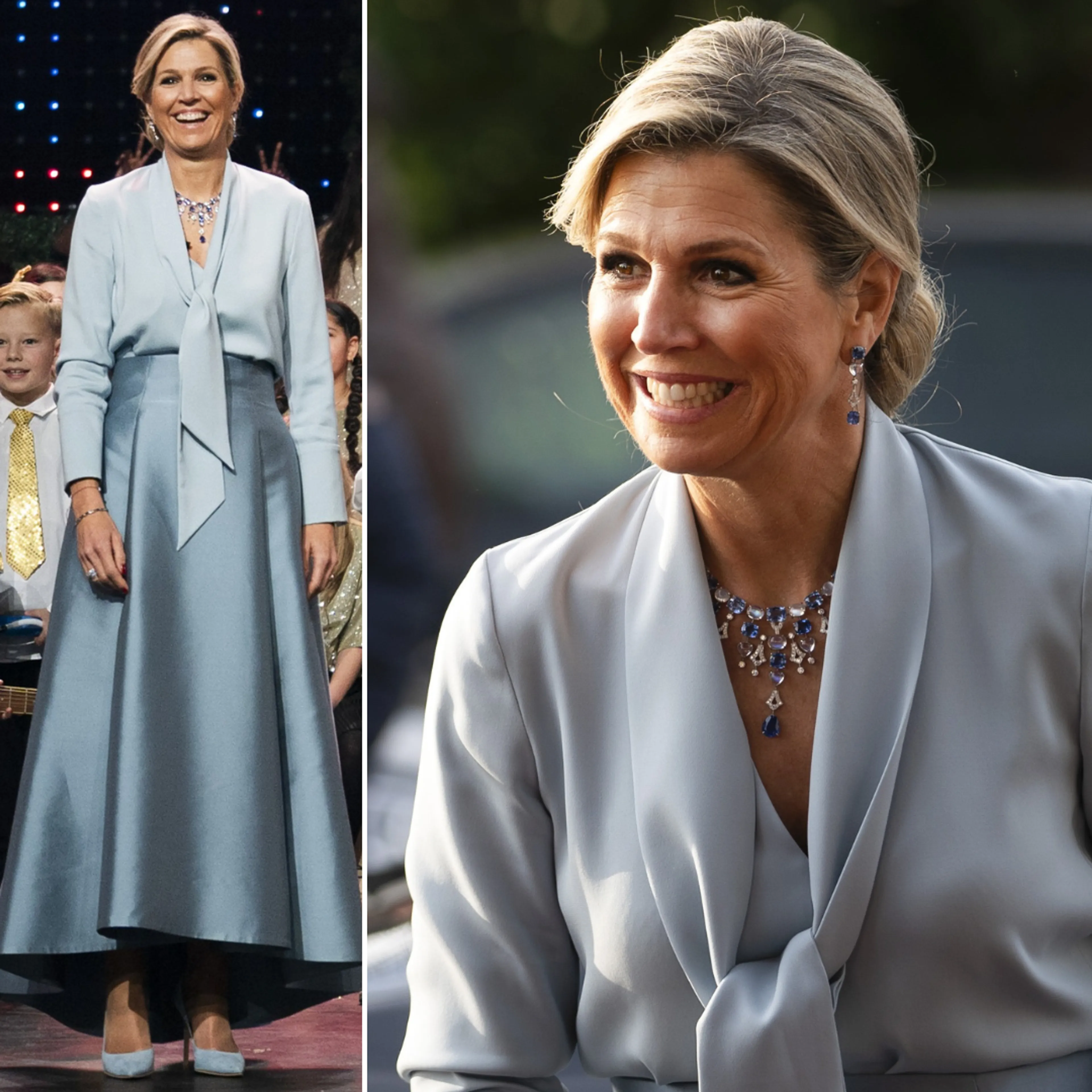 Koningin Máxima sluit het jaar spectaculair af met twee enorm chique outfits. In Parijs draagt ze een bijzondere avondjurk van Iris van Herpen. Tijdens het jaarlijkse Kerst Muziekgala verschijnt de koningin geheel gekleed in Natan. Wat een stijlvolle afsluiting van 2023!