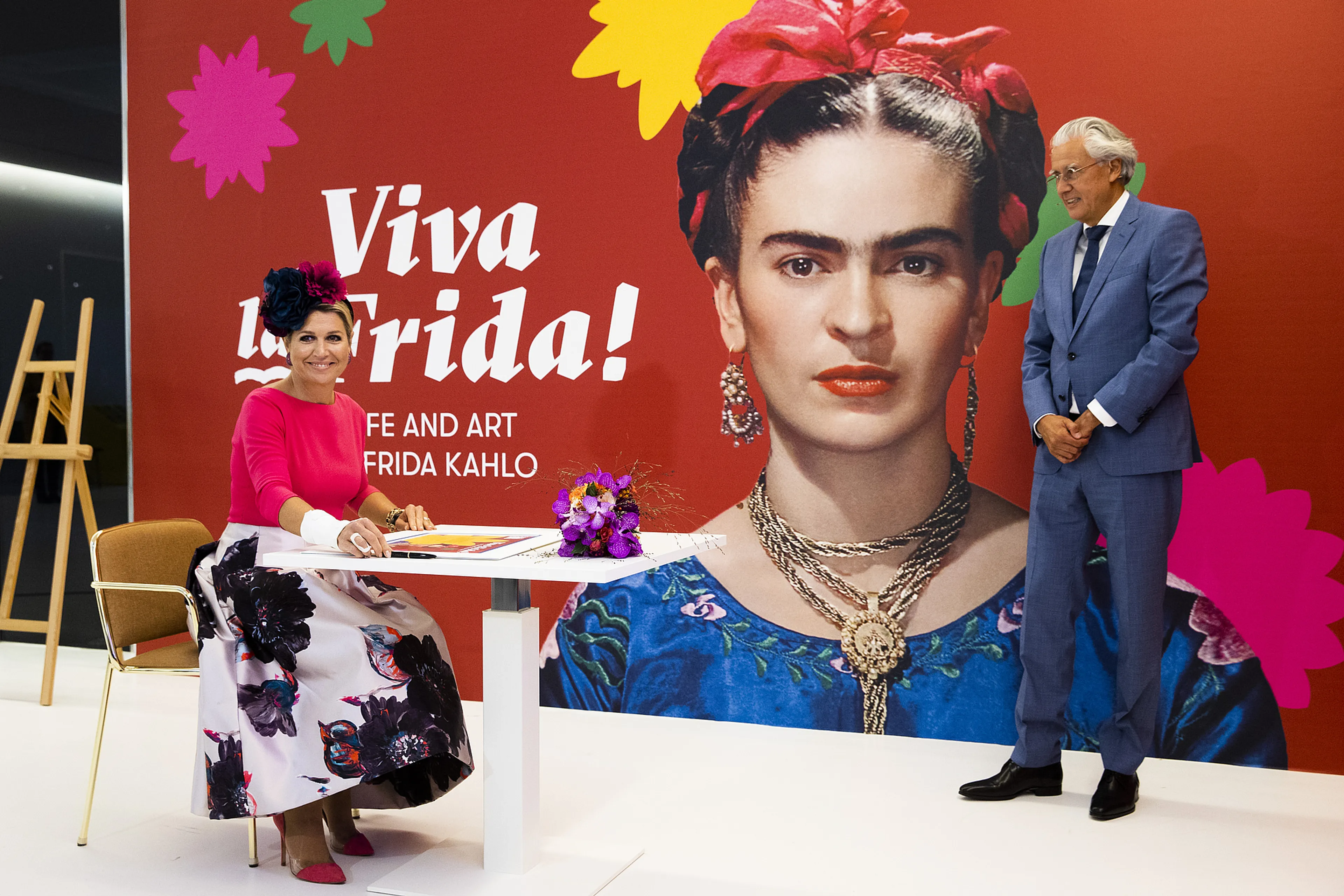 Koningin Máxima heeft donderdagmiddag in Assen de tentoonstelling 'Viva la Frida!' over het leven van de Mexicaanse kunstenares Frida Kahlo geopend. En dat deed ze geheel in stijl: Máxima eerde Frida in haar kleding.