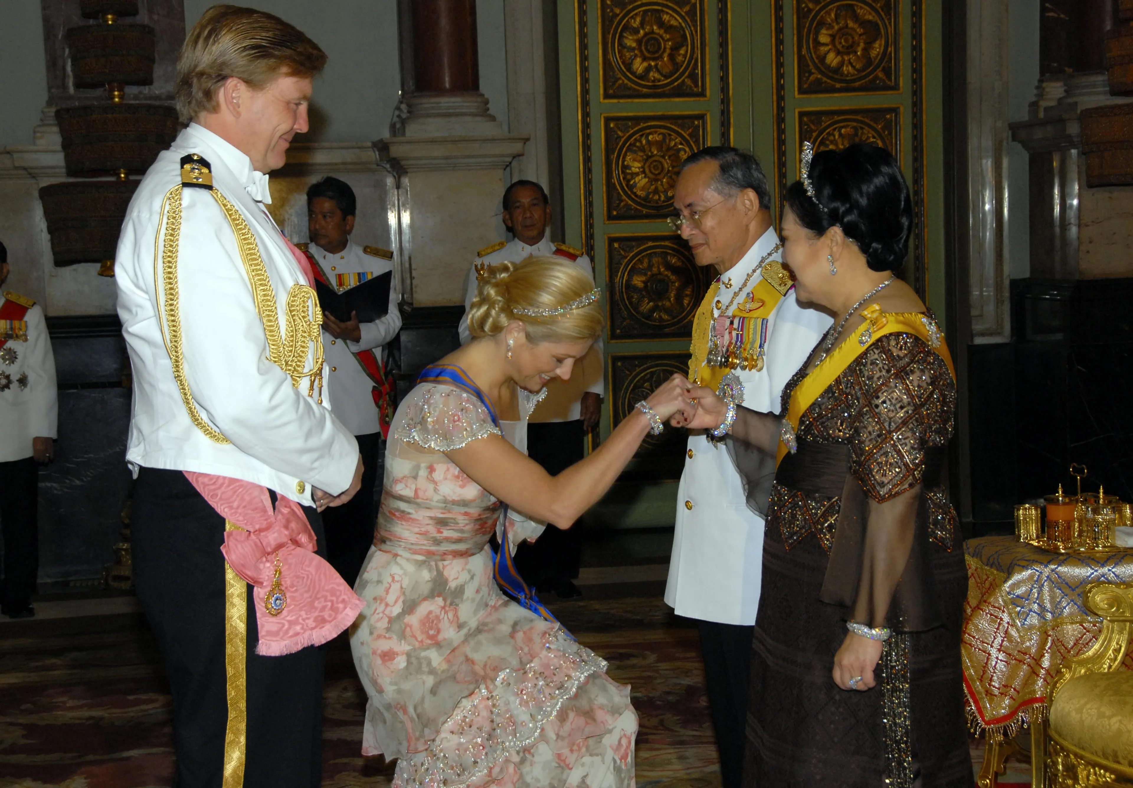 Maar, de jurk is nog wat jaartjes ouder. We zagen de koningin er voor het eerst mee in 2006, bij het 60-jarig regeringsjubileum van de Thaise koning Bhumibol.
