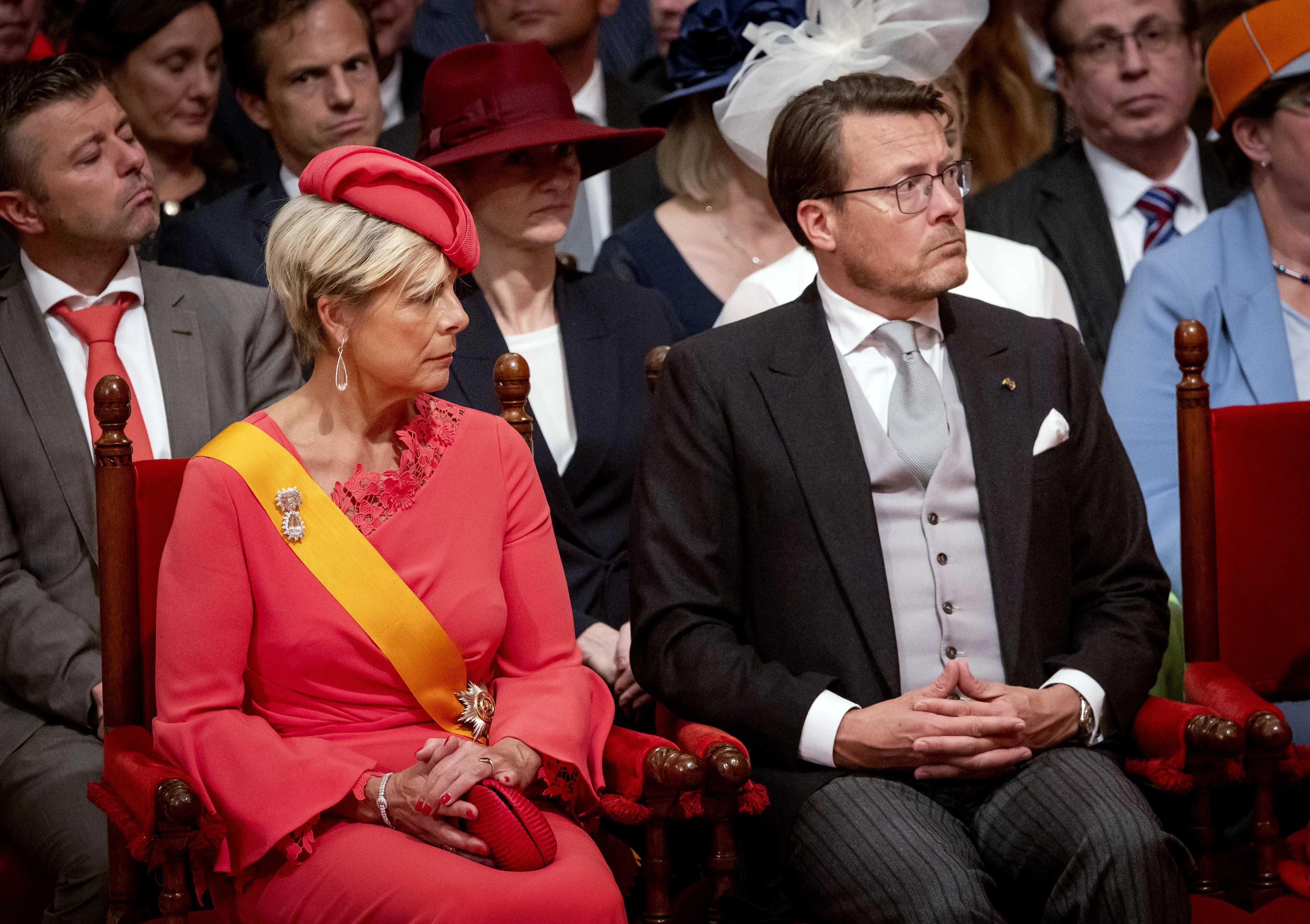 Ook prinses Laurentien kiest voor een knallende japon. Ze draagt een zuurstokroze ensemble van Hardies, een modehuis uit Den Haag waar prinses Laurentien graag haar Prinsjesdag-jurken haalt. De prinses draagt de versierselen behorende bij het Grootkruis in de Huisorde van Oranje.
