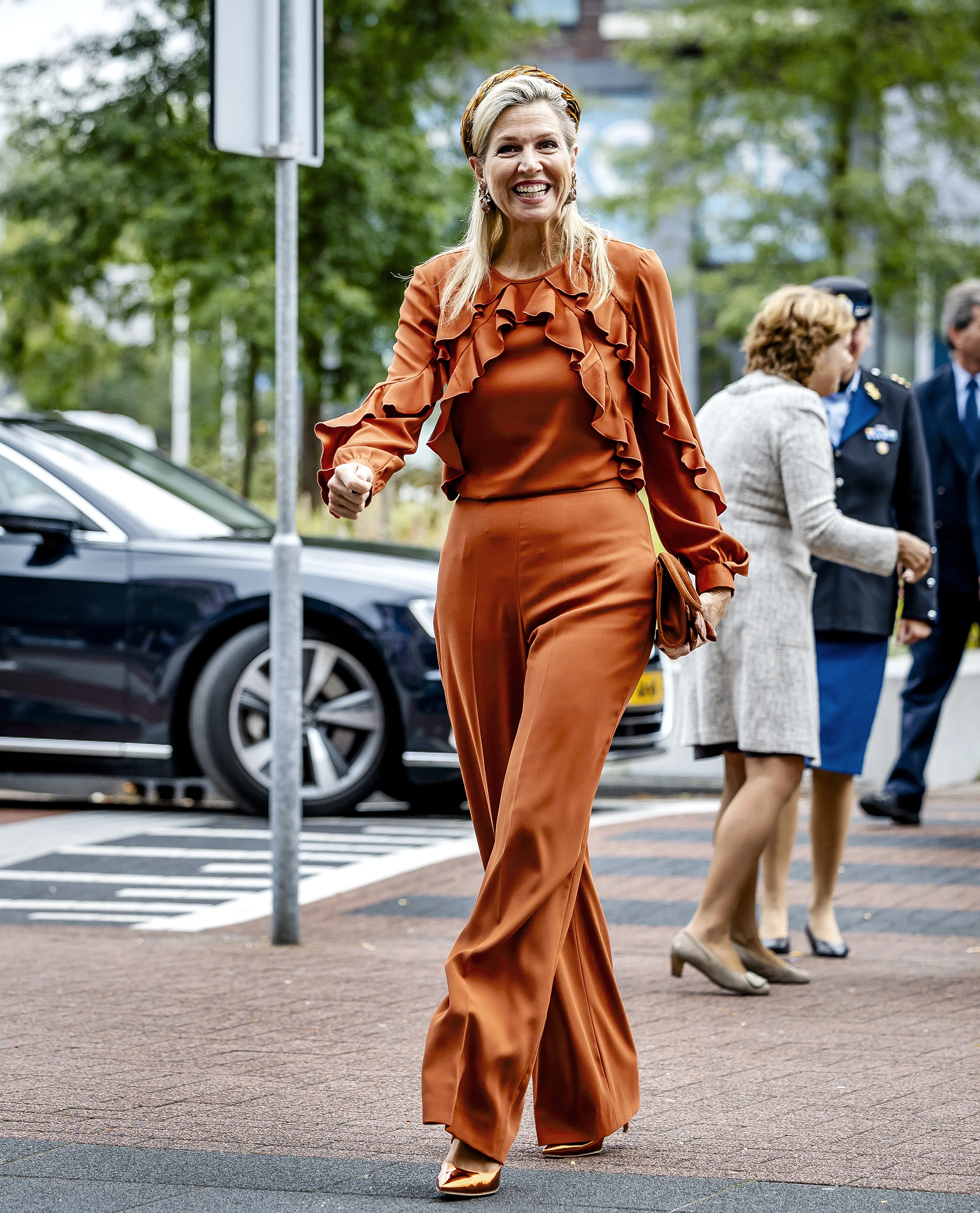 Koningin Máxima opent dinsdagochtend een nieuwe polikliniek van het Reinier de Graaf ziekenhuis in Delft. Hier worden mensen met de chronische aandoening endometriose behandeld. De koningin opent de kliniek in stijl, want ze draagt een nieuwe outfit in een oranje-bruine kleur.