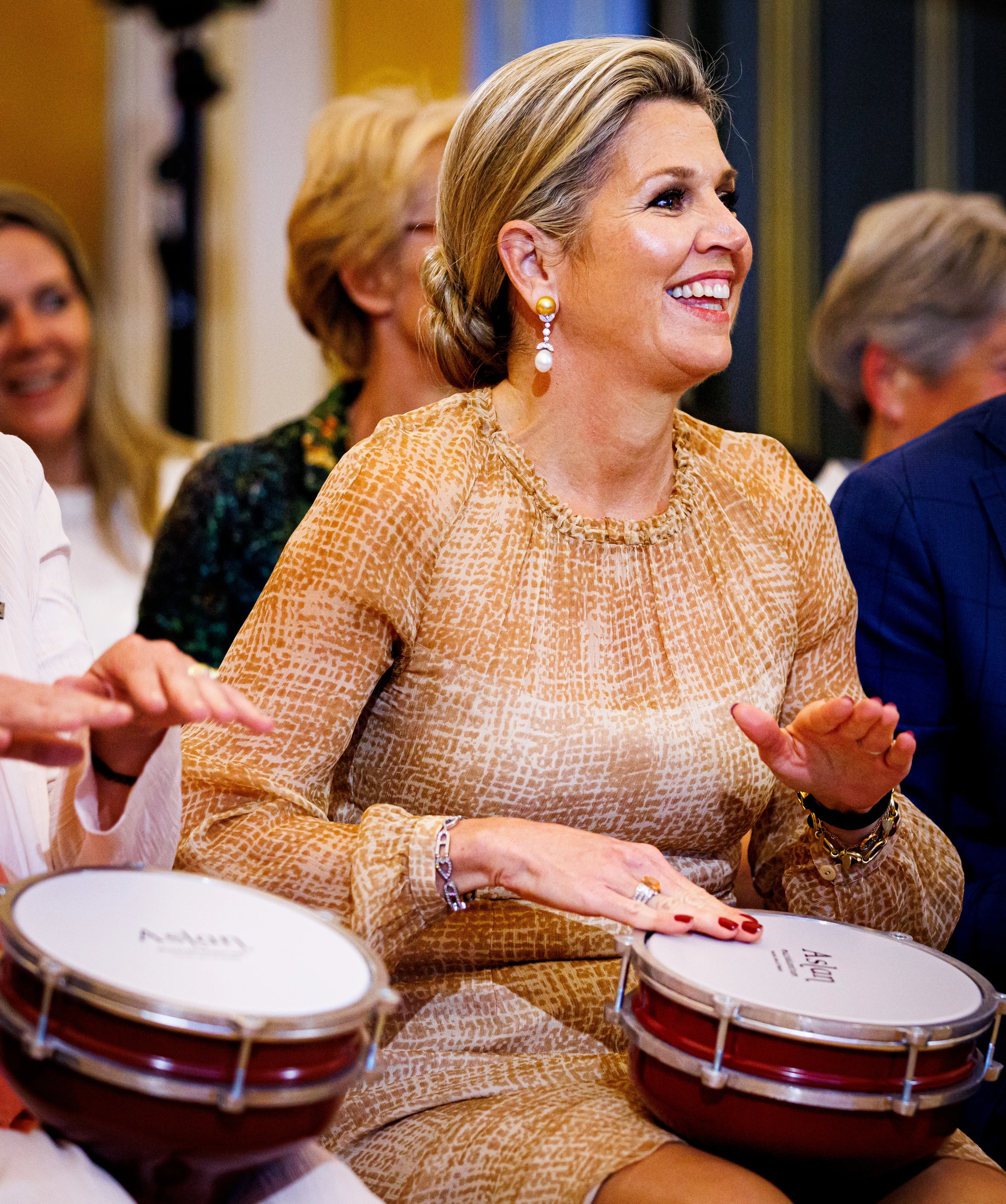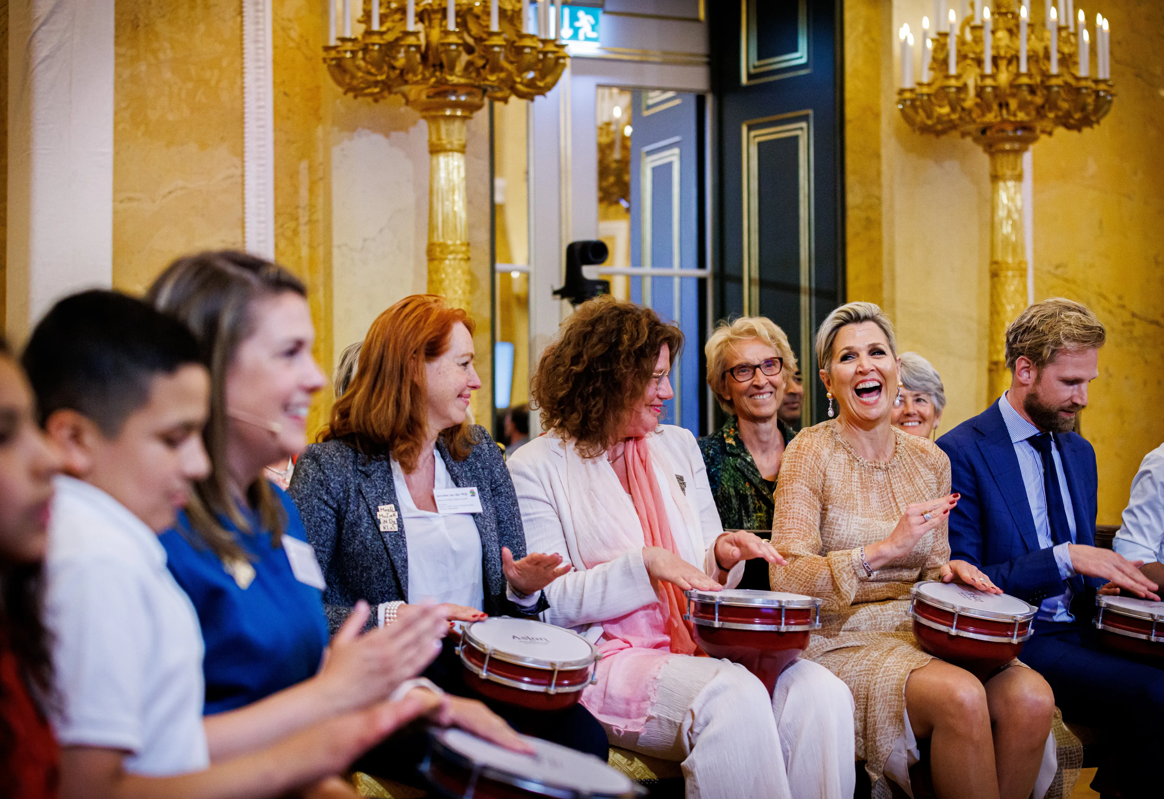Máxima trommelt er lekker op los tijdens workshop muziek