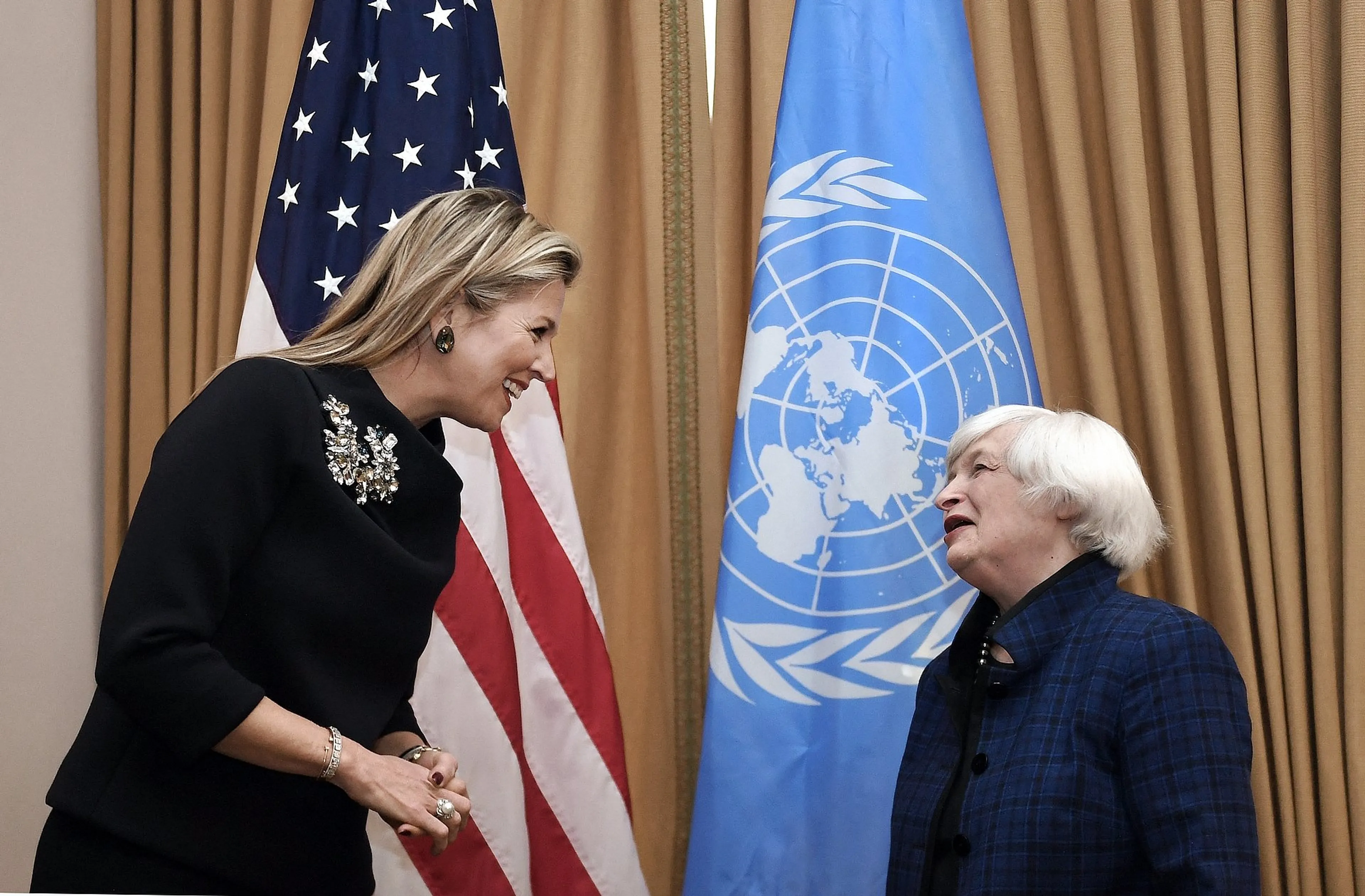 Koningin Máxima heeft woensdag in Washington D.C. een ontmoeting gehad met Janet Yellen, de Amerikaanse minister van Financiën. De twee spraken elkaar over onder meer het belang van de meetbaarheid van financiële gezondheid in het beleid van overheden en toezichthouders.