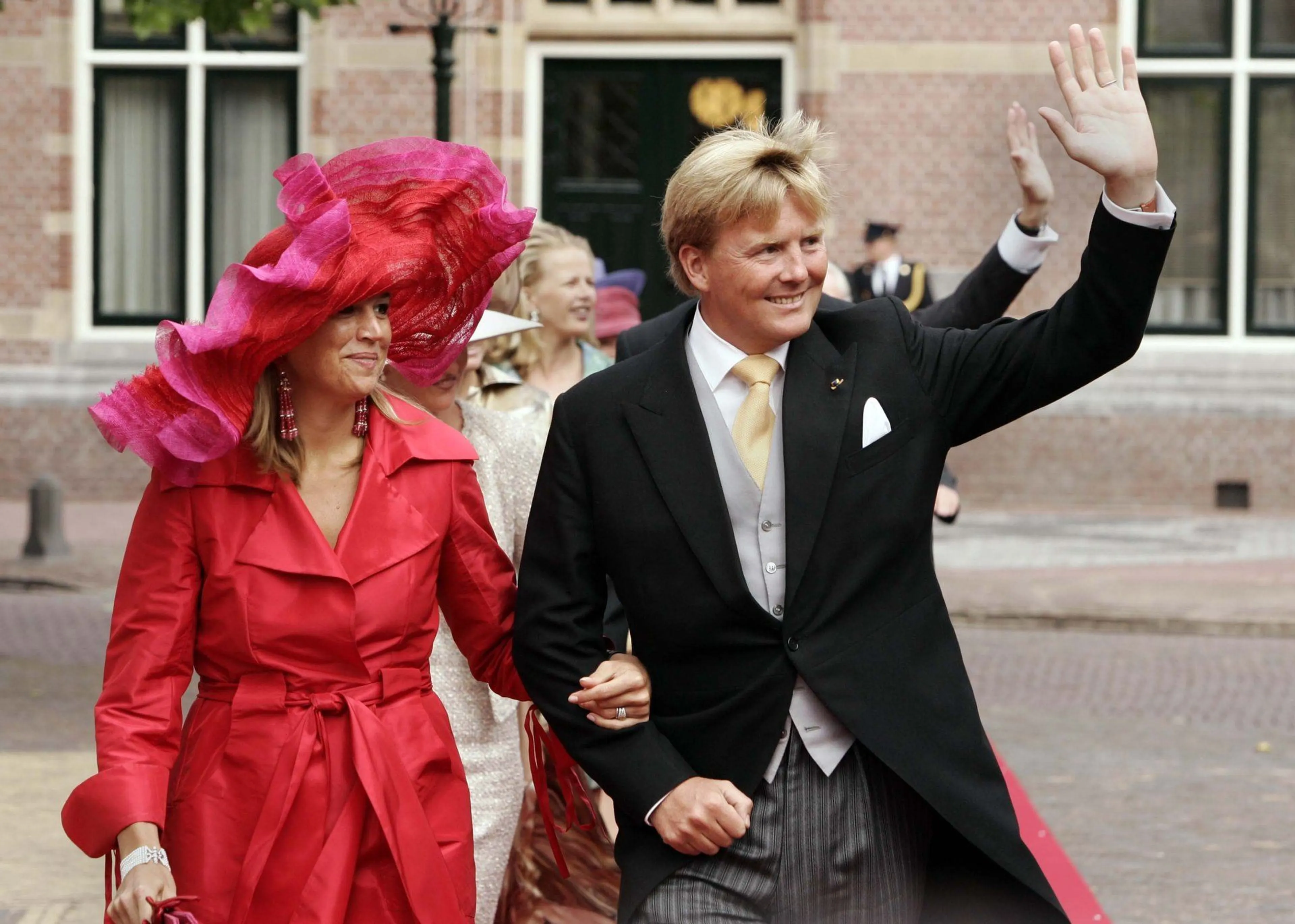 Bij een huwelijk draait het allemaal om de bruid. Prinses Máxima draagt zo’n grote hoed naar de trouwerij van prins Pieter-Christiaan en prinses Anita dat zij wellicht wat aandacht inpikt. Wat een hoed!