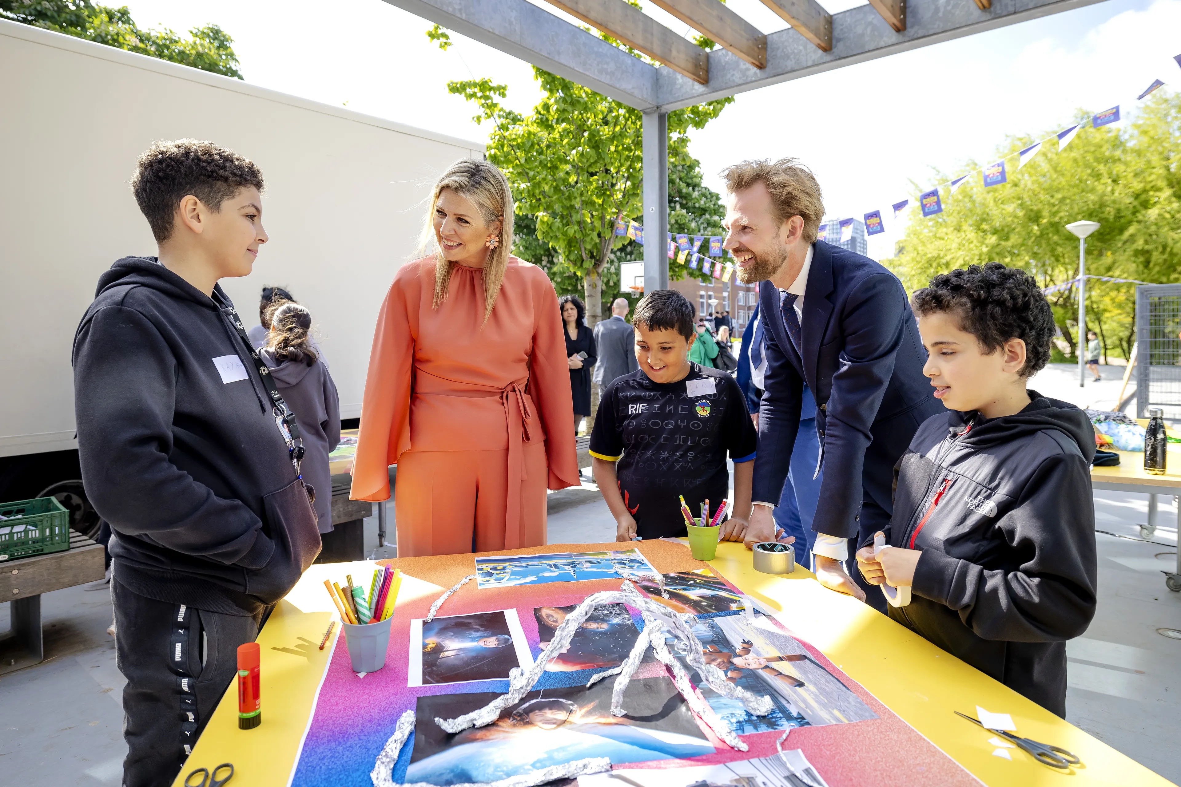 Vlak voordat zij het startschot gaf, liep de koningin samen met onderwijsminister Dennis Wiersma en de Haagse burgemeester Jan van Zanen een rondje over het plein van O3, waar kinderen aan het koken, schilderen, dansen en toneelspelen waren. De koningin stopte overal even en maakte met sommige kinderen ook een praatje. Die vonden dat geweldig, bleek wel uit het gejoel dat ontstond zodra Máxima zich omdraaide en naar een volgende discipline liep. Een van de dansers die na hun optreden een 'boks' kreeg van de vorstin, riep haar hand "nooit meer te wassen".
