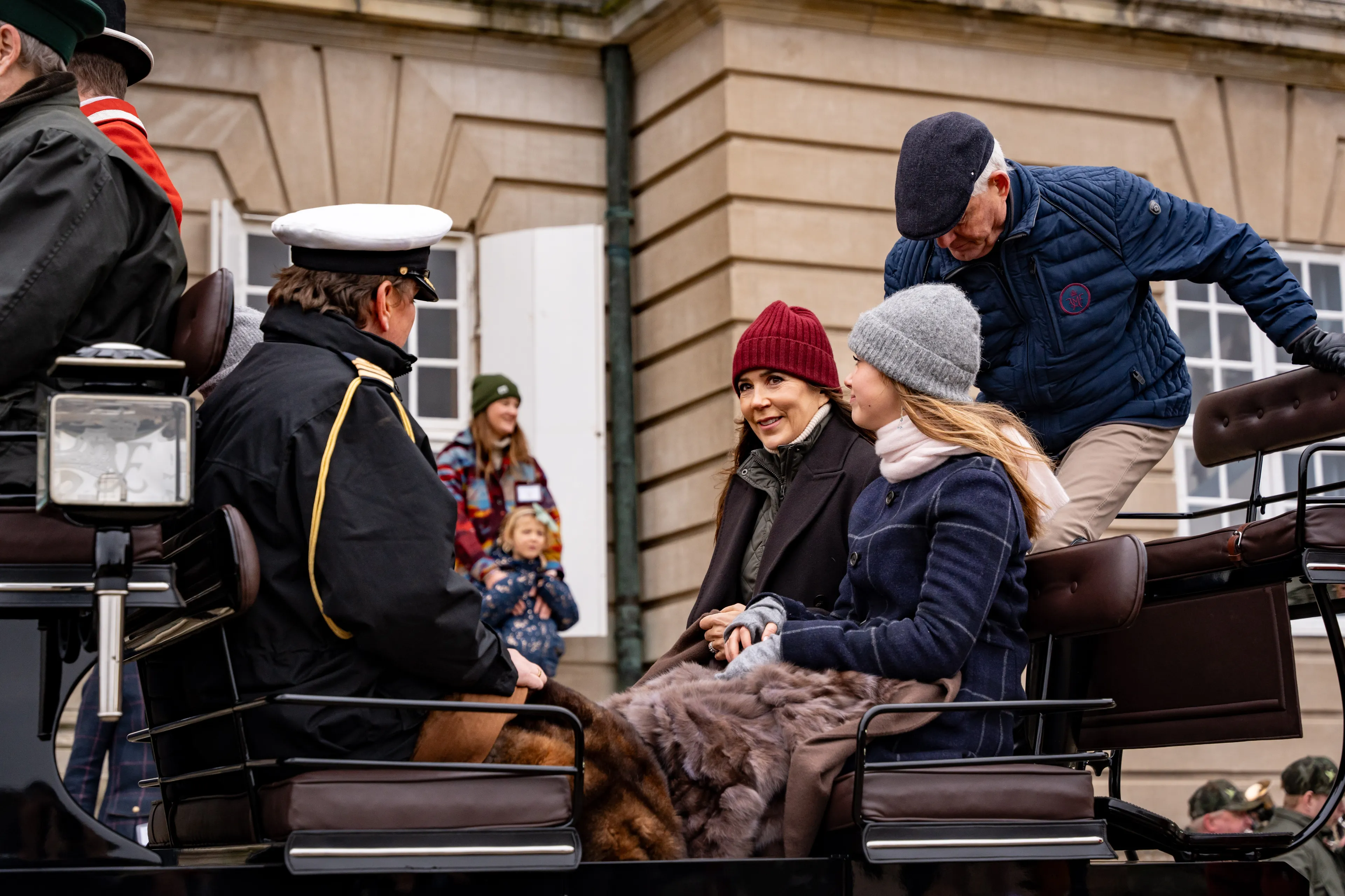 Leuke beelden uit Denemarken: koningin Mary nam zondag haar jongste dochter Josephine mee op pad. Ze gingen naar de traditionele Hubertusjacht in Klampenborg, Denemarken.