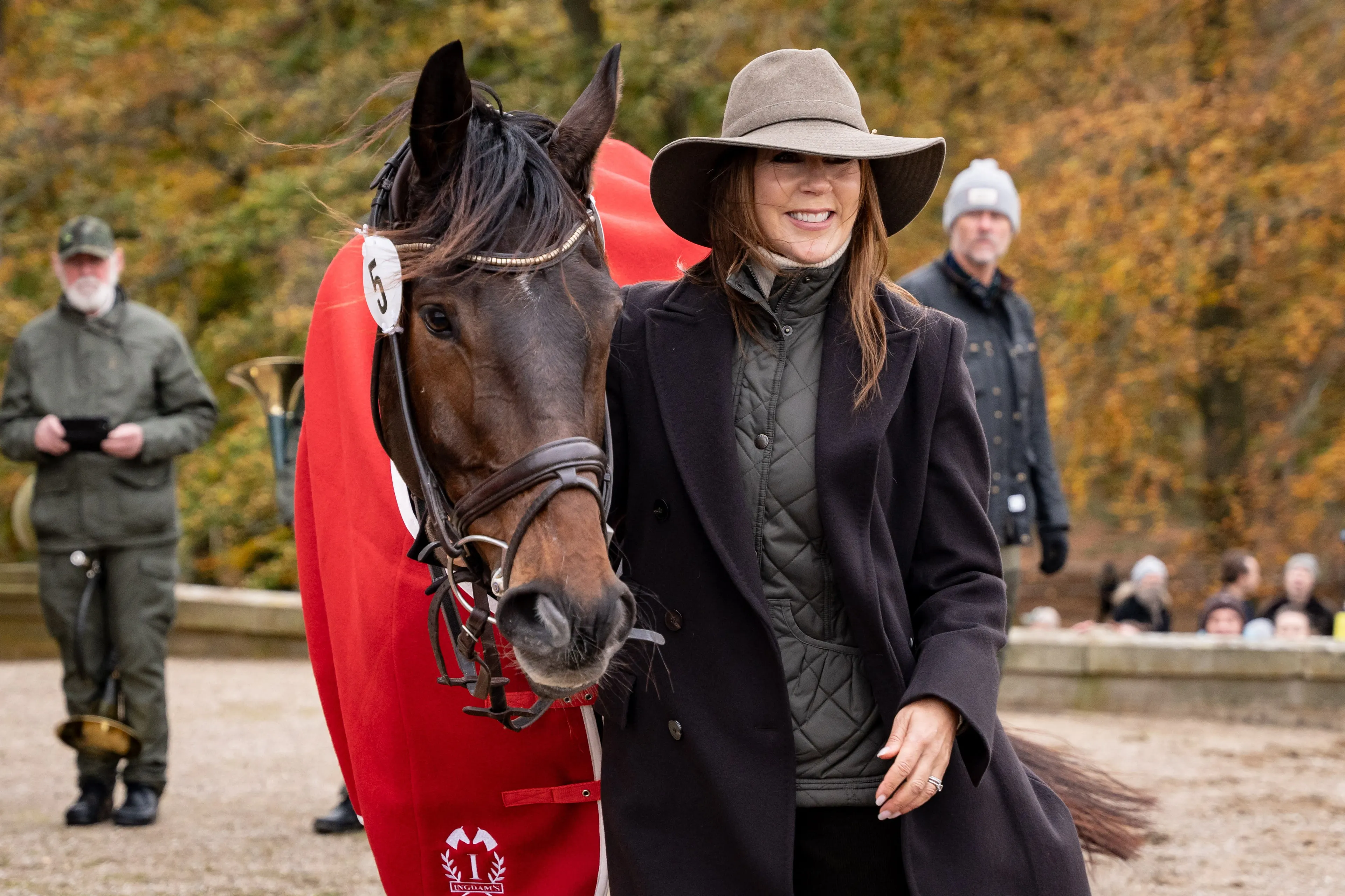 De Hubertusjacht wordt, met enkele uitzonderingen, sinds 1900 elk jaar georganiseerd. Het evenement is een voortzetting van de traditionele parforcejacht, waarbij op vossen wordt gejaagd met honden. Tegenwoordig zijn de vossen vervangen door twee ervaren ruiters, die met vossenstaarten aan hun jas vooropgaan in een race van 11 kilometer met 32 hindernissen. De koningin ging na afloop nog met een van de paarden op de foto.