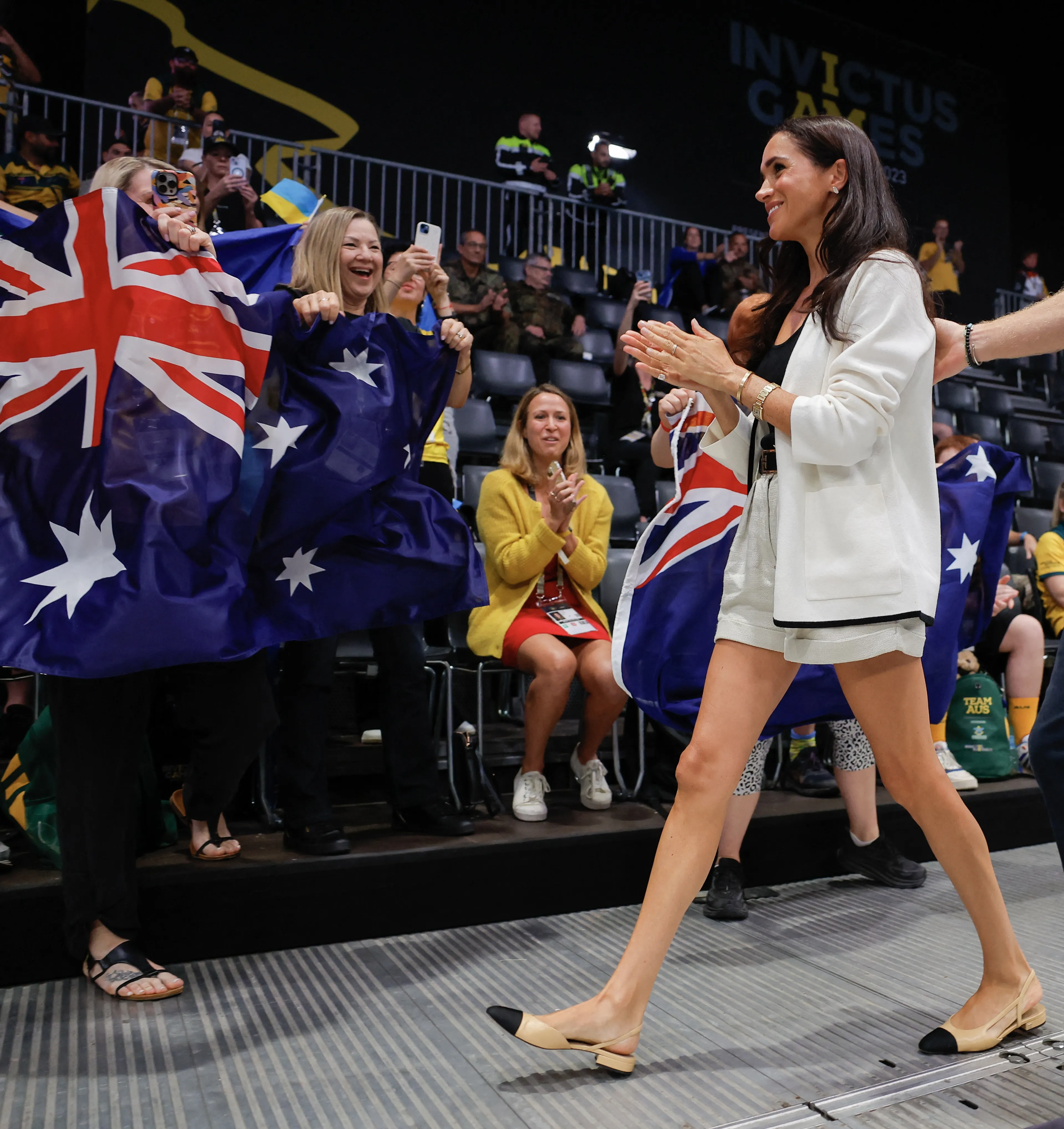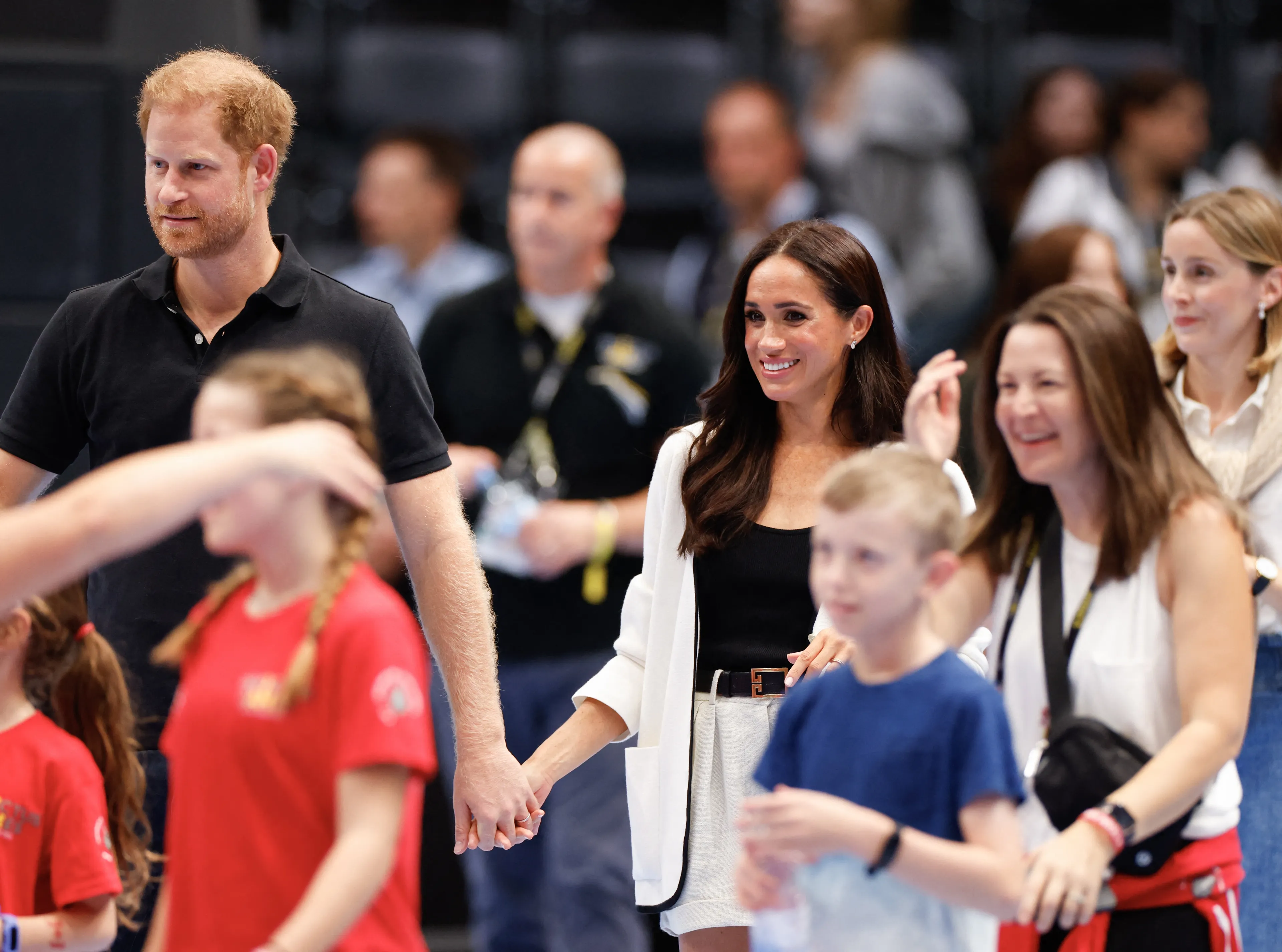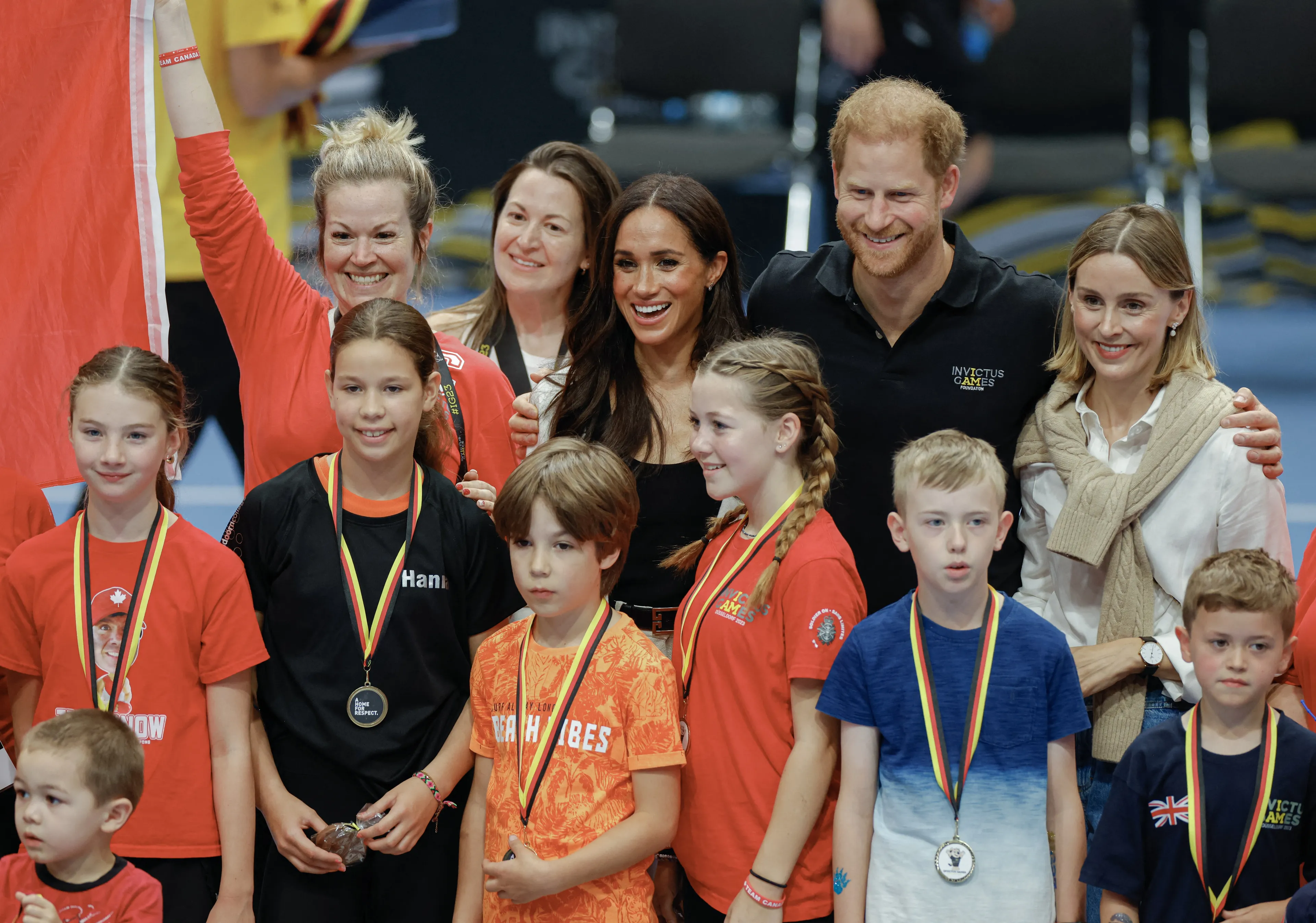 Meghan maakte gisteren haar lang verwachte opwachting in Düsseldorf. Waar eerder werd verwacht dat de hertogin samen met prins Harry aanwezig zou zijn bij de openingsceremonie, moest de hertogin haar vertrek wat uitstellen. De reden? Ze had naar eigen zeggen "meer tijd nodig met de kleintjes en met het afzetten bij school." Daarmee doelt ze op haar twee jonge kinderen Archie (4) en Lilibet (2). Tijdens een receptie van het internationale sportevenement sprak zij de aanwezigen toe. "Het is zo bijzonder om hier te zijn en sorry dat ik wat later op het feestje ben."