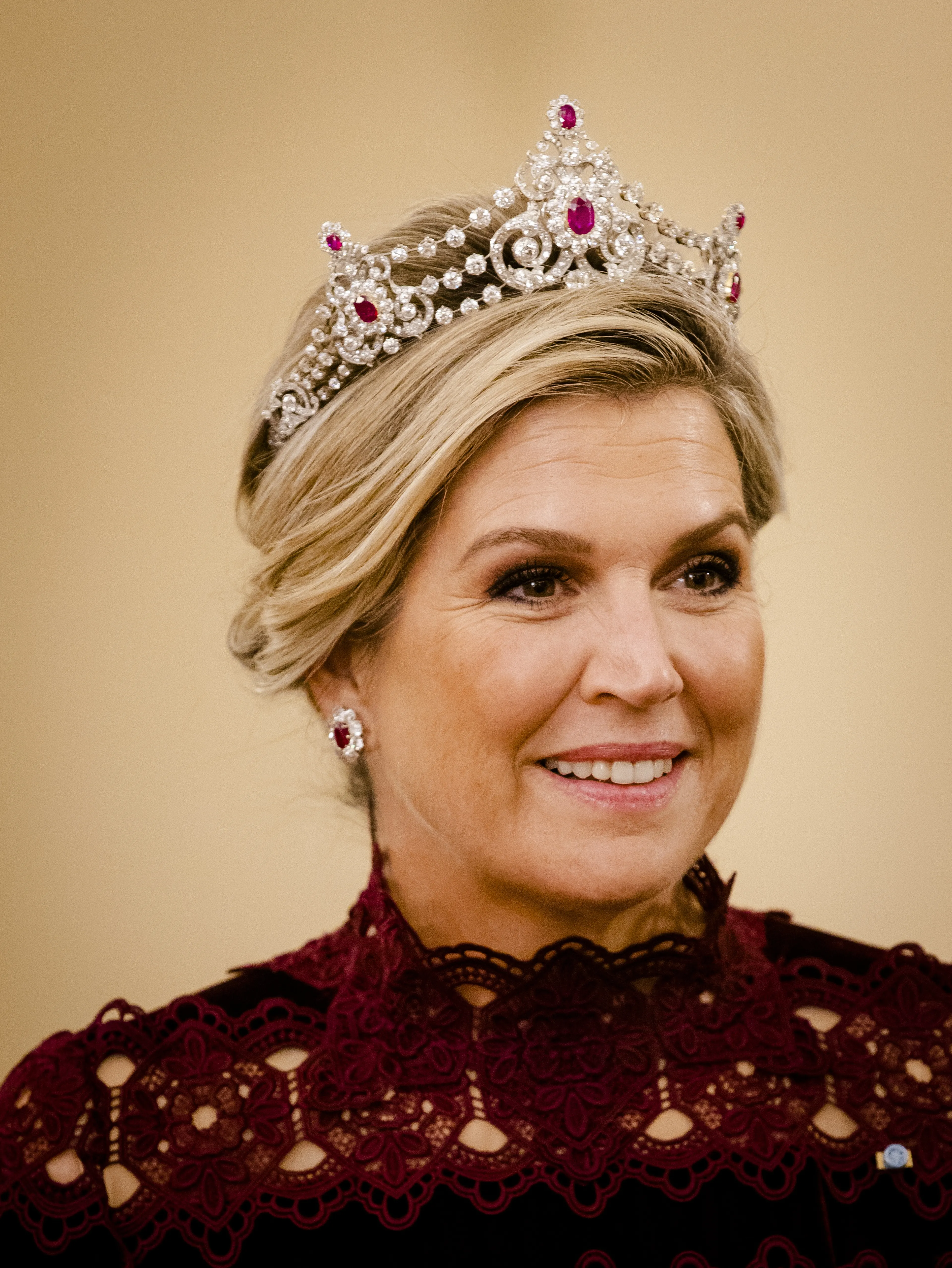 De tiara bevat drie rijen diamanten met drie grote elementen. Deze elementen bestaan uit robijnen en diamanten met een bloemenmotief. Prinses Beatrix droeg deze tiara tijdens het huwelijk van de Zweedse kroonprinses Victoria. Leuk feitje: koningin Sofía van Spanje droeg op dat moment ook een juweel van het juwelenhuis Mellerio dits Meller.