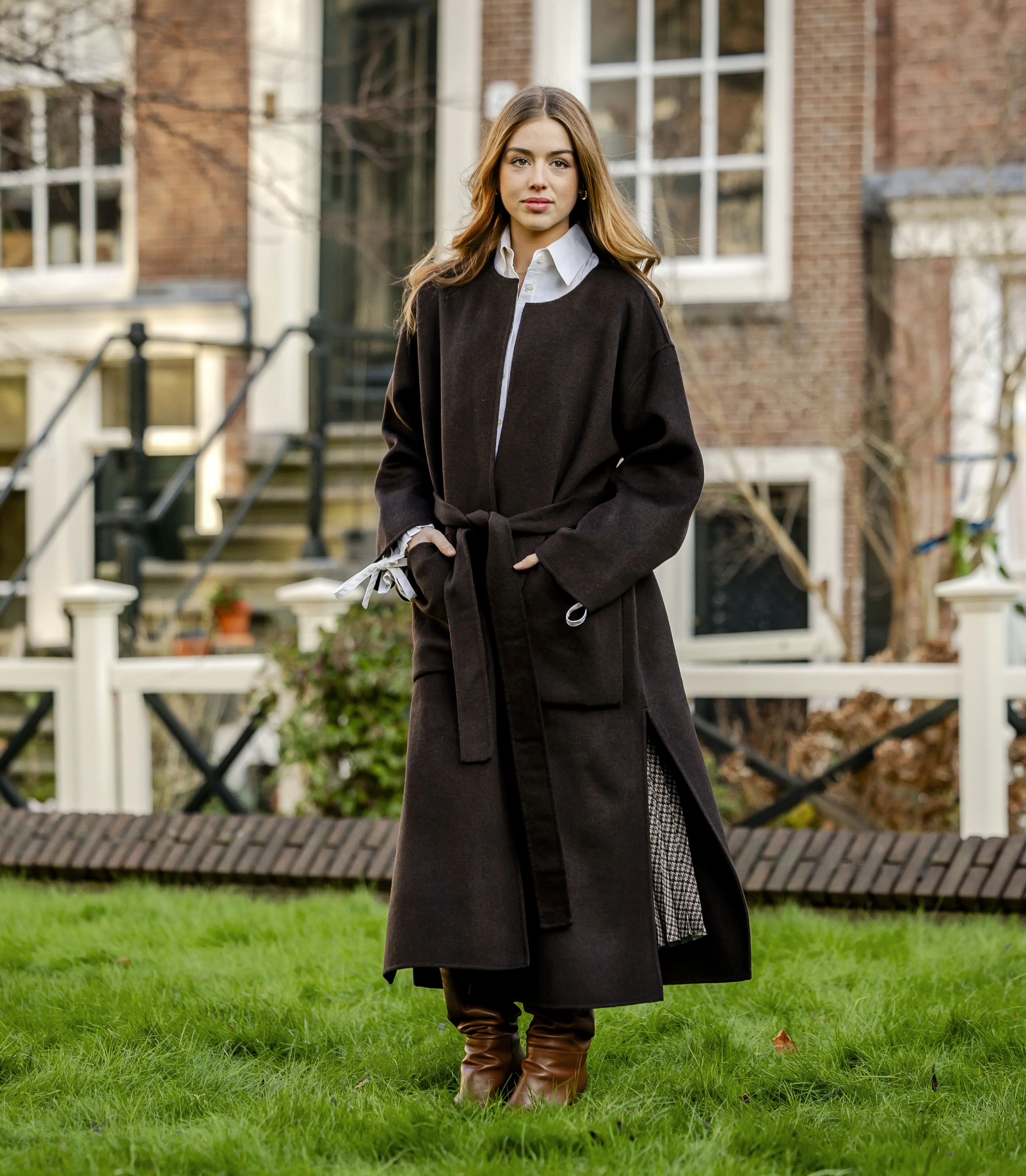 Prinses Alexia is terug uit Londen! Zij draagt vandaag een chocoladebruine mantel met daaronder een witte blouse met opstaande kraag. Deze draagt de prinses met bruine hoge laarzen.