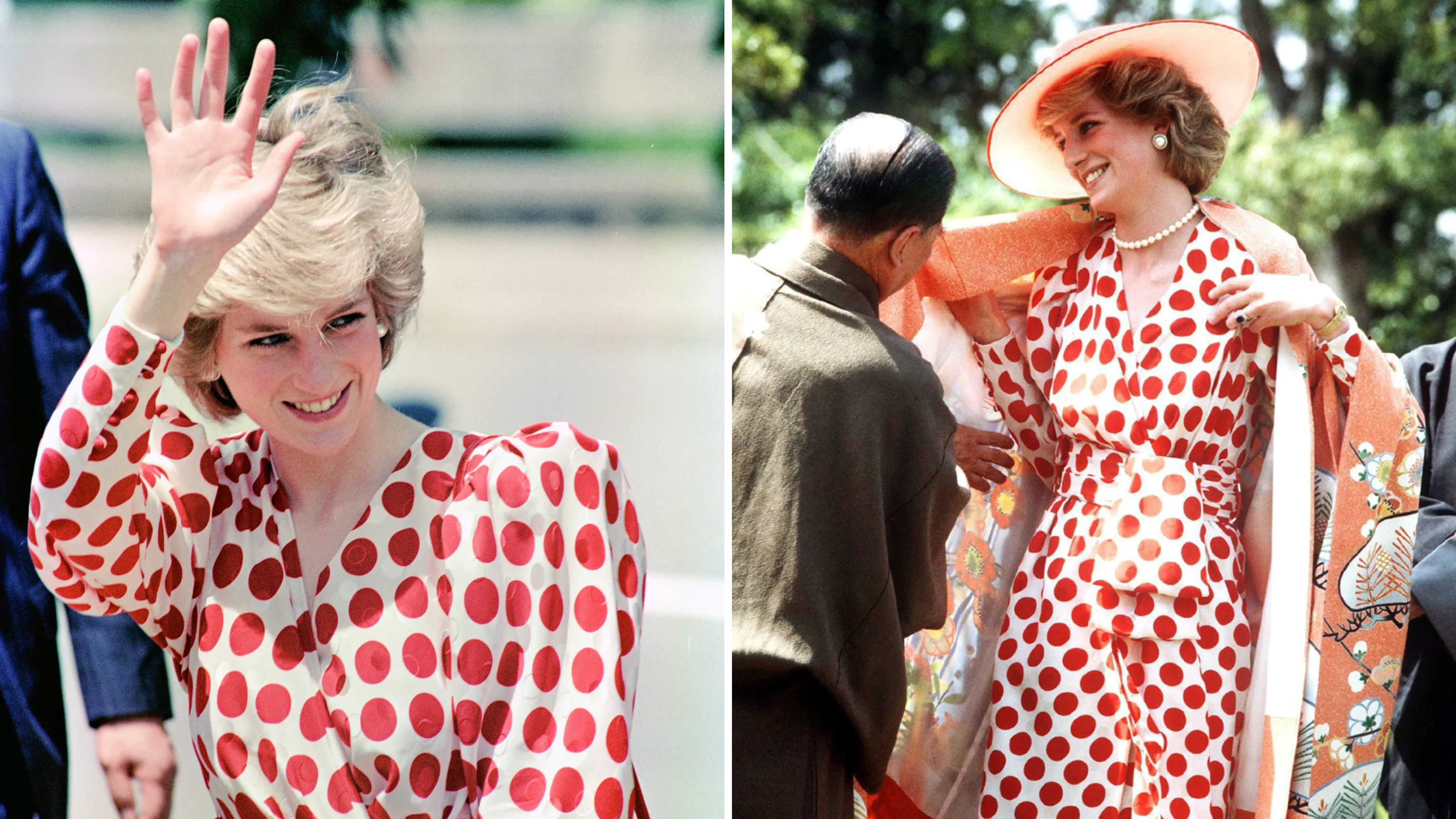 Een van de bekendste en leukste voorbeelden van het kleden naar de vlag van een land komt van prinses Diana. In 1986 is Diana op bezoek in Japan en draagt ze een witte jurk met rode stippen, een duidelijke knipoog naar de witte vlag met rode stip.