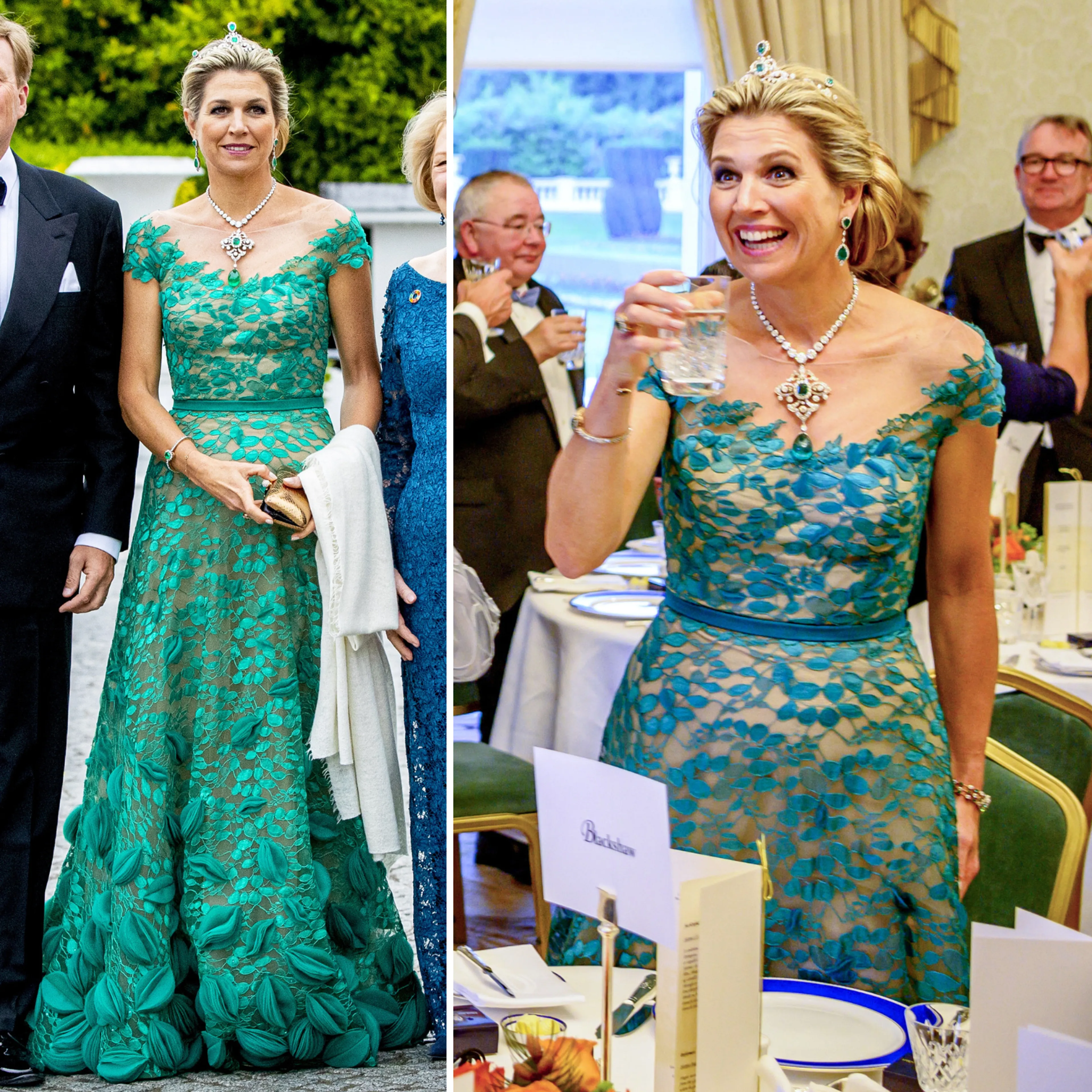 Tijdens het bezoek aan Ierland in 2019 draagt Máxima een galajurk in de kleur van het land: groen.