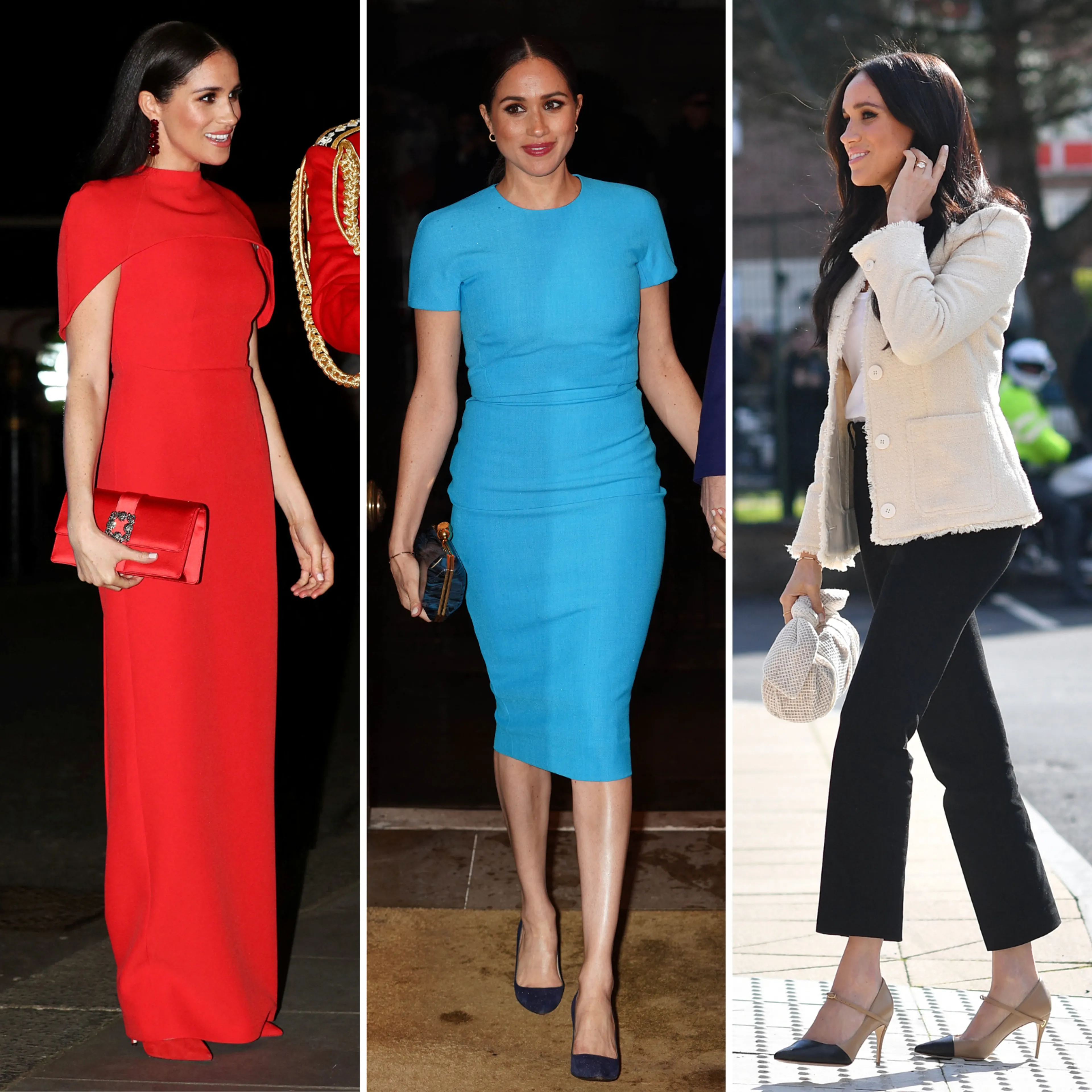 Schoonzus Meghan maakt ook gebruik van de kleuren van Groot-Britannië en draagt deze tijdens haar laatste weekend in het Verenigd Koninkrijk als werkende royal.