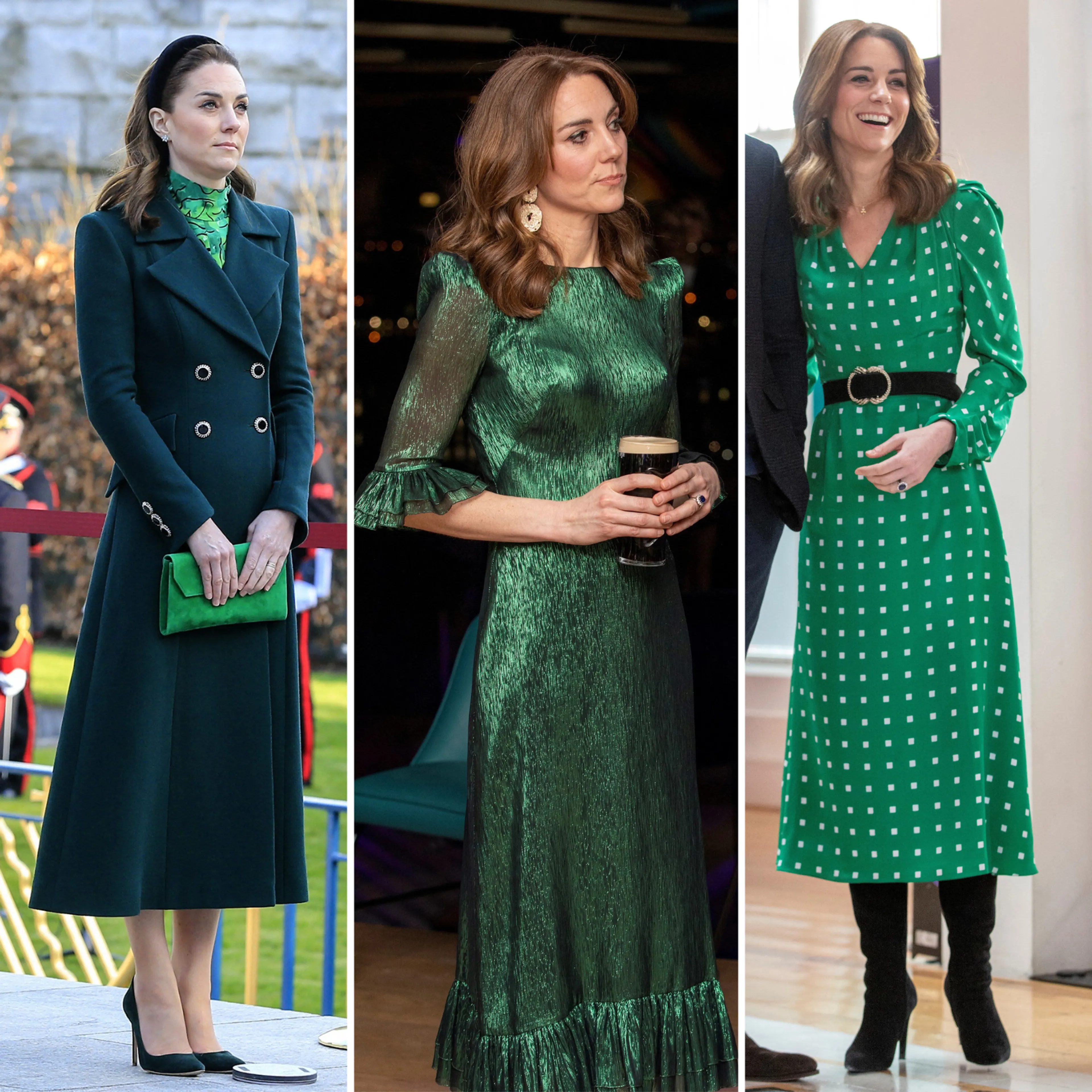 De prinses van Wales draagt graag kleuren van het land waar ze op bezoek is. Net als koningin Máxima laat Catherine zich tijdens een bezoek aan Ierland inspireren door de kleur van het land.