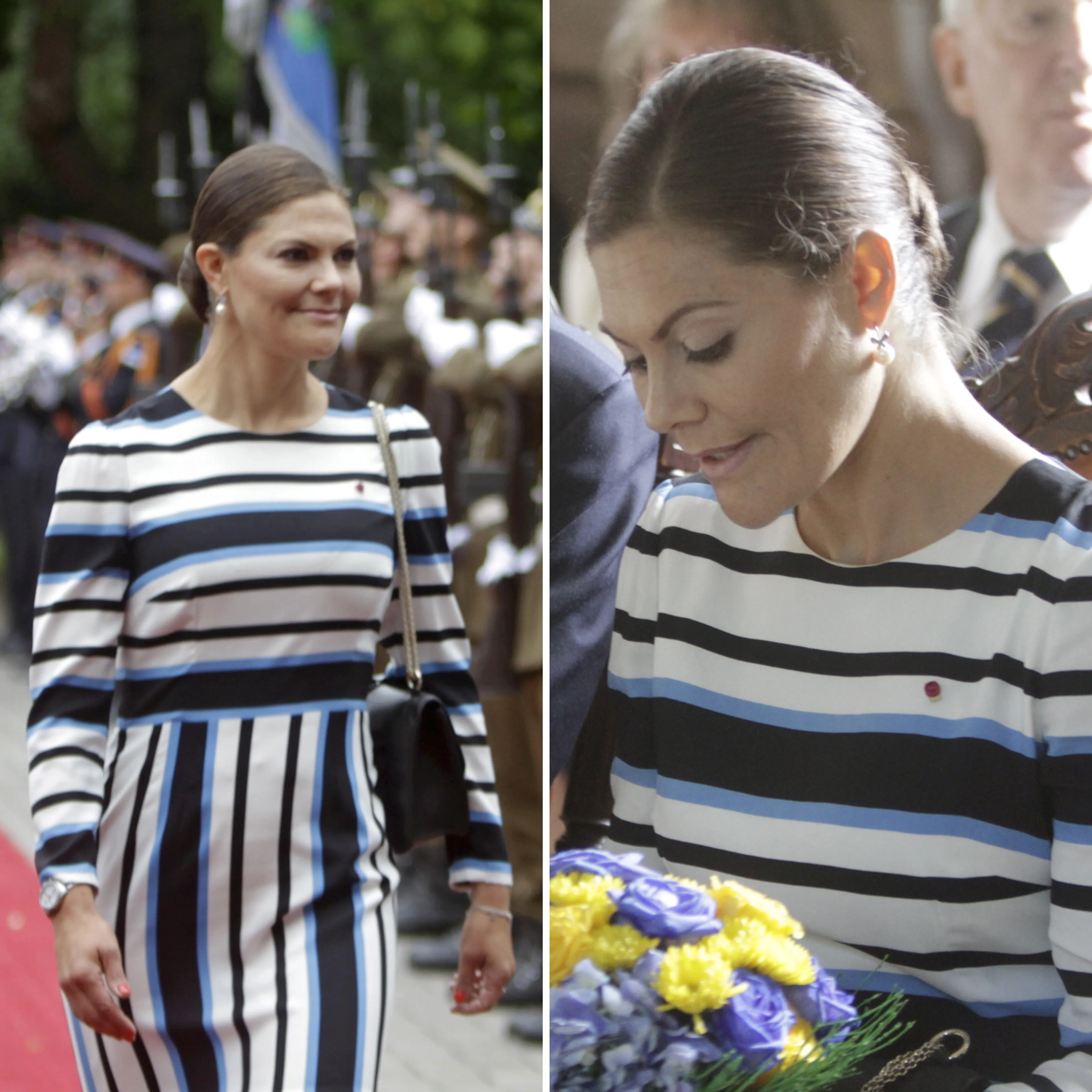 Niet alleen Nederlandse en Britse royals doen aan flagdressing. Ook de koninklijke dames in Scandinavië weten hun garderobe af te stemmen op het land waar zij zich bevinden. Zoals bij de viering van de onafhankelijkheid van Estland. Hier komt de Zweedse kroonprinses Victoria aan in het blauw-zwart-wit, de kleuren van de vlag.
