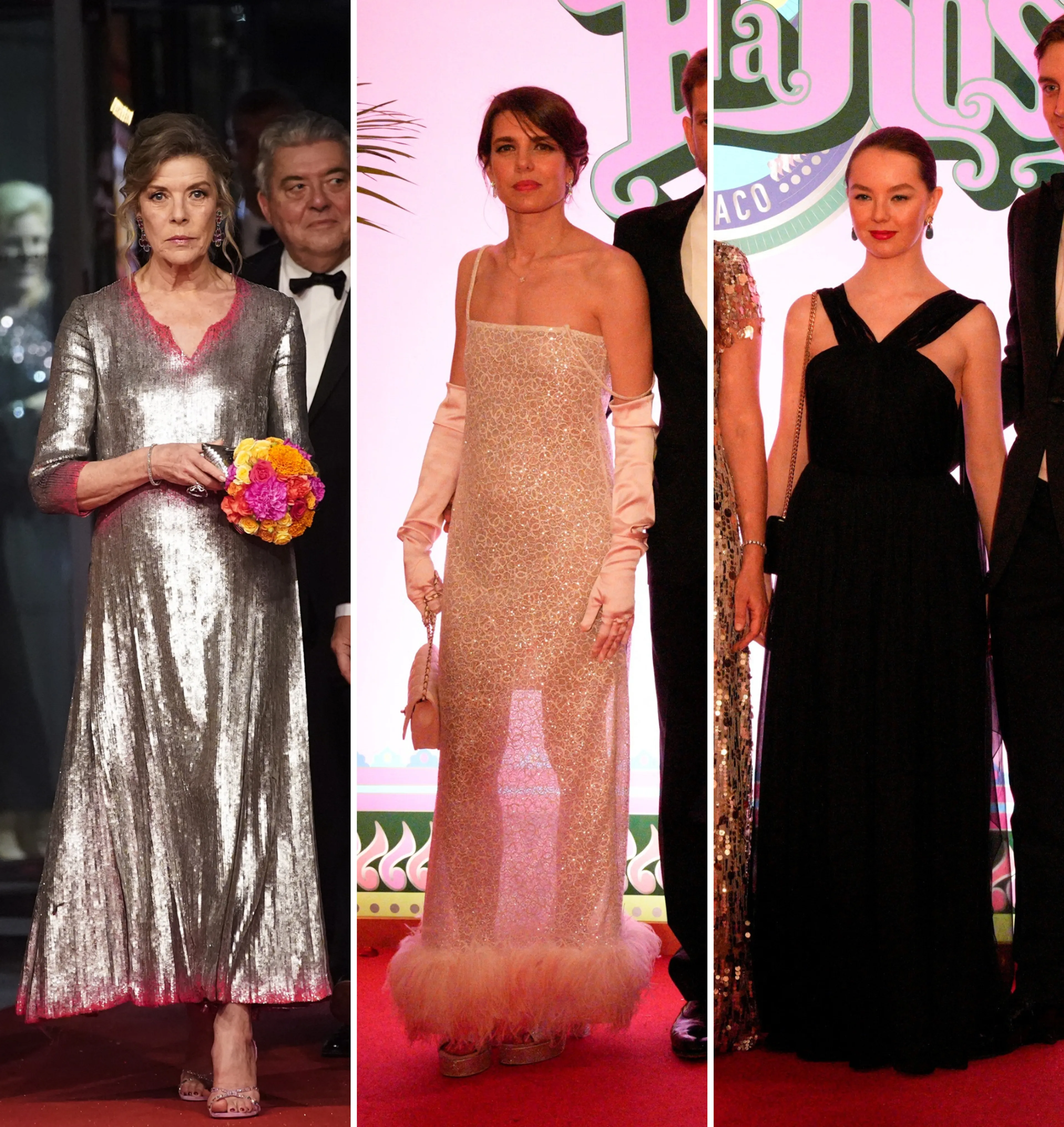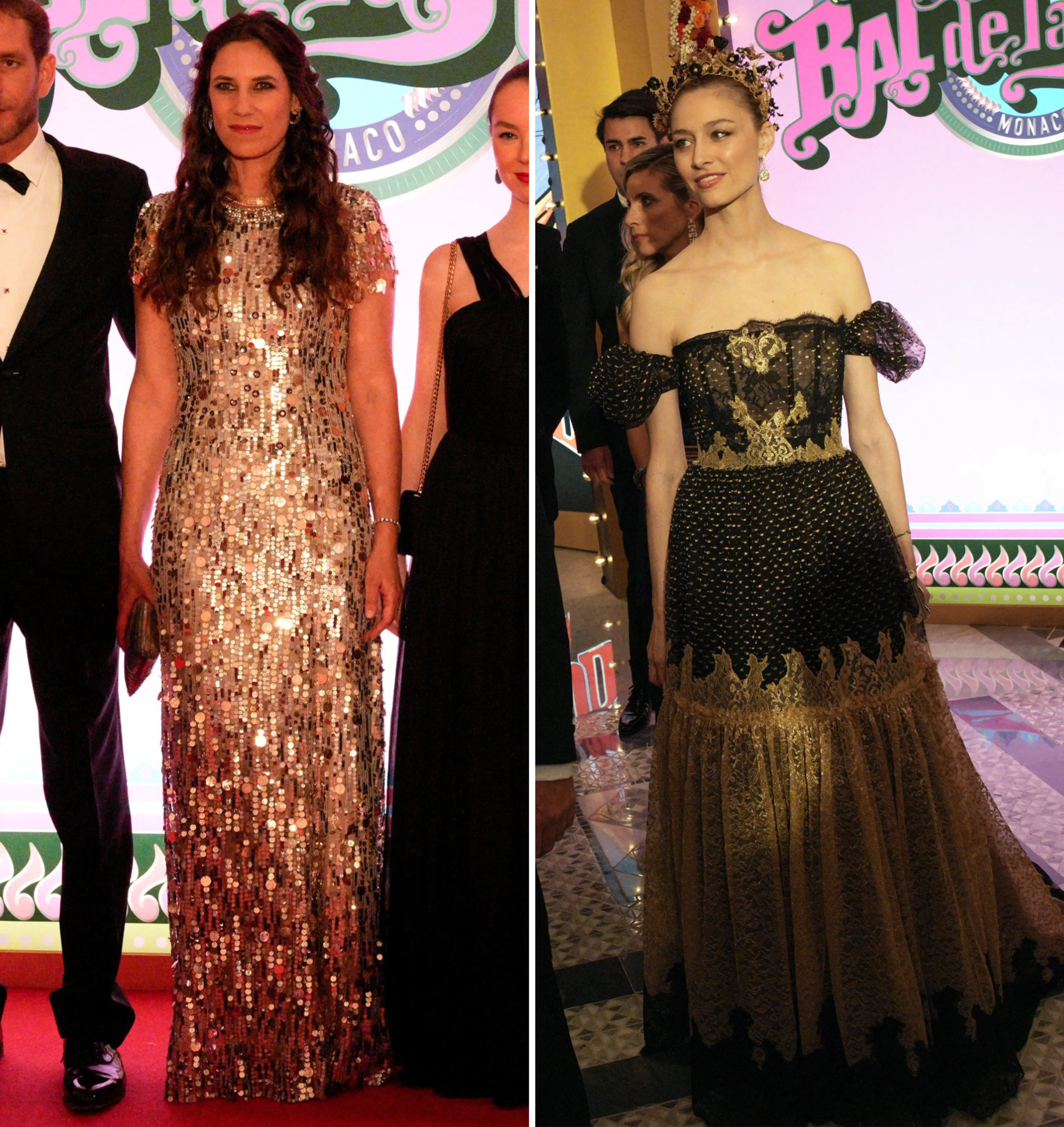 De schoondochters van prinses Caroline waren ook aanwezig. Tatiana, de vrouw van Andrea Casiraghi, verscheen in een jurk met pailletten van het merk Jenny Packham. Journalist Beatrice, getrouwd met Pierre Casiraghi, verscheen in een zwart met gouden outfit van Dior. Ze is sinds 2021 een ambassadeur van het modemerk.