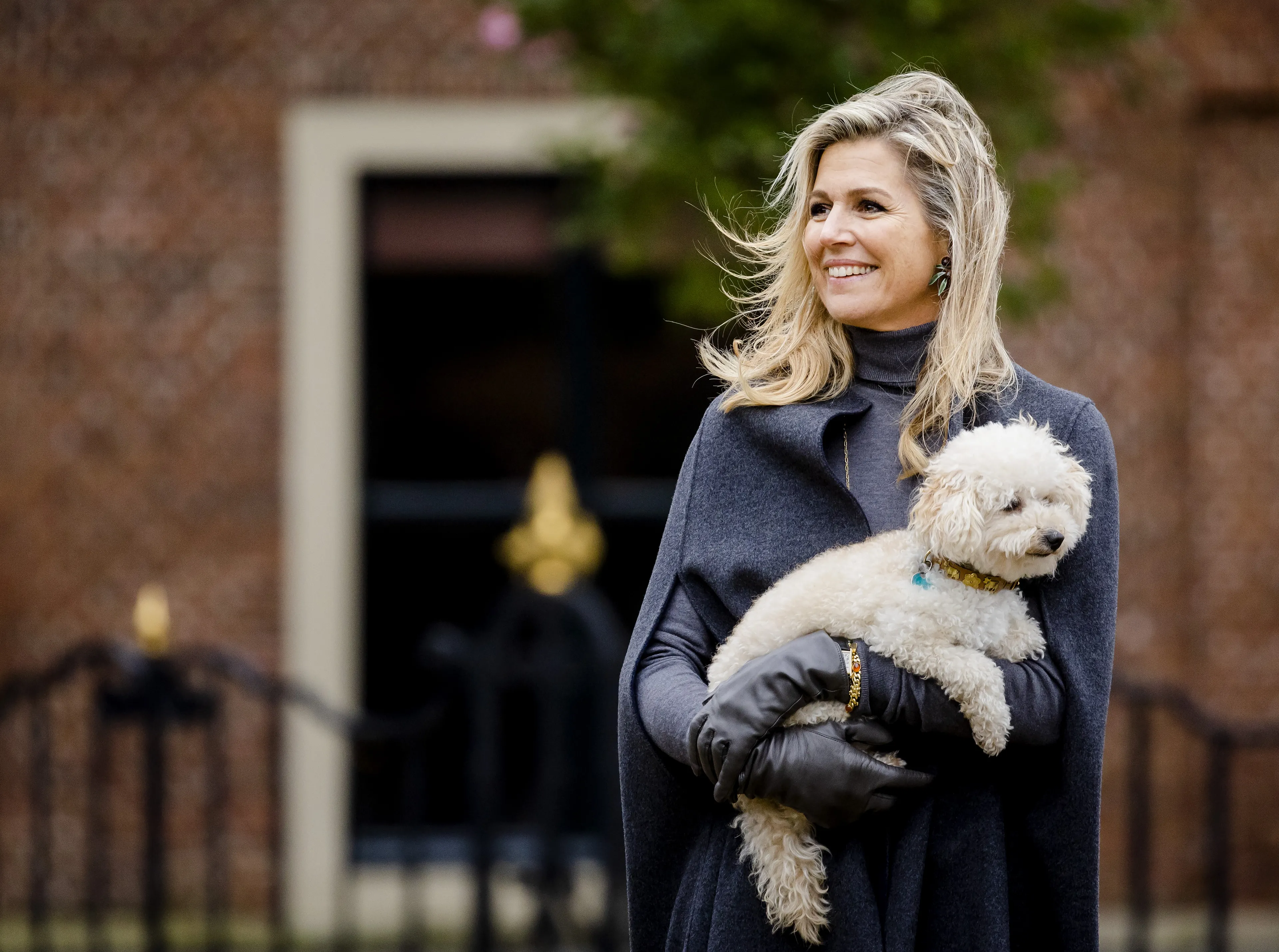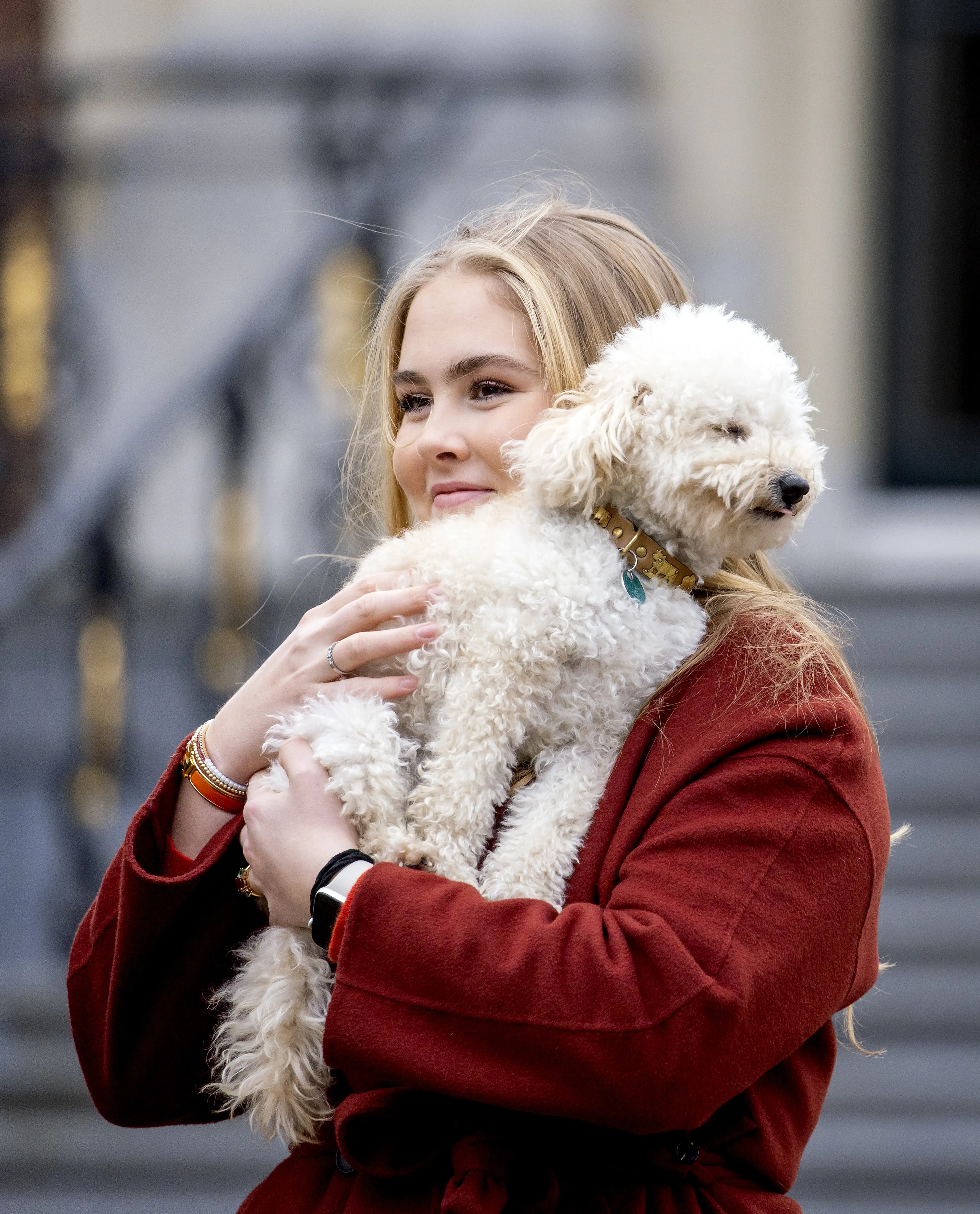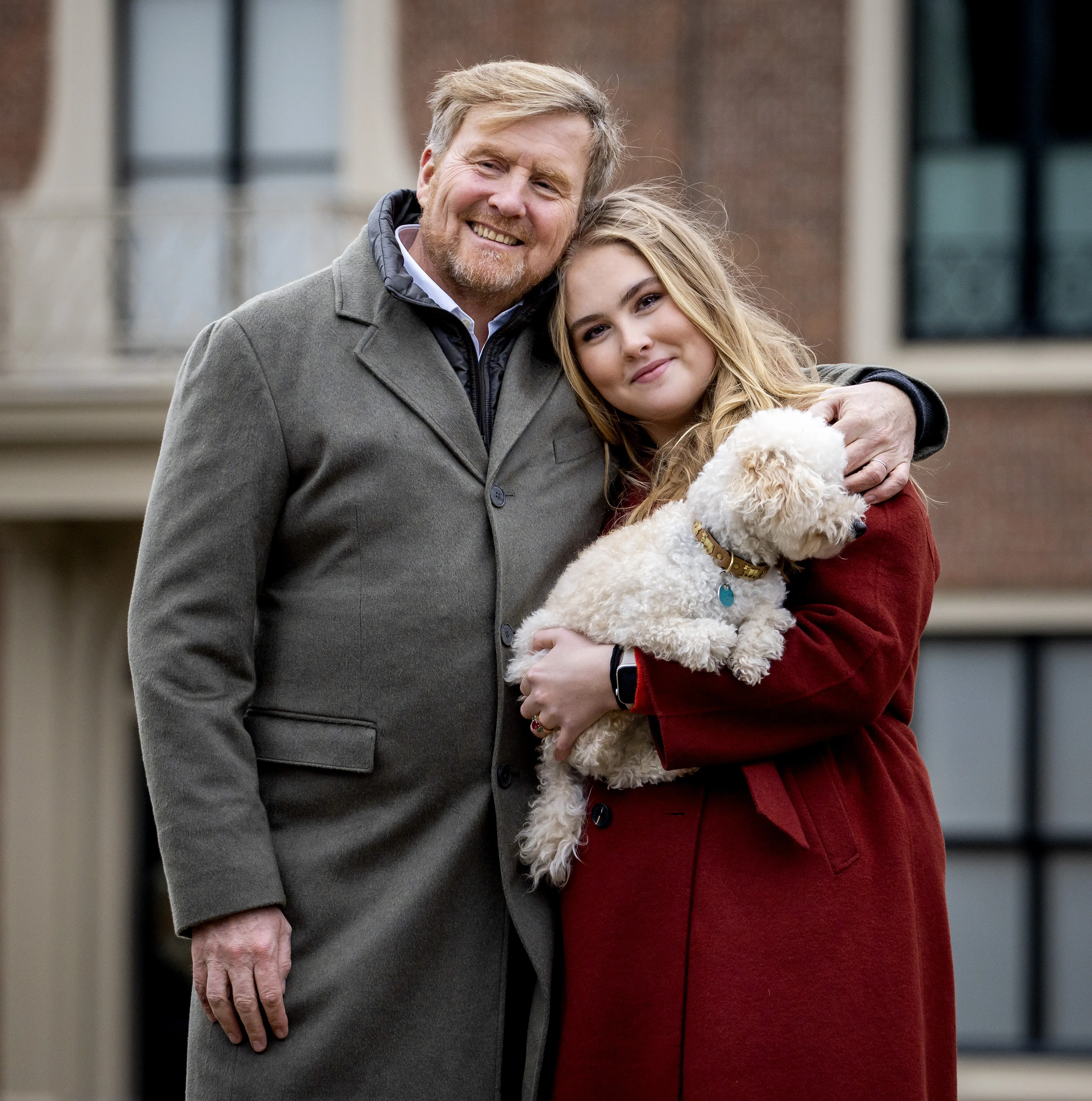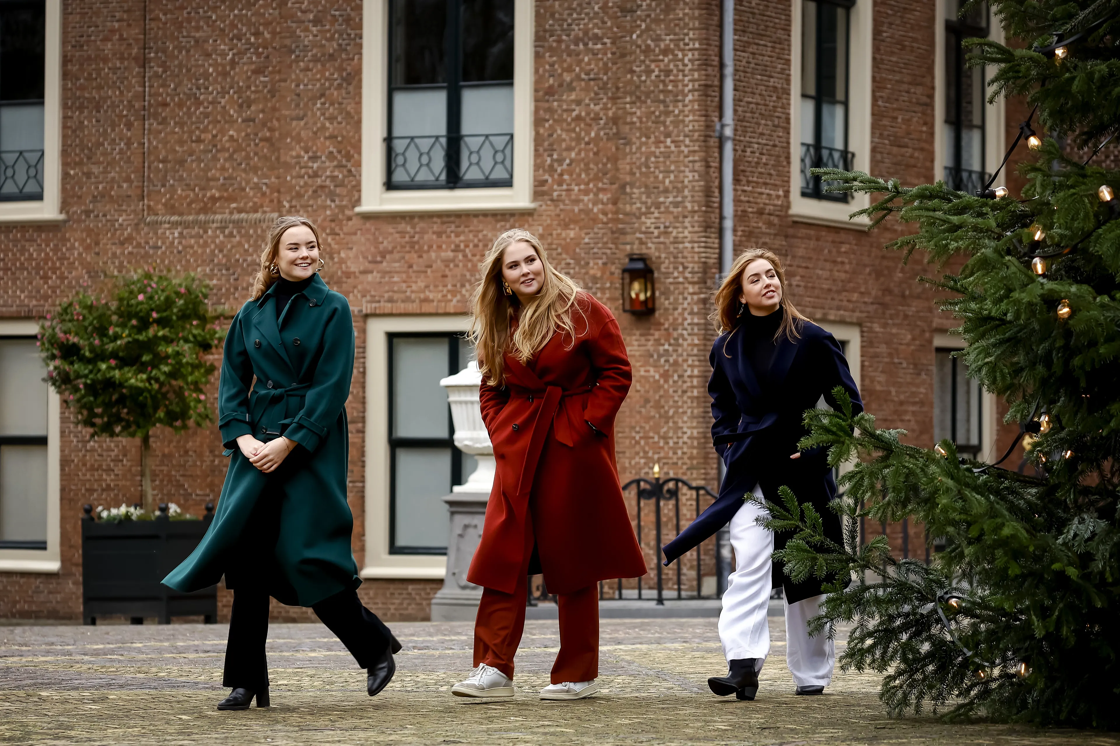 Koning Willem-Alexander en koningin Máxima poseerden vandaag samen met hun drie dochters prinses Amalia, prinses Alexia en prinses Ariane voor Paleis Huis ten Bosch. Dat deden ze gezellig samen voor de kerstboom. Ook hondje Mambo was van de partij.